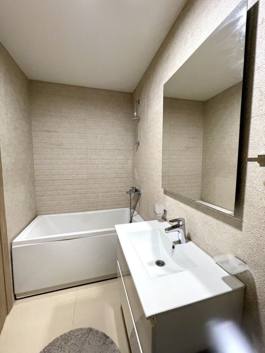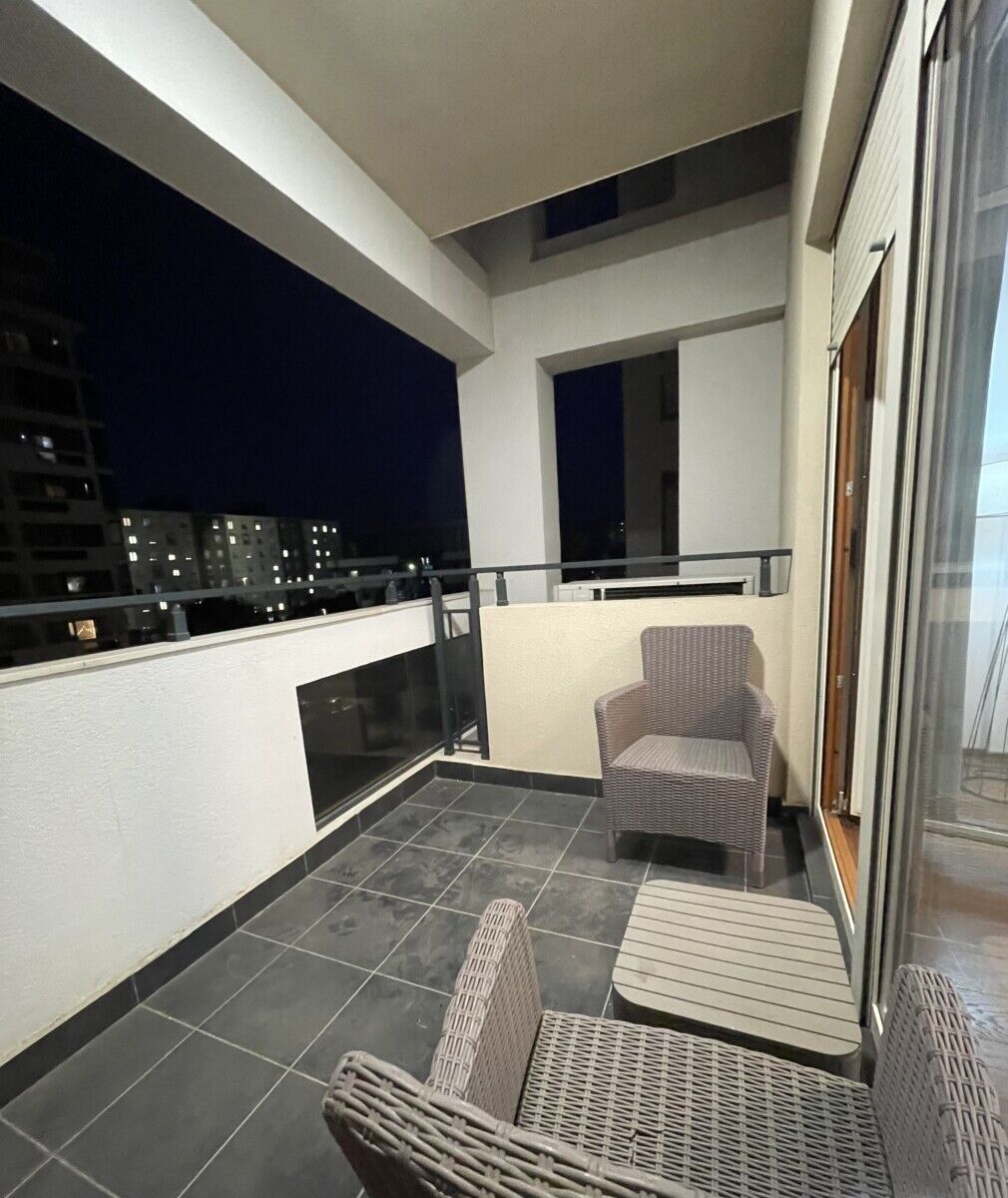 A nicely arranged two-bedroom apartment with two bathrooms, an area of 70 m² in the Master district, located on the third floor, with a secured garage space is for rent; the rental price is 900 € per month.