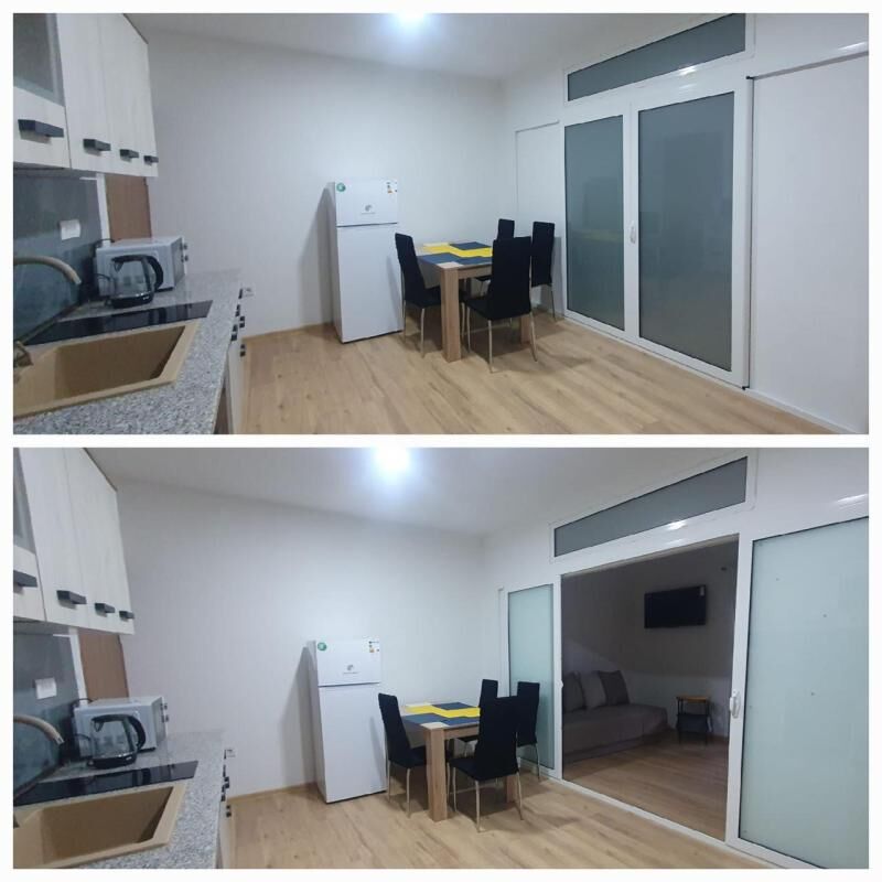 Large apartment of 60 m2 + living terrace, glazed with Italian STOP-SOL, size 16 m2, facing south with sea views. Room 1: a bedroom with a wardrobe, a double bed and a work space. Room 2: kitchen-refectory, table, 4 chairs. The kitchen is equipped with a large refrigerator, a cooktop (2 hotplates), a microwave oven, an electric kettle. Room 3: a living room with a folding double sofa and a two-level bed, a seating area with a TV. There is also a place for a study. Room 4: a living terrace glazed with Italian STOP-SOL, which can be used as an office, a recreation room or a second bedroom (1-2 separate beds can be put). There is an equipped workplace on the terrace (desk, chair). The apartment has 2 air conditioners. Bathroom with shower and infrared heater. The building is 600 meters from the beach and the BB restaurant. There is a powerful dehumidifier, bed linen, kitchen utensils, etc., Internet - unlimited Wi-Fi. Within walking distance of a school, kindergarten, private shops and chain stores - Idea and Aroma. When renting for a year: 540e/ month + utilities, payment: for the first month + last month + deposit. Parking is available - payment for the parking space is separate.