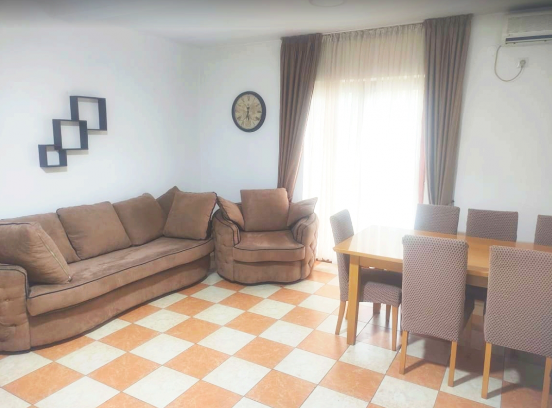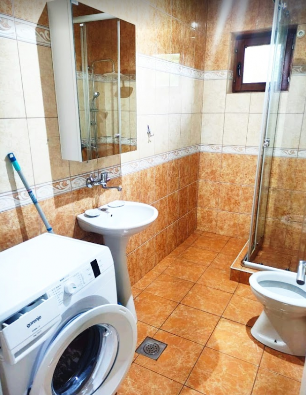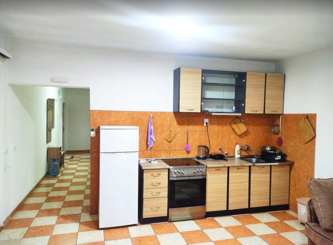 One-bedroom apartment with its own terrace. Ground floor, area 70m2. Kitchen: refrigerator, stove (4 burners and oven), microwave, electric kettle. Combined bathroom, washing machine. A large bedroom with a double bed, it is possible to place an extra bed or a work area. Living room: dining area, sofa (French cot mechanism, 2 beds). Exit to the terrace of 20m2. Open-air terrace, south side. Garden furniture - a table and 2 chairs. The building is 600 meters from the beach and BB restaurant. There is a powerful dehumidifier, bed linen, kitchen utensils, etc., Internet - unlimited Wi-Fi. Within walking distance of a school, kindergarten, private shops and chain stores - Idea and Aroma. Payment per month, plus utilities, payment at once: first month + last two + deposit. Parking is available - payment for parking space separately.