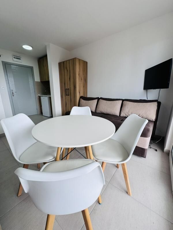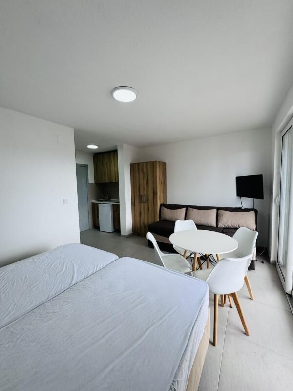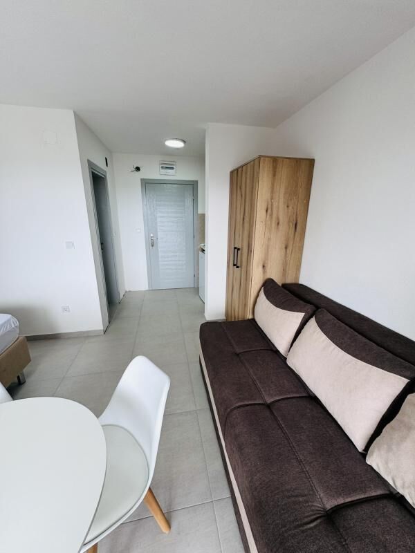 Studio on the landing in a 2-storey building in Šušanj (not on the mountain). The studio of 25m2 has a kitchen, a bathroom with a window, and a terrace. Air conditioning, smart TV, Wi-Fi, washing machine for 3 studios, located in a separate room. Parking is available in the courtyard of the house, but the yard is small. Pets are not allowed. To the sea 10 minutes on foot (700m), the nearest LAV store is 30m away, to the Aroma supermarket 550m., pharmacy and school are 5 minutes on foot, to the city center 15 minutes on foot. Electricity and water are included in the rental price. No price increase in season. Payment immediately: for the first month + last month + deposit.