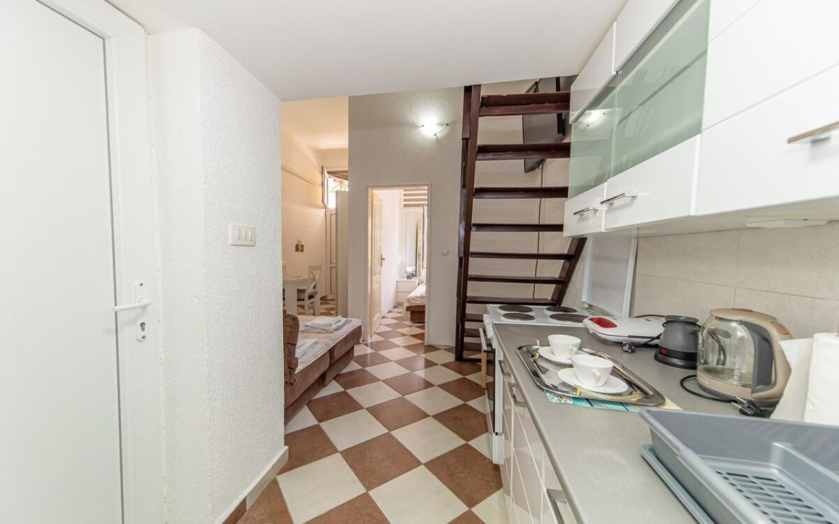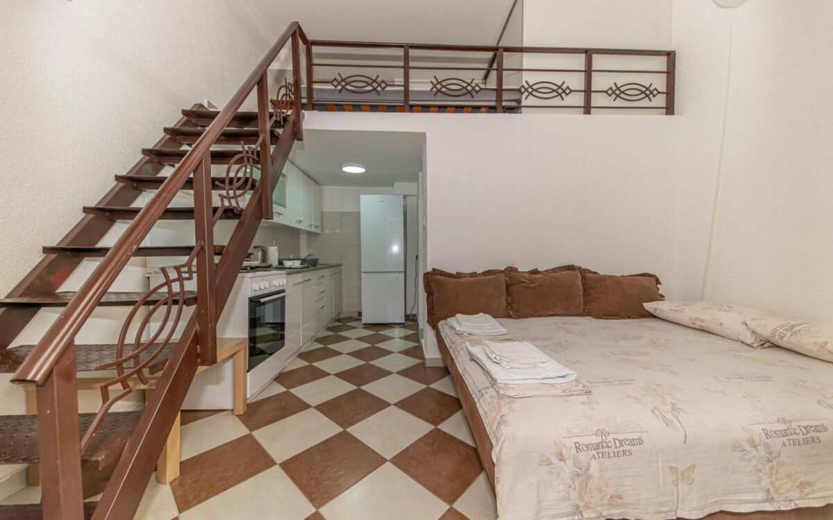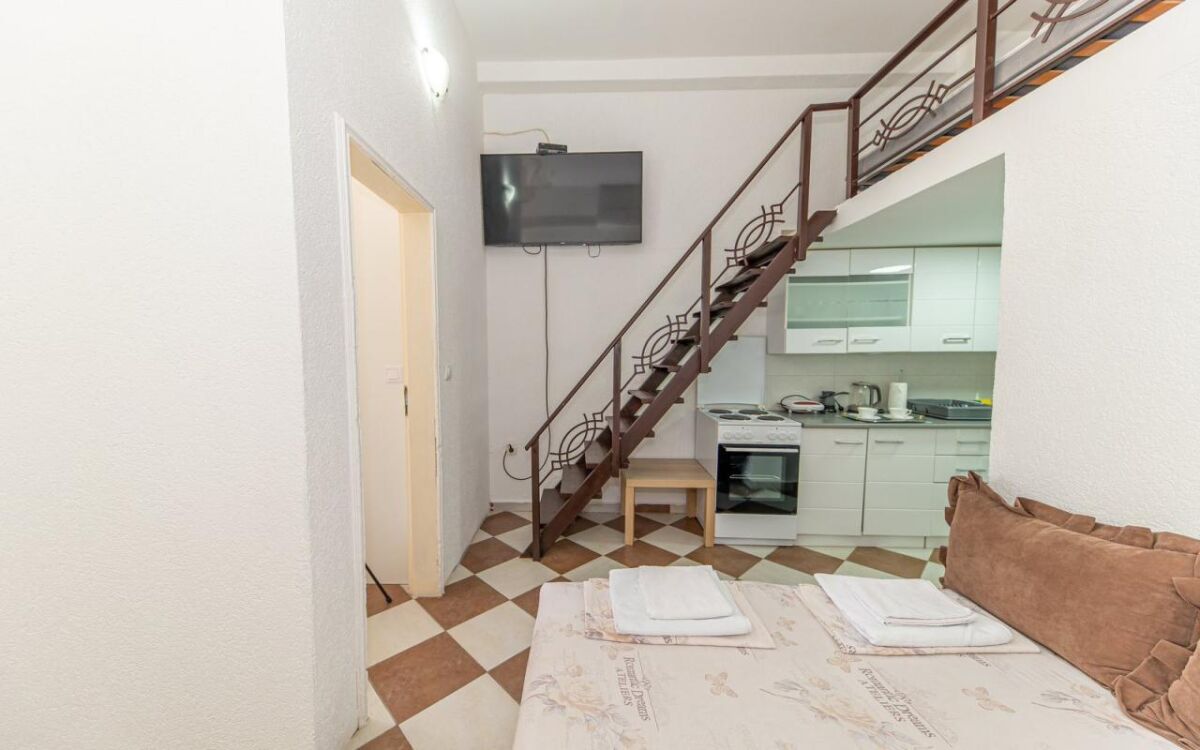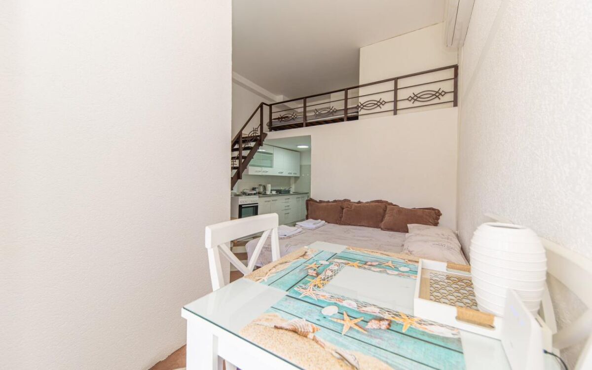 The apartment is located in an apartment building in the very center of Sutomore (below the highway), 400 m from the beach! The area of the House of Health and the post office. Fully furnished and equipped with appliances, there is good cable Internet and TV. The bedroom area on the second level of the apartment is highlighted. Shops, bakeries, cafes, school, post office, sea - all within walking distance. Cost: for rent until June 2026 - 250 e/month + utilities (payment for the first 1 month + deposit). It is possible to rent for a shorter period of time. Without animals.