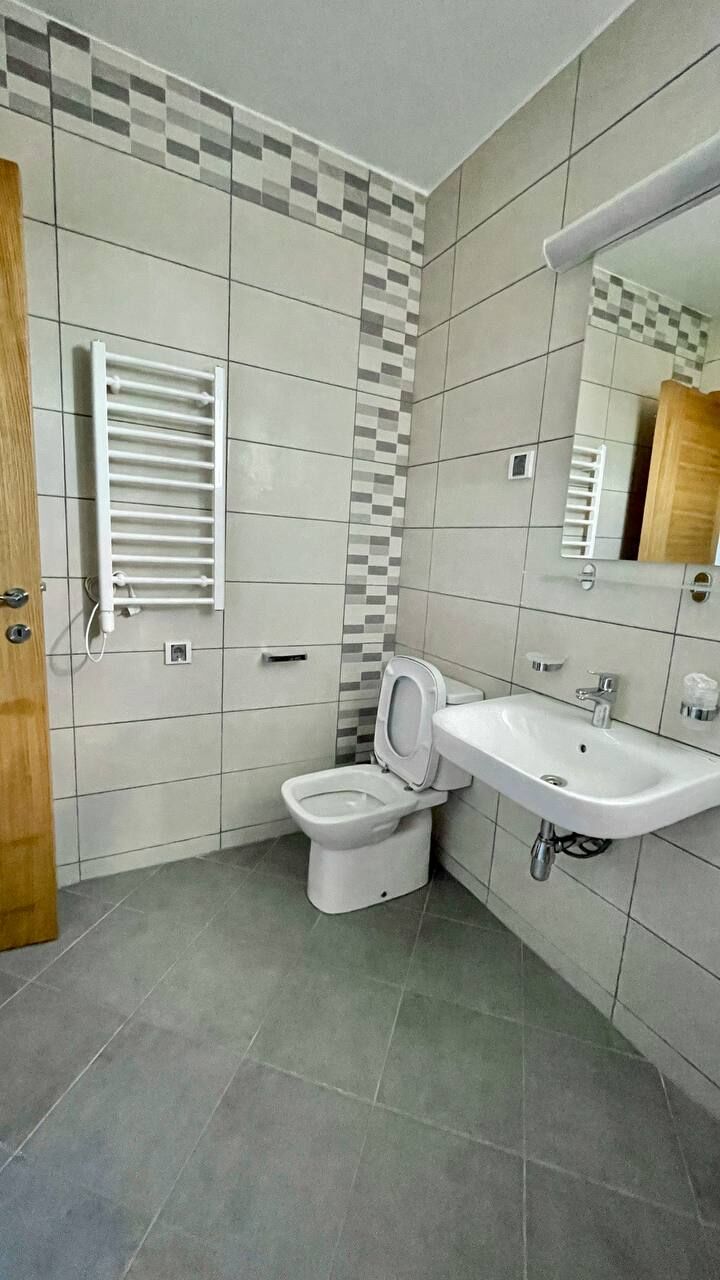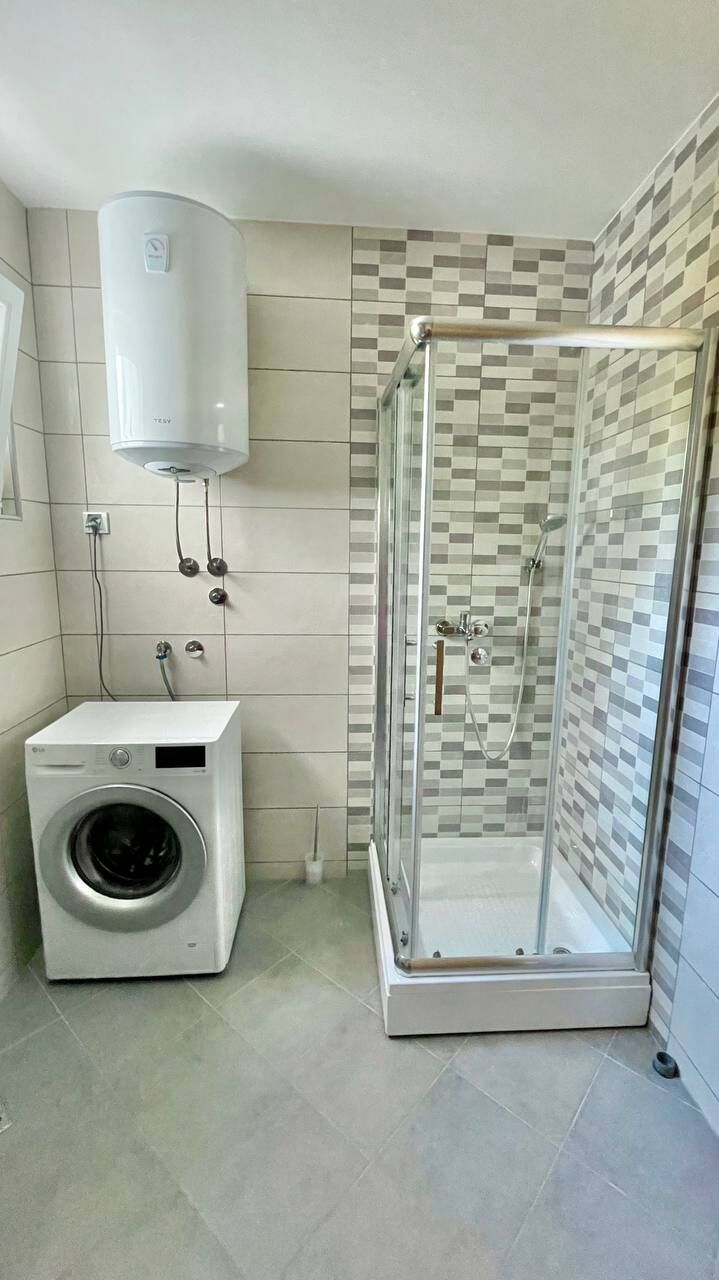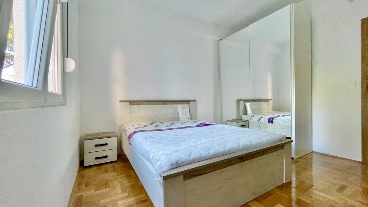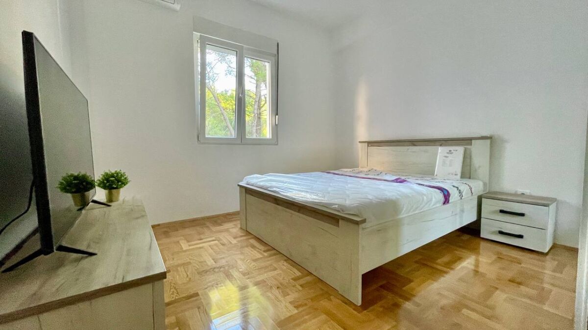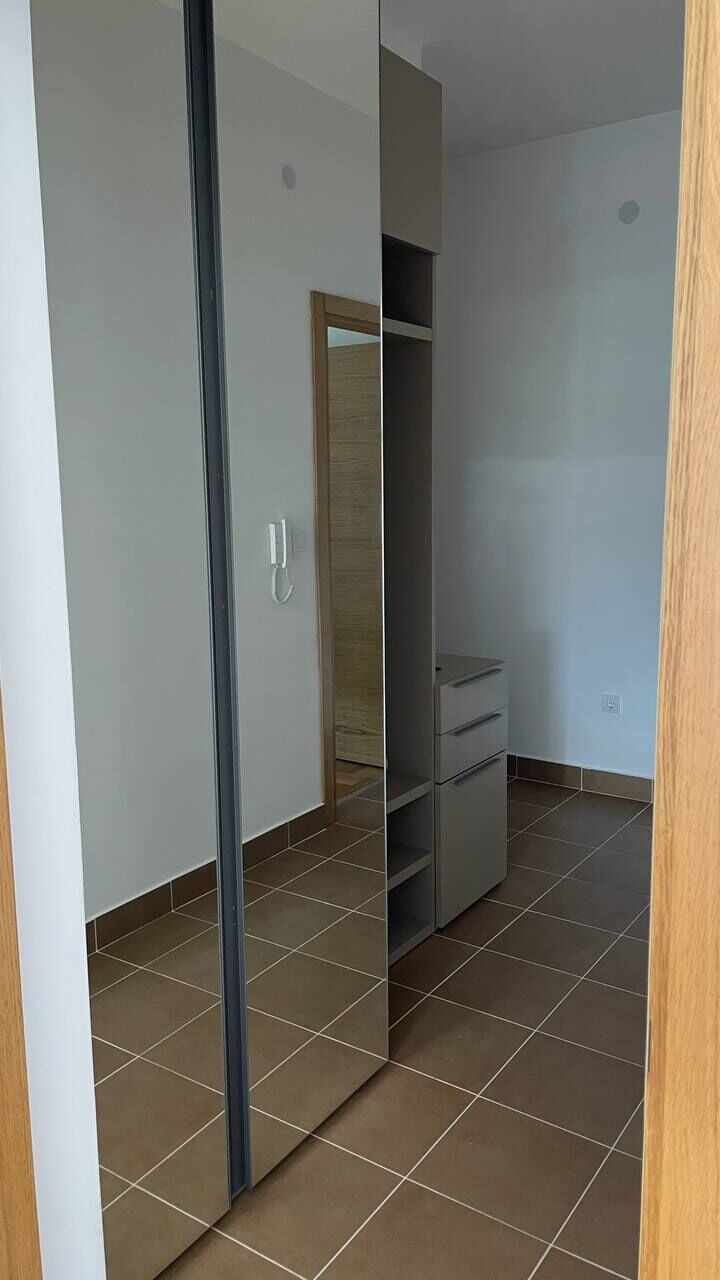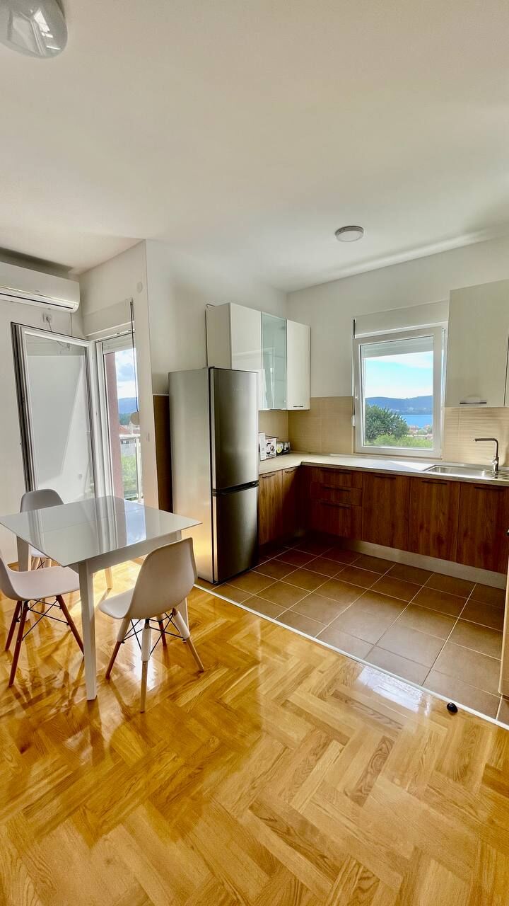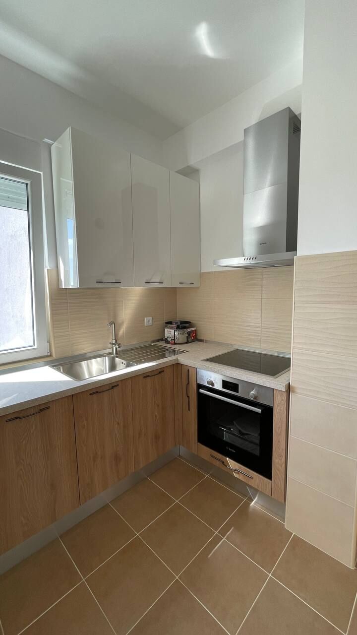 An apartment is available for long-term rent in Tivat in a new house from the owner. Apartment 55 m2, kitchen-living room, 1 bedroom, wc, terrace overlooking the sea, 2nd floor. Dishwasher, oven, 4-burner hob, washing machine, refrigerator, air conditioning in each room, 2 TVs with cable TV, electric kettle, iron, ironing board, basic set of dishes, blackout blinds and mosquito nets for all windows. Good wi-fi internet (optics)