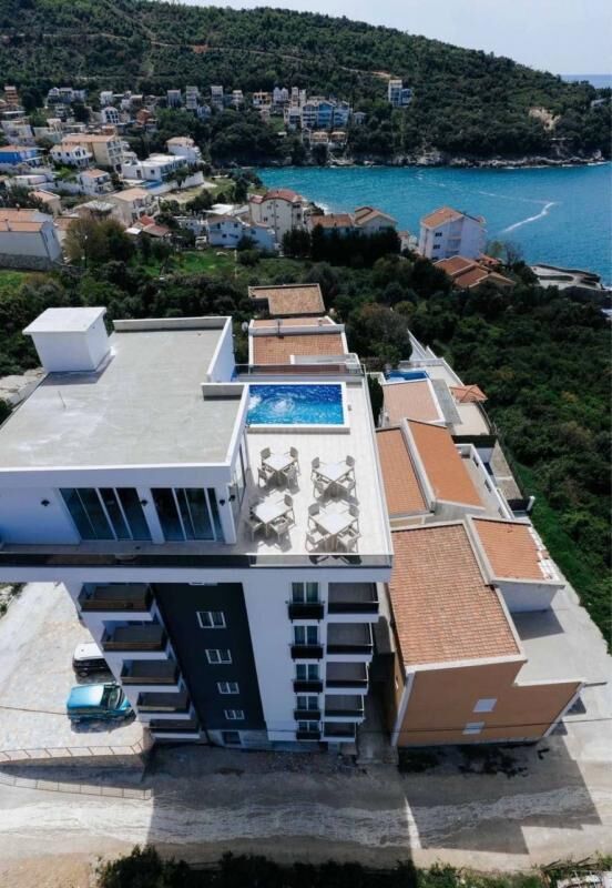 For rent until 06/01/2025 studio 28m2 with stunning sea views in the village of Khladnaya Uvala, near the town of Bar in a new clubhouse (built in 2021) on the beach at 30m. The studio has a kitchen, sleeping places (a large pull-out sofa, a pull-out armchair), a table with chairs, a closet, a bathroom with a shower and a balcony. There is all the necessary furniture and appliances (induction hob, small fridge, kettle, washing machine, air conditioning, boiler). Parking space at the house. Video surveillance system. Good internet connection. The studio can accommodate 1-2 people. Without animals. Payment is 250 euros per month + 80 euros utilities per month. Monthly accommodation is possible. In summer, the studio rental price is 800 euros per month + utilities. The remaining conditions are agreed upon individually. There is a swimming pool and a restaurant on the top floor during the season.