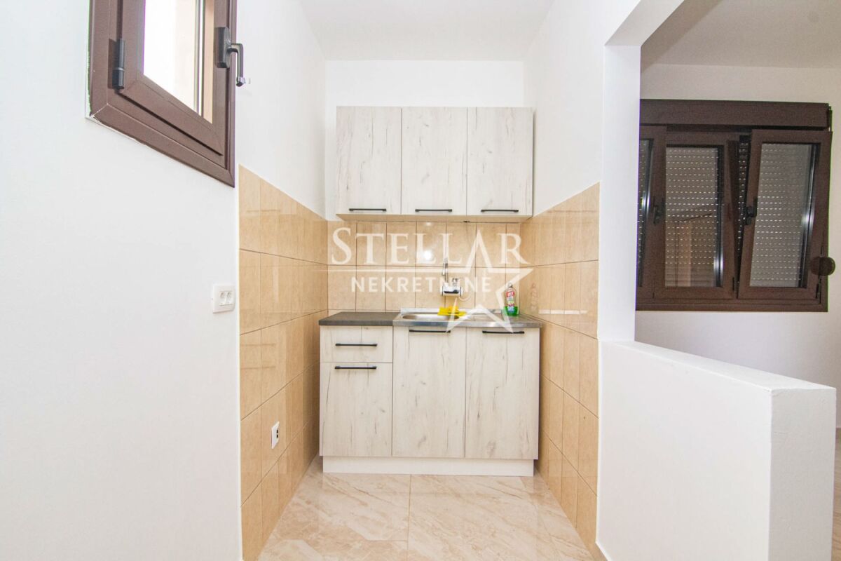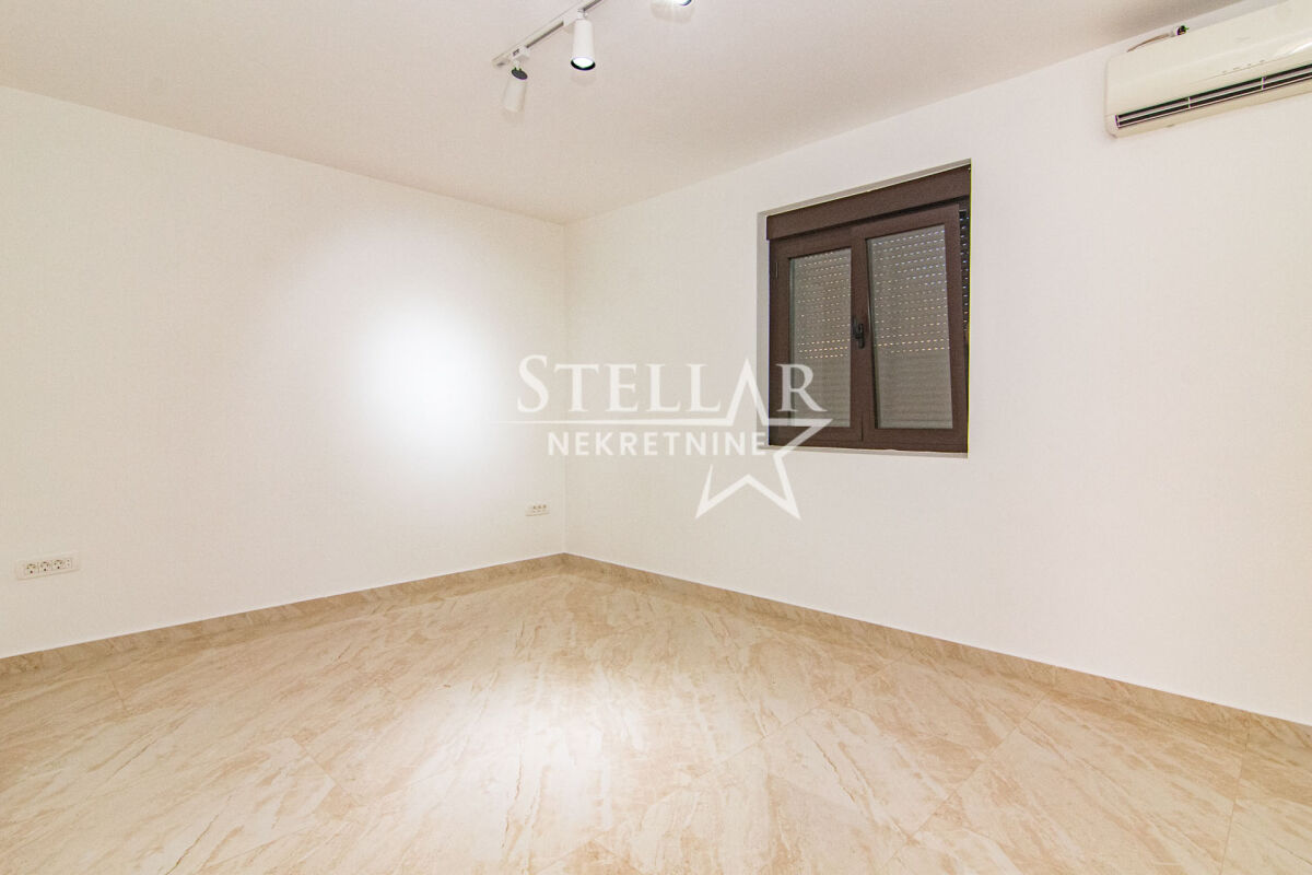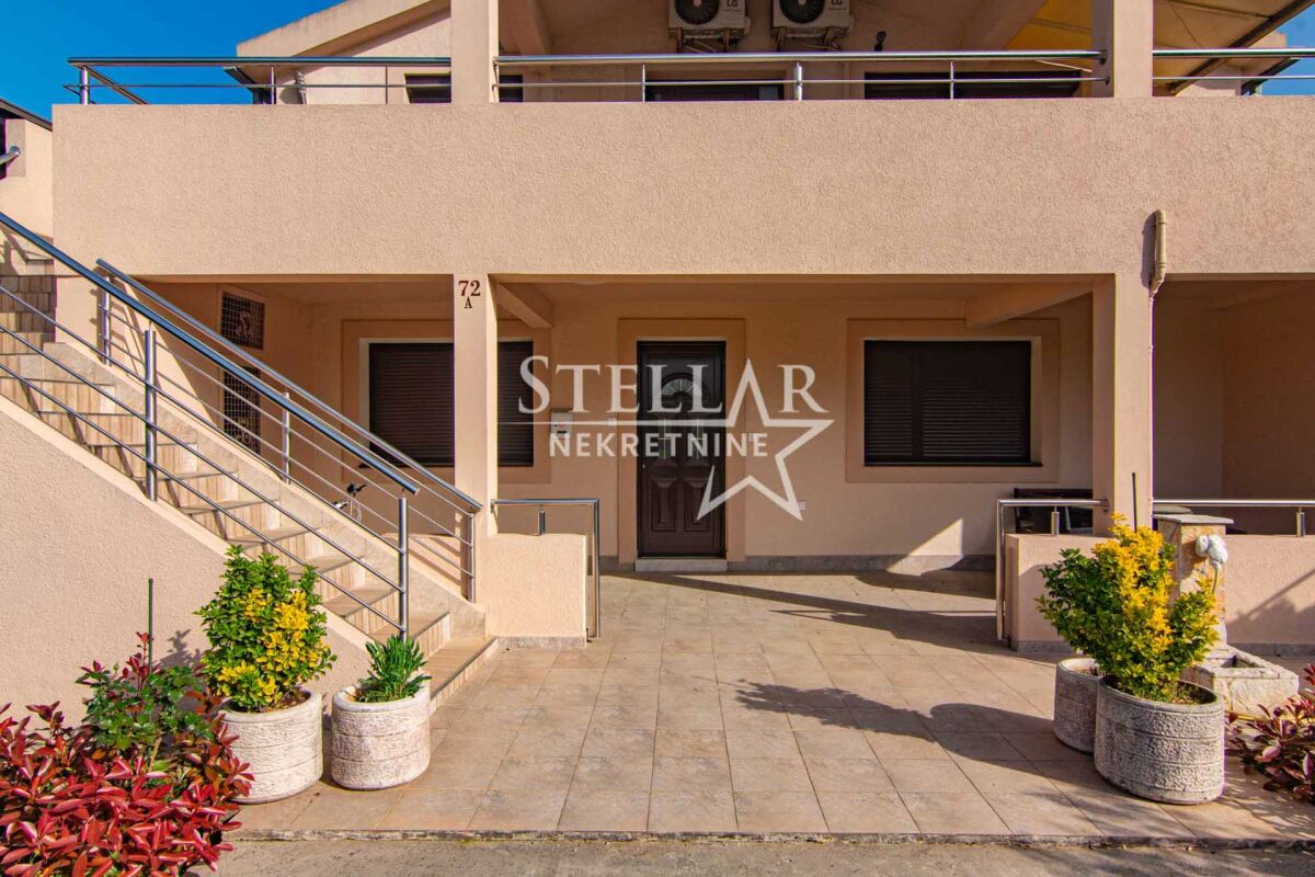 A business space is being rented in Masline on the ground floor of a house. The space was previously rented as a polyclinic. The area is 90m2, with separate rooms, suitable for offices. It has 3 rooms, a kitchenette, a hallway, and a toilet. On the upper floor, there is a two-bedroom apartment fully equipped. It could be purchased if there is a need. In front of the space, there are 6 parking spots in a nicely arranged and decorated yard. The space is rented for a longer period with a mandatory deposit. Property ID M166 +382 67 166 448