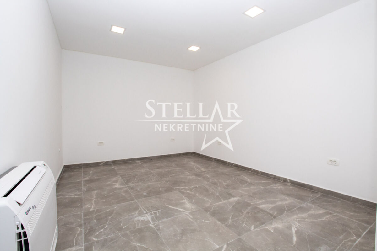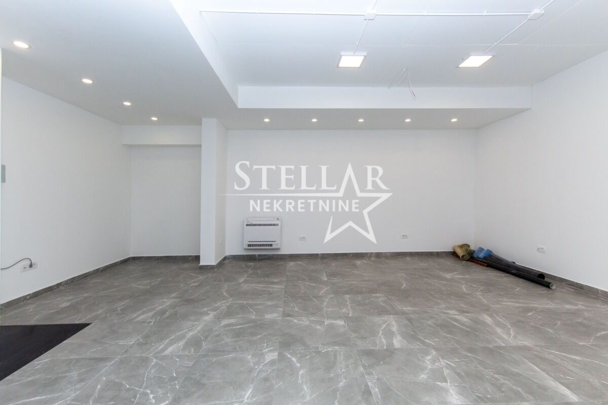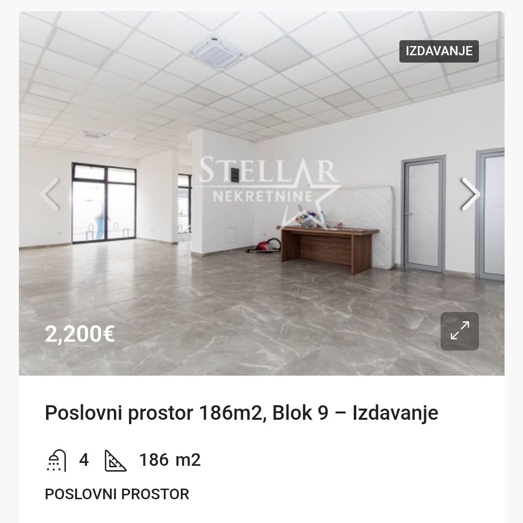 The space is located in Block 9. It is situated on two levels of approximately equal dimensions. The ground floor is 86m2, and the basement is 100m2. Both levels have 2 toilets. The ground floor is glazed on all sides, even on the side where the stairs to the basement are, making the basement very well-lit. The location is desirable; the space is at the corner of the building and is visible from Dalmatinska street and from Block 9, thus from two sides. It is suitable for clinics, offices, retail spaces, or something else. Parking is provided, with 2 spaces in the garage under the ramp and several uncovered spaces in front of the premises. It is rented for a longer period with a mandatory deposit. Property ID M652 +382 69 618 445