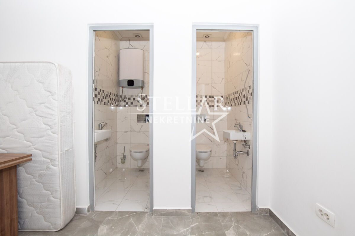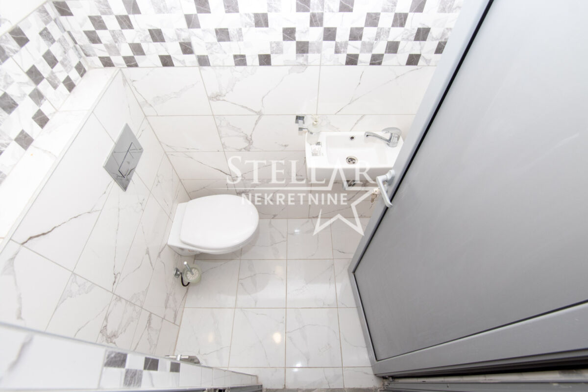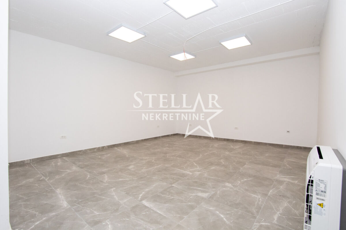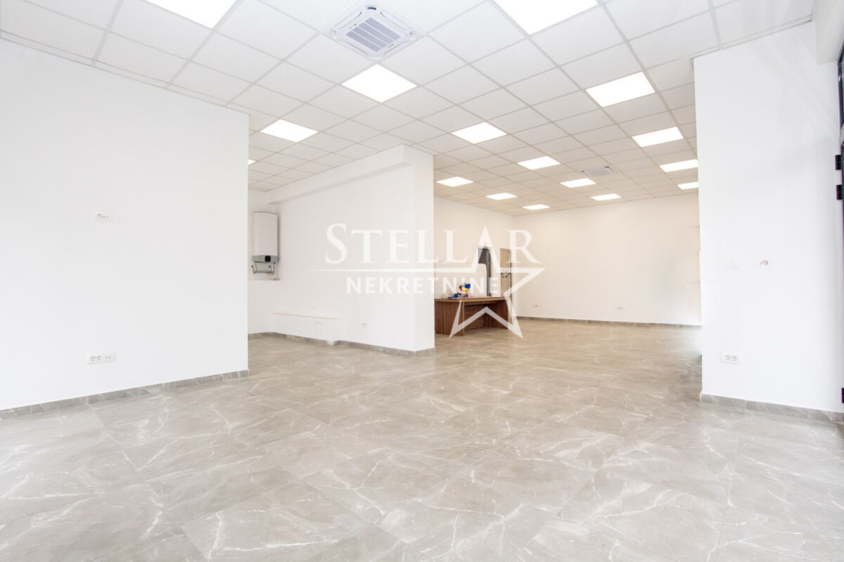 The space is located in Block 9. It is situated on two levels of approximately equal dimensions. The ground floor is 86m2, and the basement is 100m2. Both levels have 2 toilets. The ground floor is glazed on all sides, even on the side where the stairs to the basement are, making the basement very well-lit. The location is desirable; the space is at the corner of the building and is visible from Dalmatinska street and from Block 9, thus from two sides. It is suitable for clinics, offices, retail spaces, or something else. Parking is provided, with 2 spaces in the garage under the ramp and several uncovered spaces in front of the premises. It is rented for a longer period with a mandatory deposit. Property ID M652 +382 69 618 445