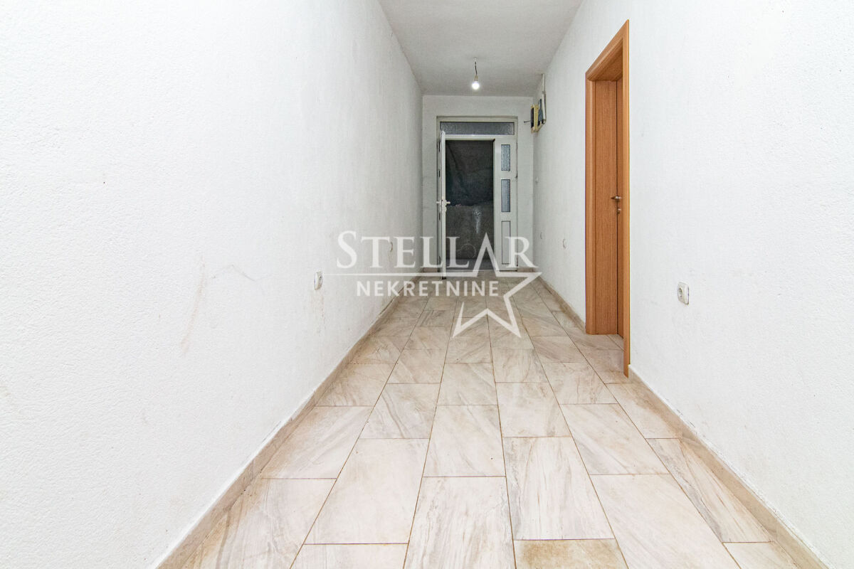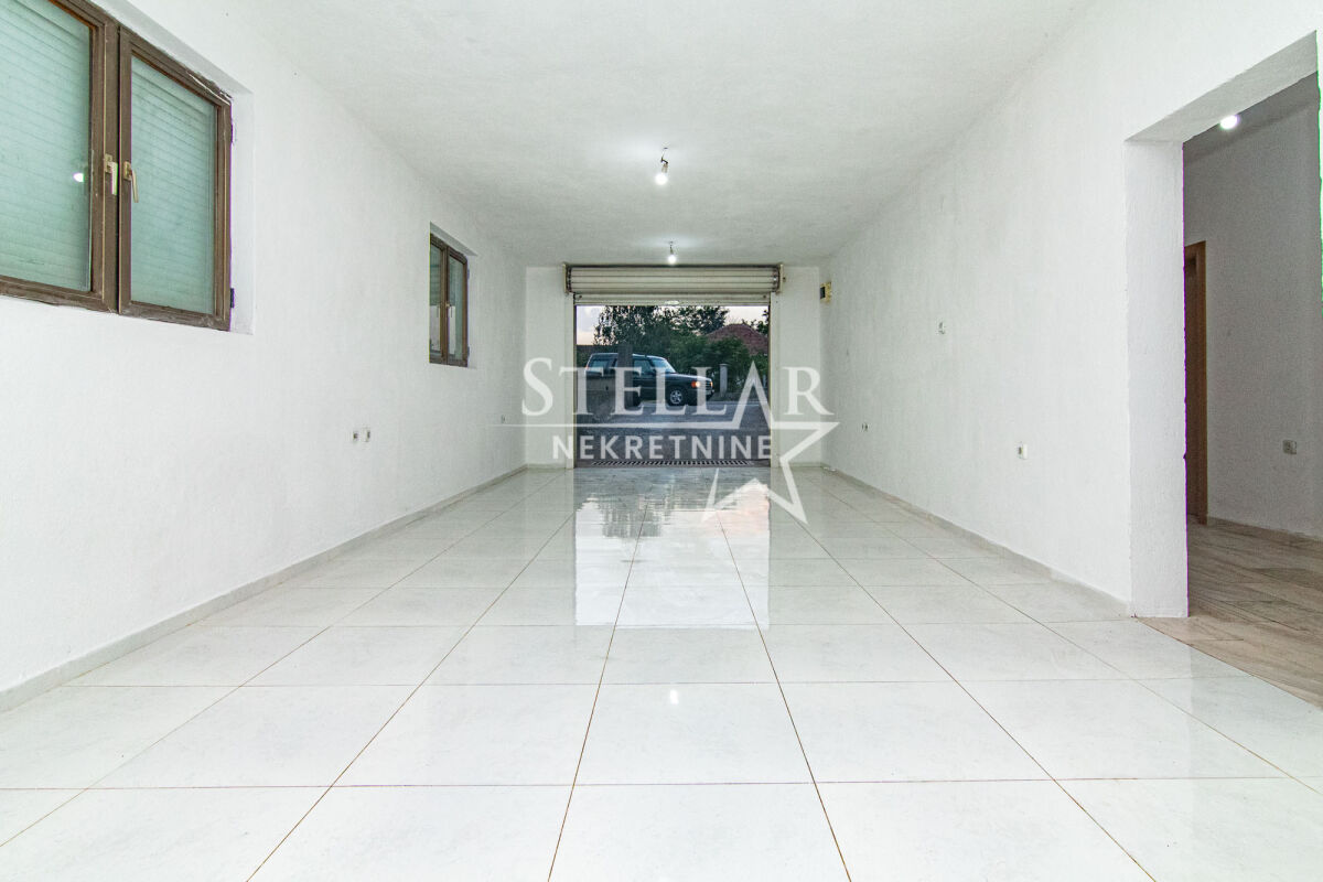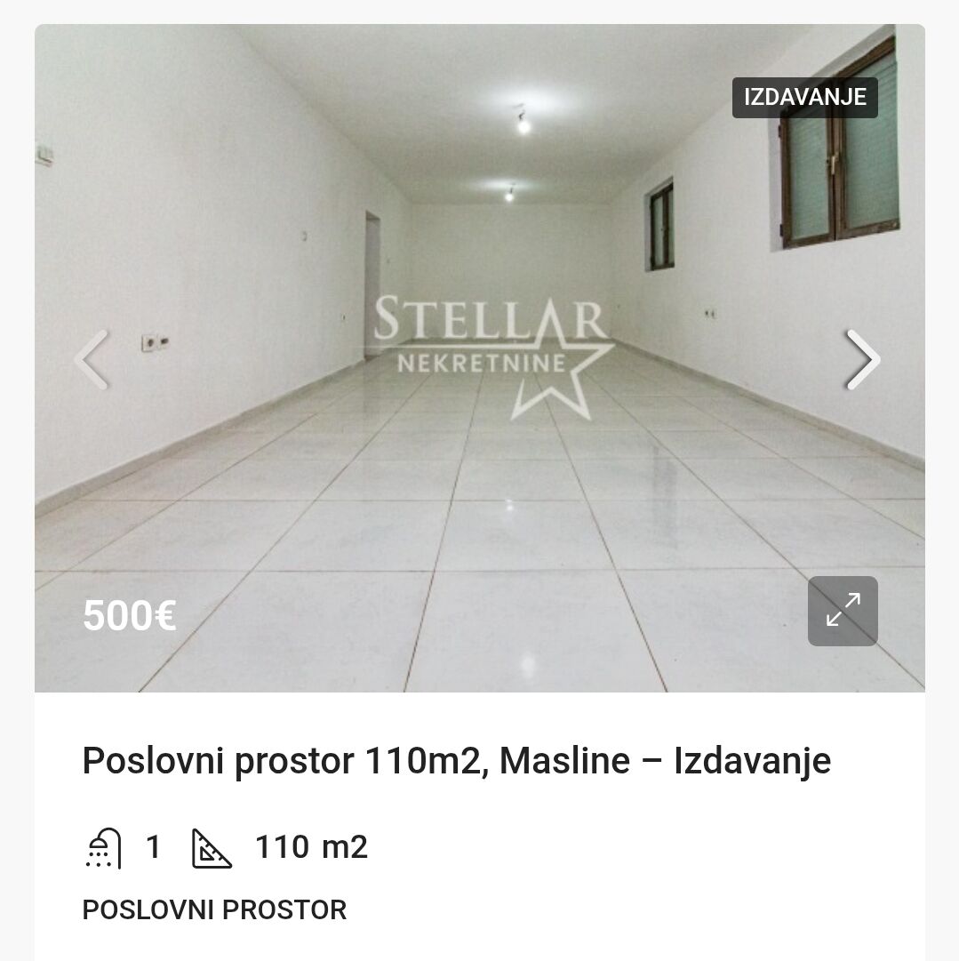 Location of the space: Masline, Podgorica Area of the space: 110m2 Rooms: 2 Floor: Ground floor The commercial space is located 2.5km from the city center. It is situated on the ground floor and consists of a hallway of about 20 square meters and two rectangular rooms of 40m2 on each side of the hallway. At the end of the hallway, there is a bathroom. The entrance to one of the rooms has a roll-up door, and the owner is willing to change it if the tenant desires. In front of the building, there is parking space for 3 cars. The space is rented for a longer period with a mandatory deposit. Property ID M225 +382 69 618 445