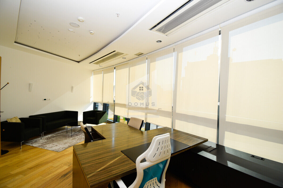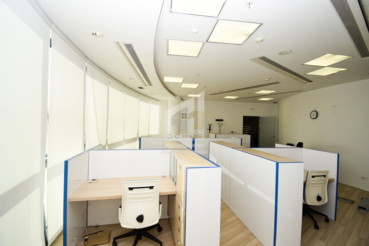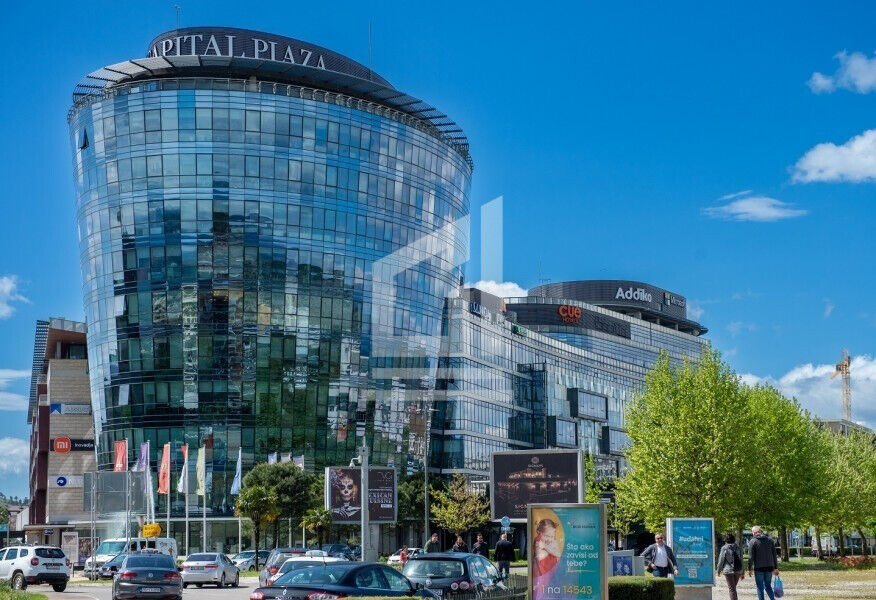 A business space of 193m2 is available in The Capital Plaza Diplomat Tower in Podgorica. It is an impressive high lobby of the Diplomat tower, including reception and security services 24/7. The Capital Plaza Center is considered one of the safest buildings. It has a reception, three fast elevators, a fire protection system, access control, security, monitoring, and management systems, as well as central air conditioning. The ground floor of Capital Plaza also includes a pedestrian zone surrounded by a wide range of fashion stores, home decor shops, restaurants, banks, and many other specialized and service shops. This business space is fully equipped and has a conference room, open space for employees, a reception, and an office for the executive director, a kitchen, an archive, as well as 3 offices for middle management. It also has one parking space at level -3.