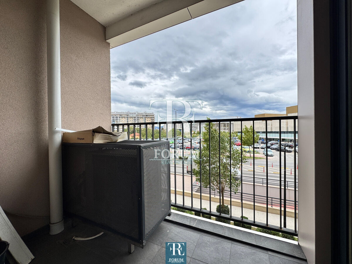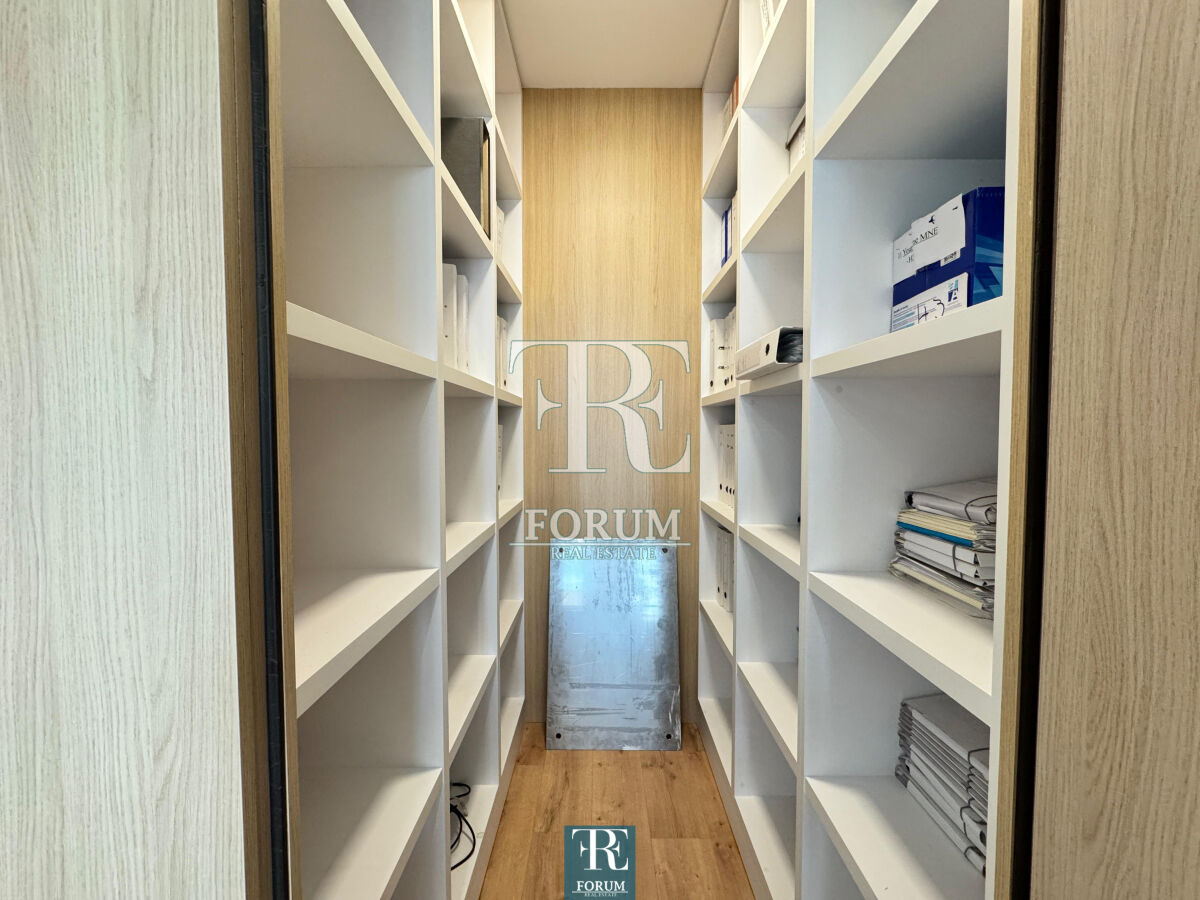 Modern office space for rent in Zetagradnje "Linea" building A well-equipped office space of 58 m², structure of a one-room apartment, is for rent. The space is located on the first floor of a building that has two elevators. The space is designed so that seven people can work comfortably. The space includes: the main room with a large desk, a separate office with a smaller desk, a small kitchen, an archive and a bathroom. It is equipped with numerous cupboards and shelves ideal for storing documents and office supplies, and the bathroom has underfloor heating. The space has a multi-split air conditioning system, while the terrace offers a pleasant view of the boulevard. The office is ideal for an accounting office or similar business activities.