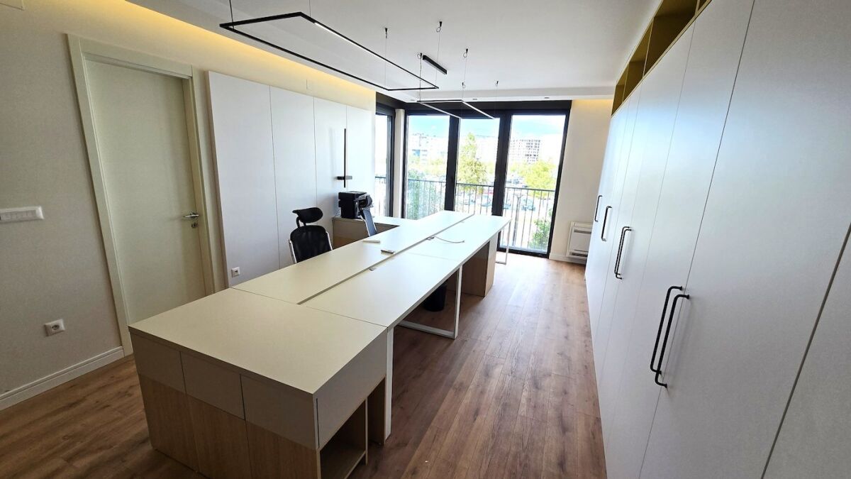Furnished office space of 58m2, equipped for office business, next to TC Capital plaza in Podgorica, is for rent. The office space is located on the first floor of the modern Linea building , in the immediate vicinity of Capital Plaza - one of the most prestigious business and residential areas in Podgorica . This location represents the heart of the business and administrative center of the city , which makes it ideal for companies that strive for a professional image and easy accessibility to clients and partners. The Linea building is characterized by a modern architectural design , a representative entrance and high construction standards. There are numerous banks, state institutions, international organizations, renowned companies, restaurants, hotels and cafes in the area, which provides a practical and dynamic business environment. Thanks to its close proximity to the main roads , the location provides excellent connections to all parts of the city. Combined with modern surroundings and prestigious neighbors, this location offers all the conditions for a successful and pleasant business in the very center of Podgorica. Structure: entrance hall, open space area/office with 6 workplaces, manager's office, kitchenette, archive, bathroom, terrace. VAT is added to the stated price.