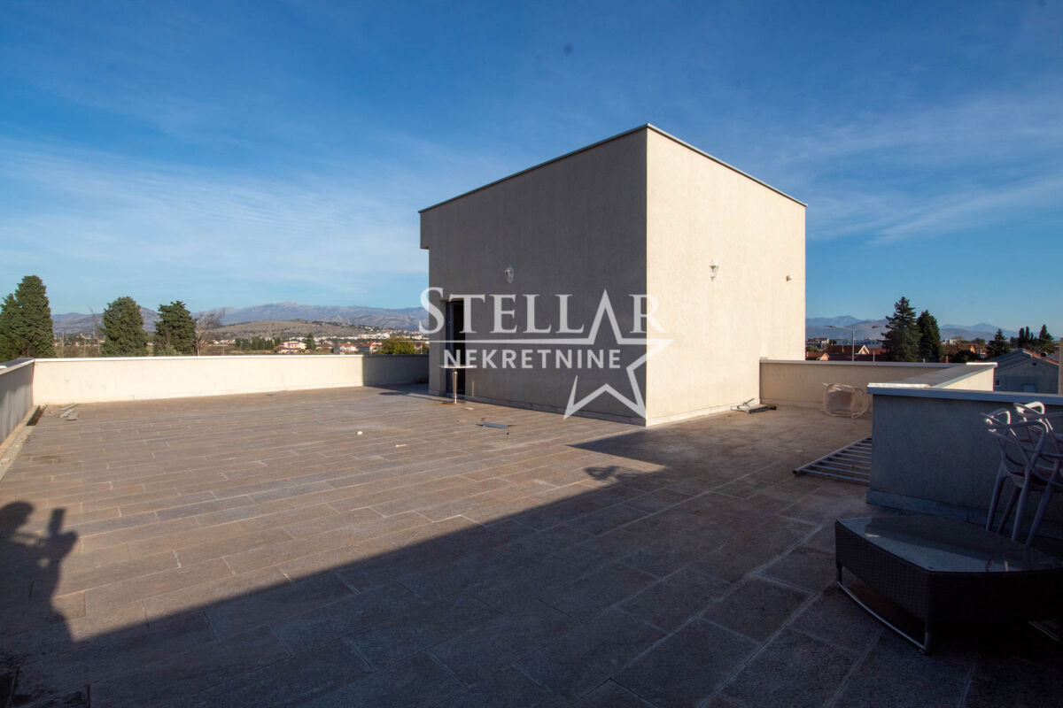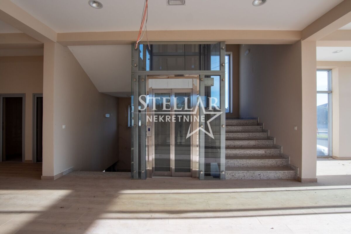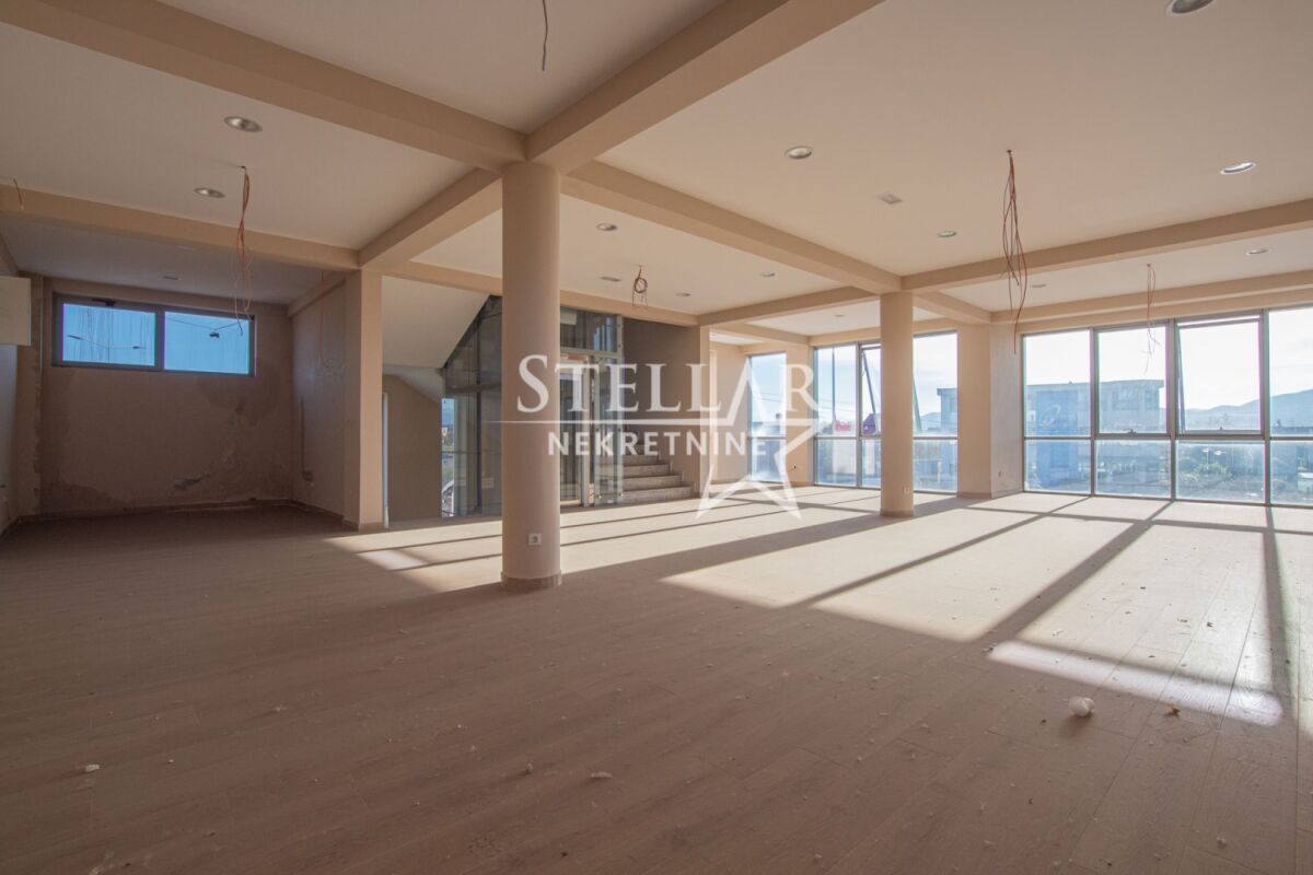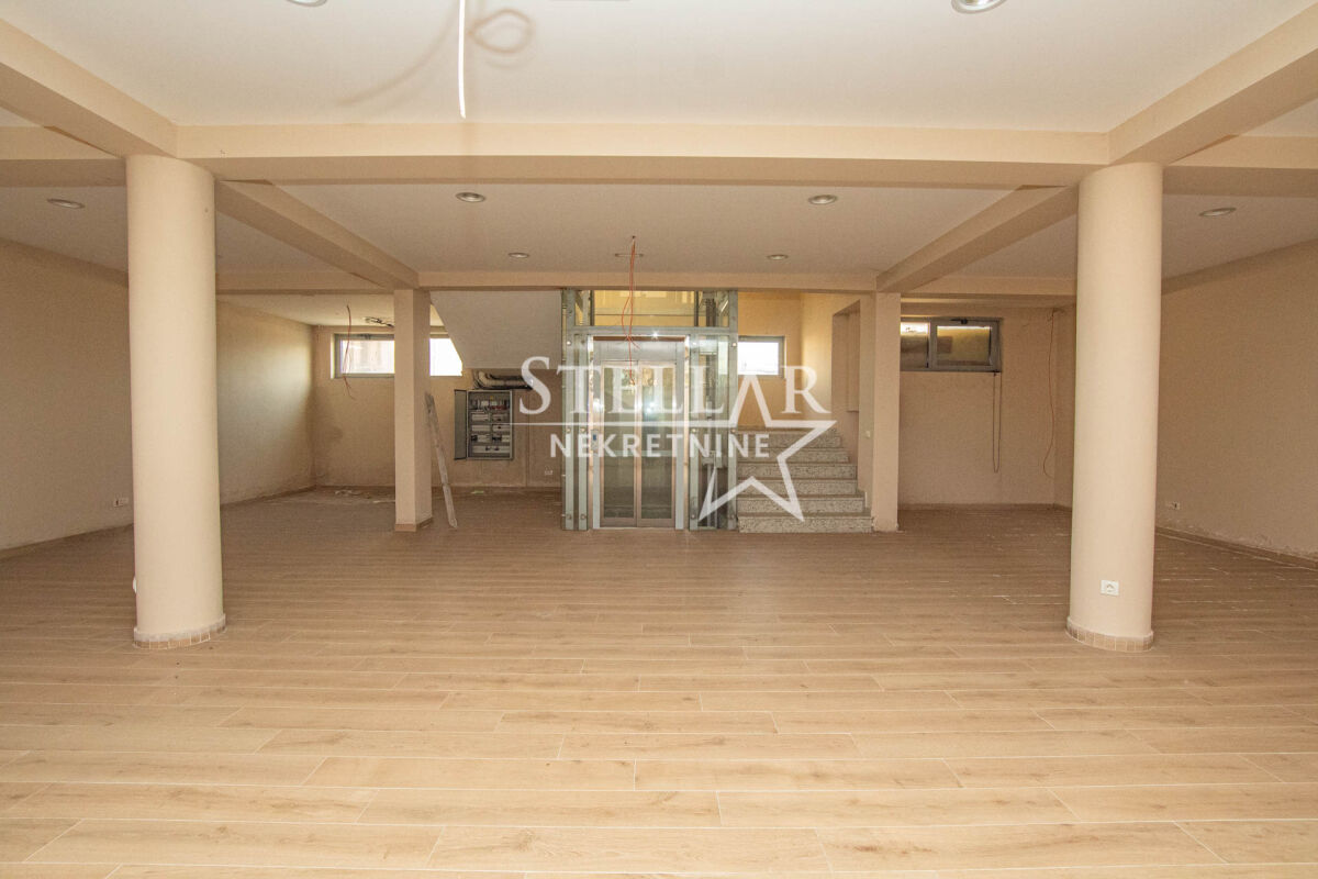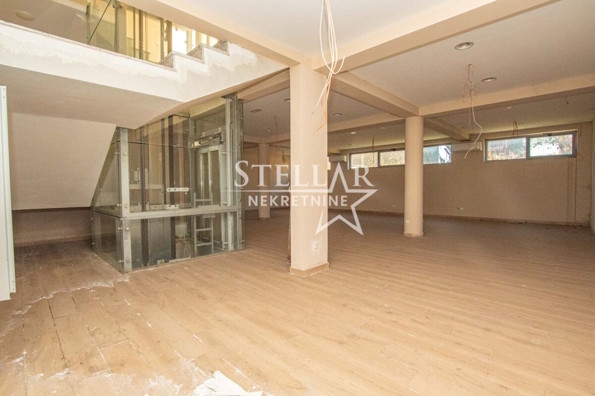 A business space is being rented in Gornja Gorica. The area of the space is 131m2 in the basement, 132m2 on the ground floor, and 123m2 on the first floor. Total 386m2. The space has an open-type roof and can be used. These 4 levels are connected by an elevator and stairs. On the ground floor, there are restrooms. The space is completely glazed on the entrance side and receives a large amount of natural light, which is characteristic of the modern style of construction of luxury business facilities. Certain renovations in the space are pending and need to be done. The business space is located along Bulevar Nikšićki put, easily accessible, and ideal for a retail facility or offices. In front of the space, there is parking for just a few vehicles. It is being rented for a longer period. Property ID M702 +382 69 618 445
