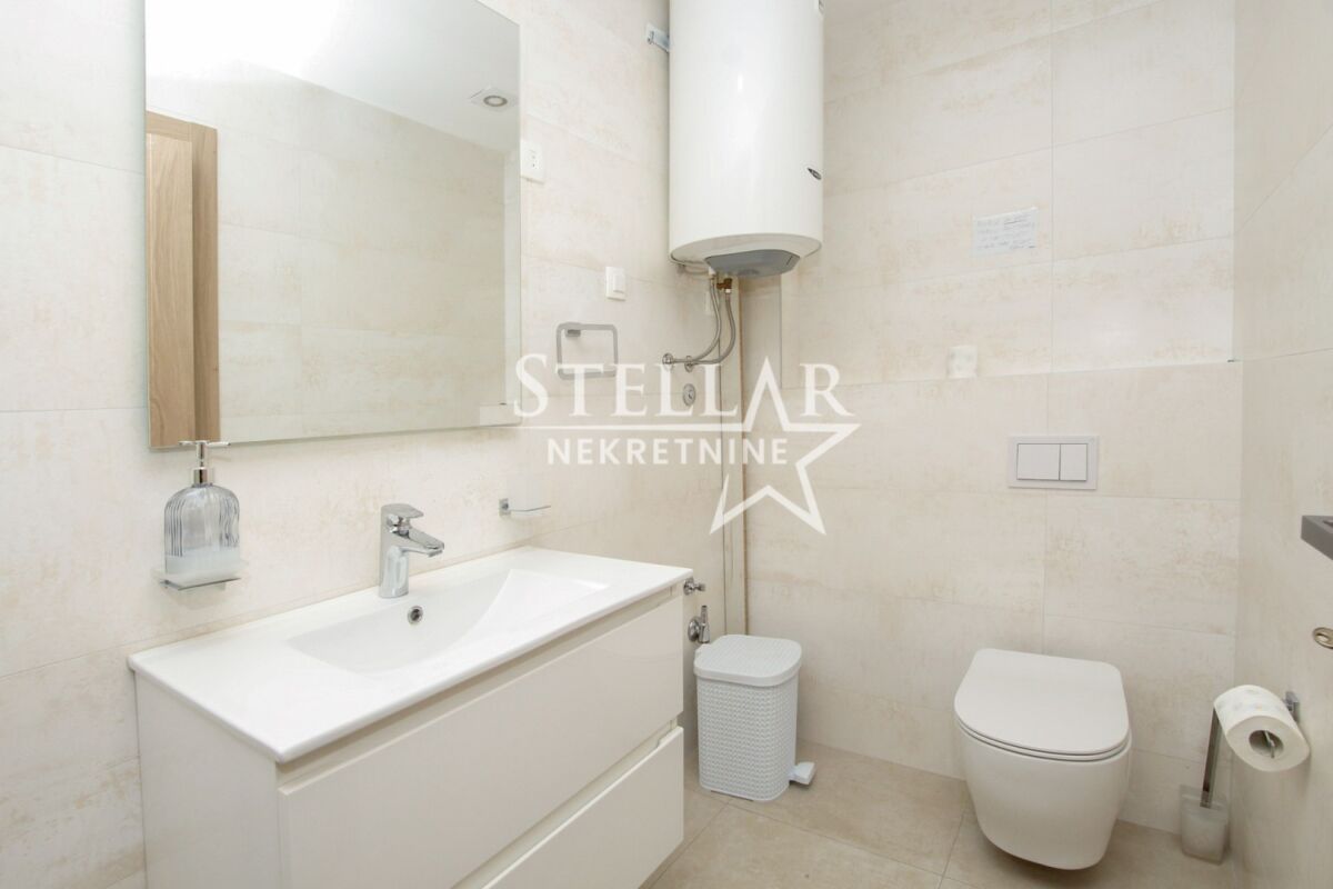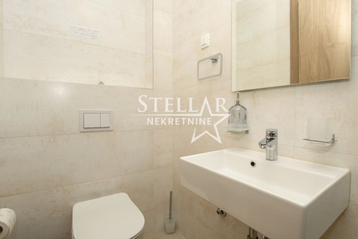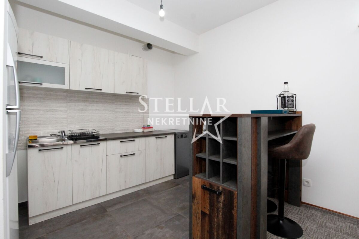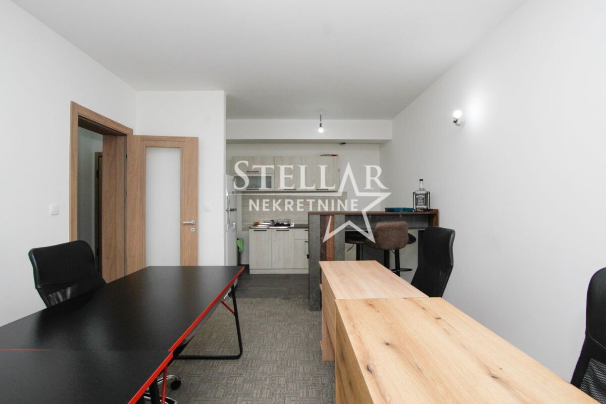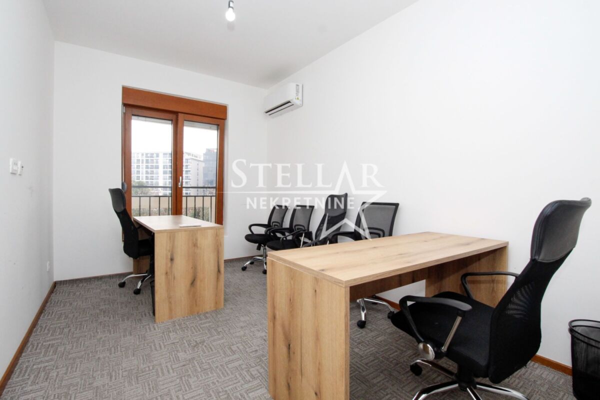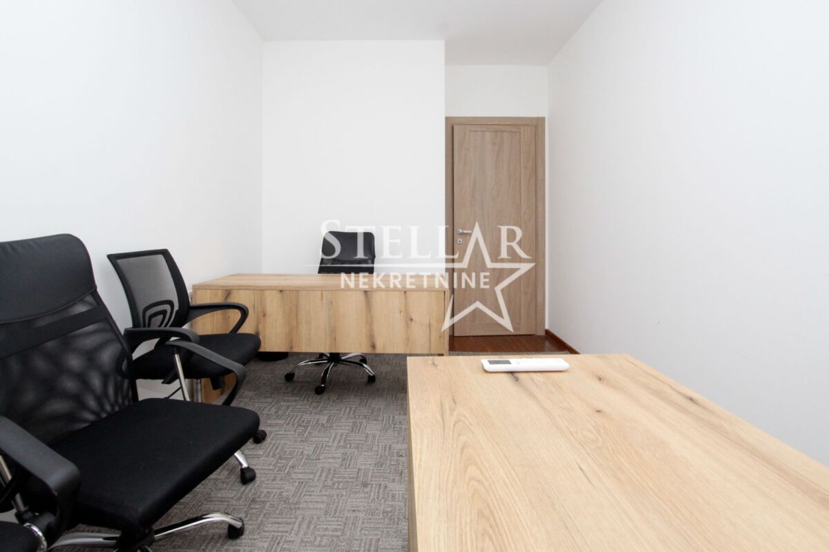 A commercial space (two-bedroom apartment) is for rent on the second floor in Master kvart. The space is fully equipped with office furniture and a kitchenette with a refrigerator and a dishwasher. The offices are air-conditioned with 3 air conditioning units, and the largest room has access to a balcony overlooking Central point and Atlas Capital. The space has two bathrooms and a spacious hallway. Master kvart is a new neighborhood, and it can be said that it has taken on a business spirit. Many apartments are offices, there are commercial spaces on the ground floor, and the neighbors are also very "developed" neighborhoods around the Big fashion shopping center. It is rented for a longer period with a mandatory deposit. Property ID M712 +382 69 618 445
