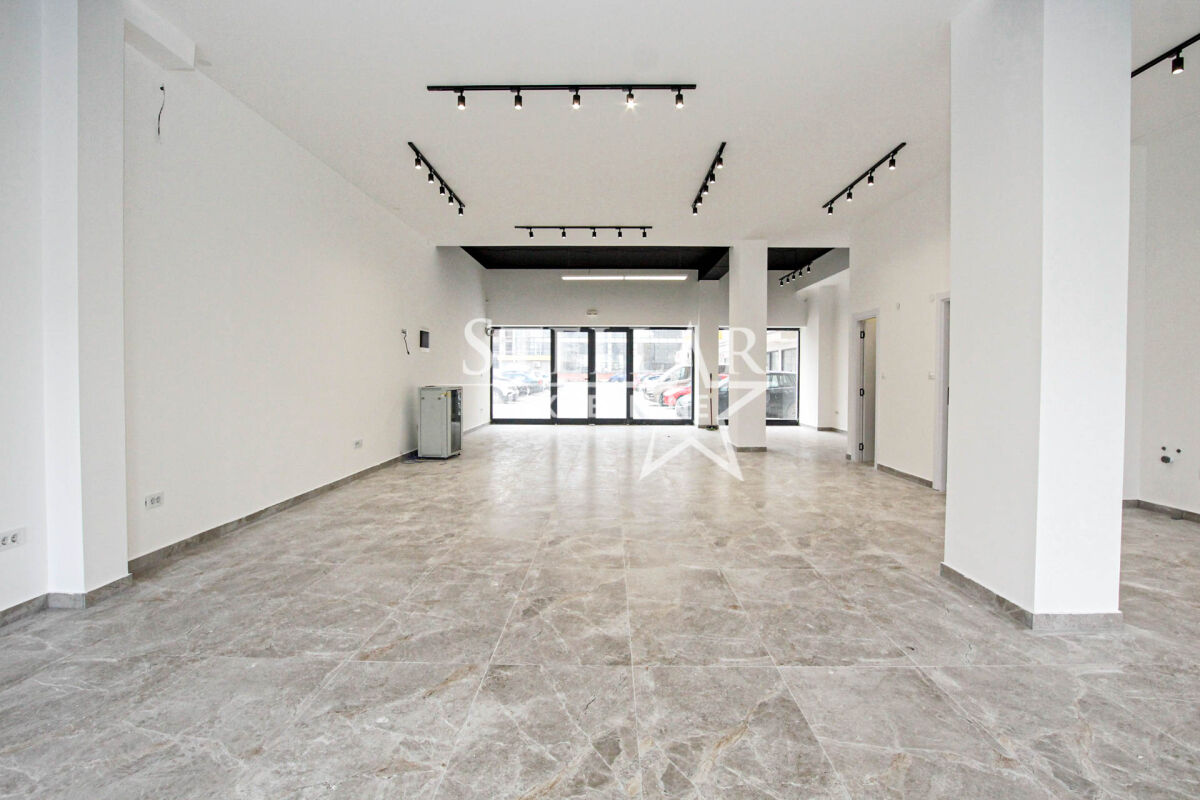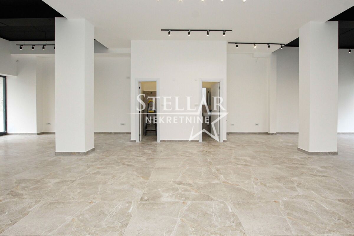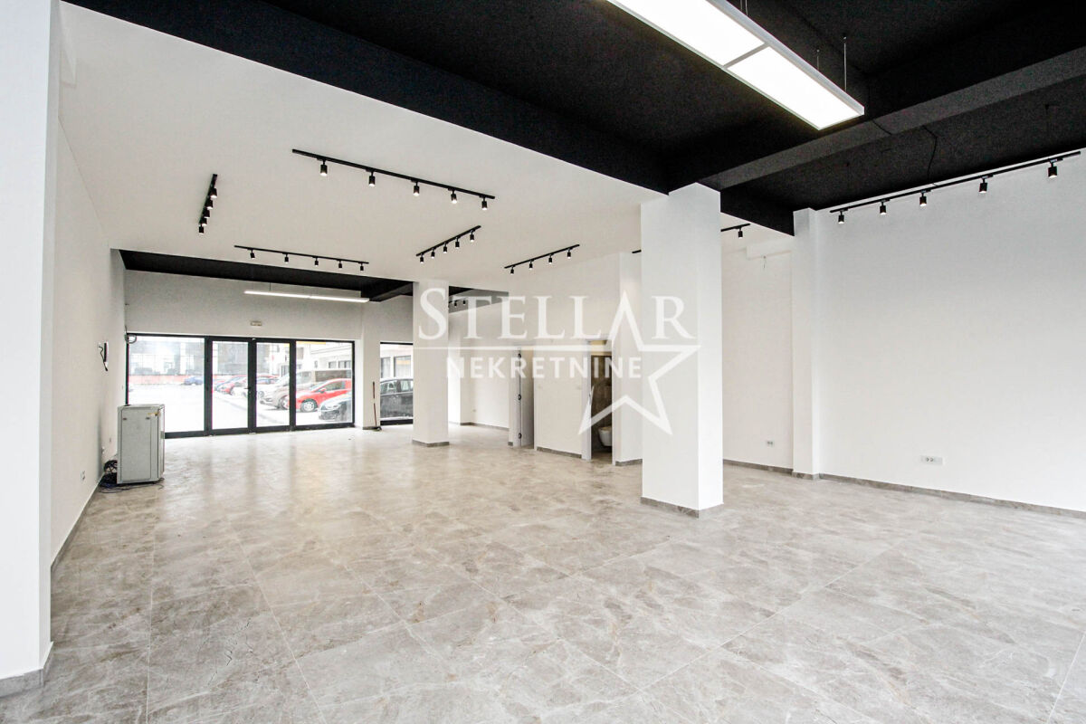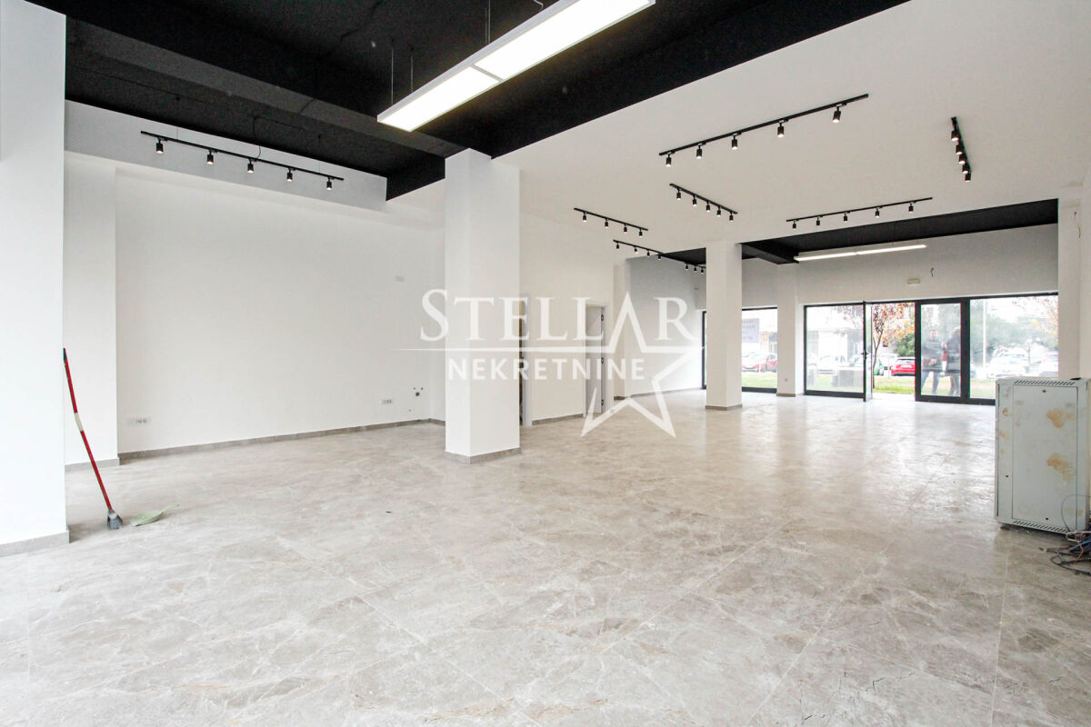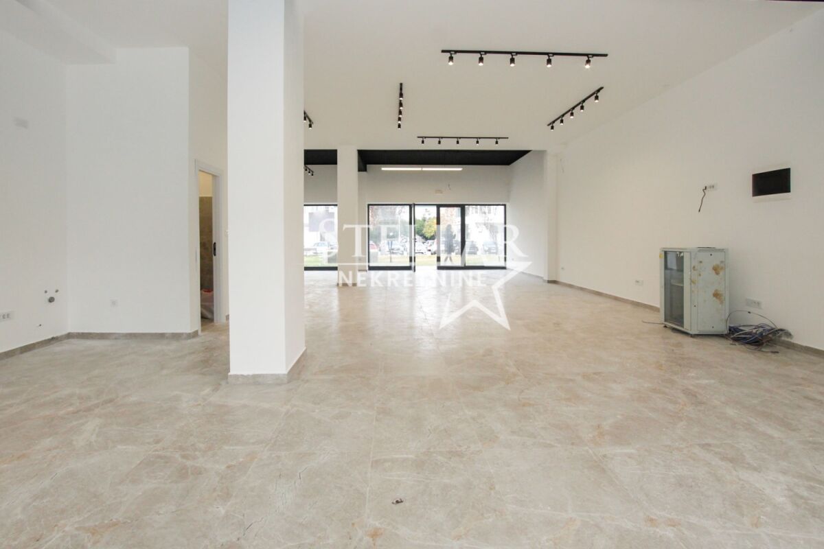 Business premises for rent in Pobrežje on the ground floor of a new building. The space is rectangular in shape with 14 double sockets and two toilets. It has exits on two sides of the building and is fully glazed on both sides. The total area of the space is 117m2. The space is suitable for all purposes: various types of shops, offices, exhibition space, or something else. The space can be divided and partitioned, i.e., adapted to a specific activity. It is rented for a longer period with a mandatory deposit. Property ID M713 +382 69 618 445