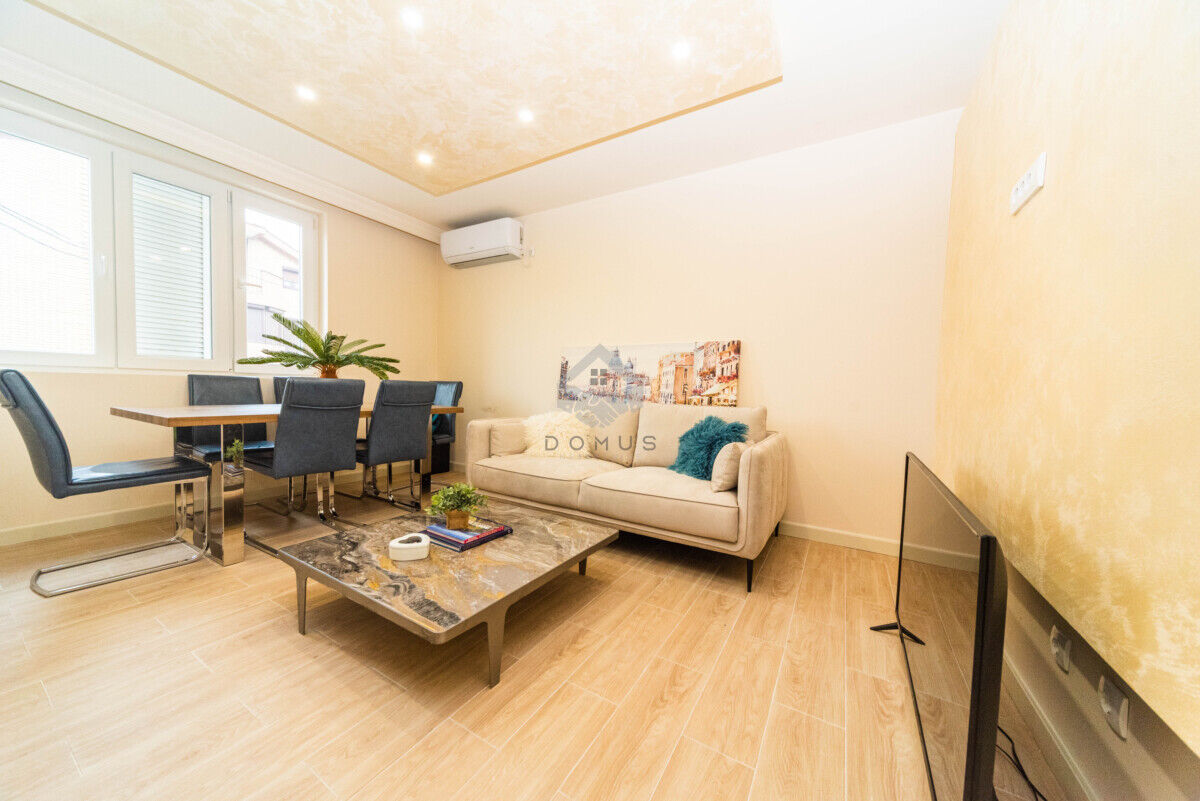 It is a one-bedroom apartment, consisting of a living room, dining room, kitchen, bedroom, hallway, bathroom and terrace. It is fully air-conditioned and