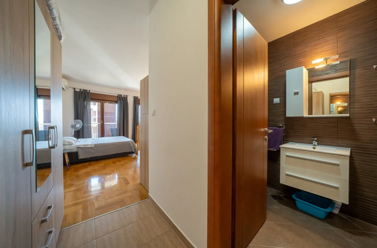 Продажа ID7446. Продаётся квартира в одном из самых живописных мест Будванской Ривьеры — в курортном поселке Бечичи, всего в 900 метрах от песчаного пляжа. Площадь: 110 м² Этаж: 3/3, малоквартирный дом Планировка: два уровня, 3 спальни, 2 санузла Две террасы с видом на зелень Тихое и спокойное место, идеально для жизни или отдыха Выгодная стоимость: €2,400/м² Рядом — красивая набережная с кафе и ресторанами, магазины, автобусная остановка. Удобное транспортное сообщение с Будвой и другими прибрежными городами. Бечичи — это курорт с развитой инфраструктурой, чистыми пляжами и уютной атмосферой. Отличный вариант для семьи, аренды или комфортного отдыха у моря. Лист недвижимости без ограничений и обременений. Оплата наличными.
