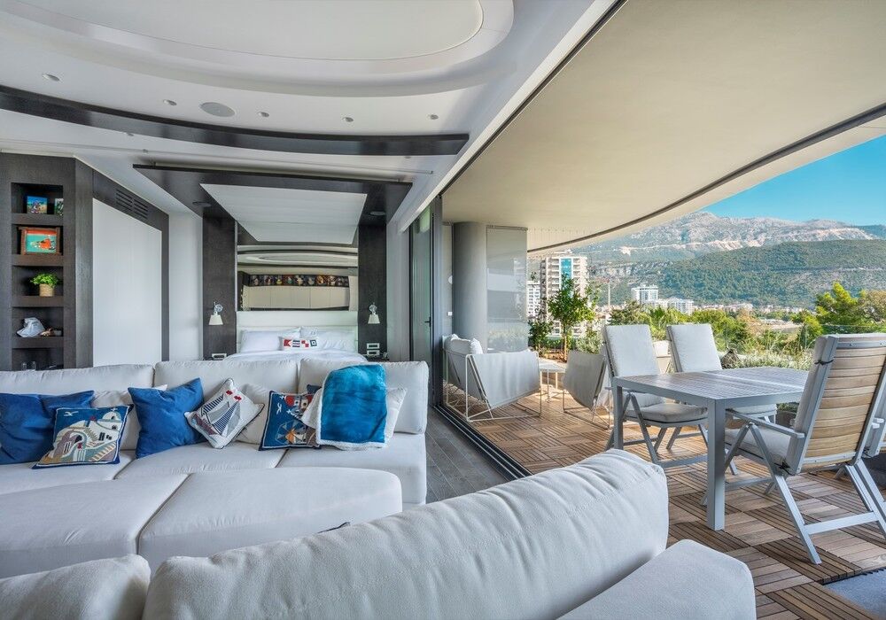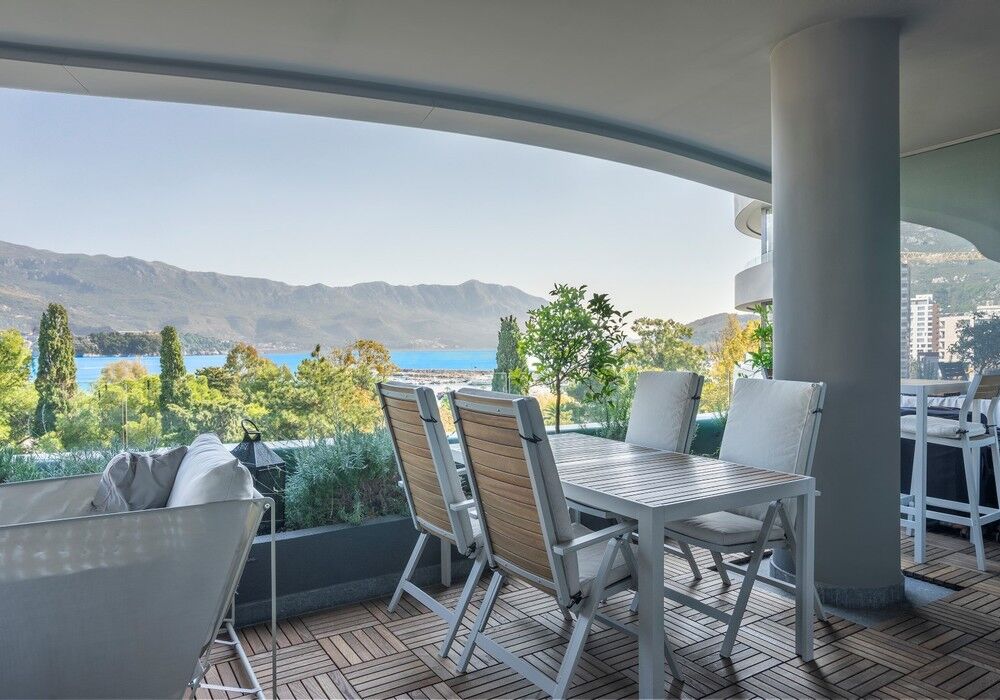 Продажа однокомнатной квартиры 59м² с видом на море в эксклюзивном жилом комплексе в Бечичах – первая линия моря с частным пляжем и роскошными удобствами