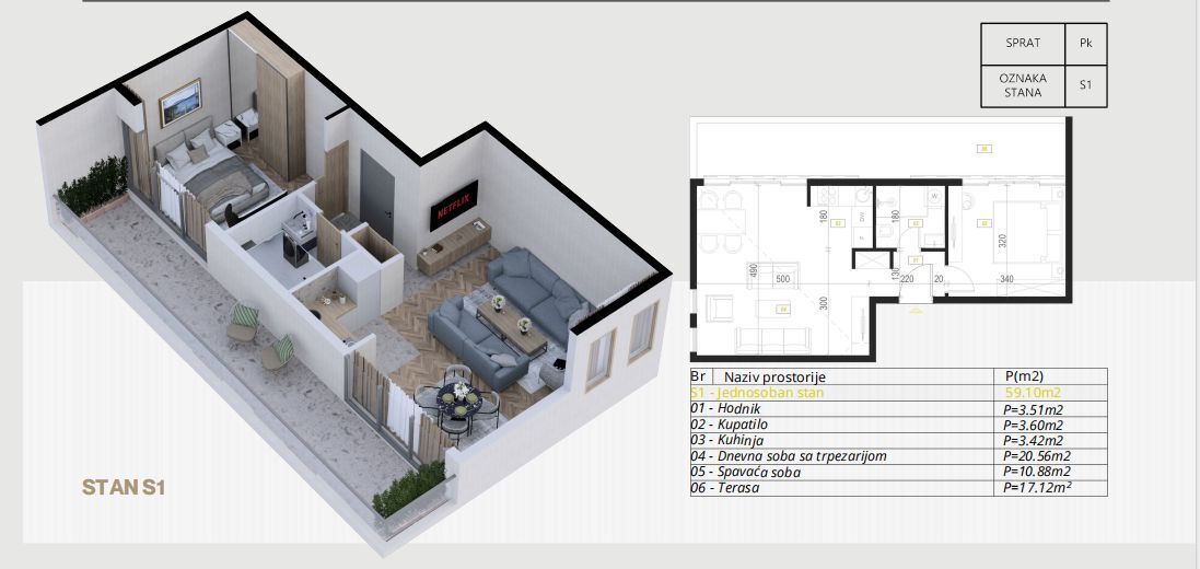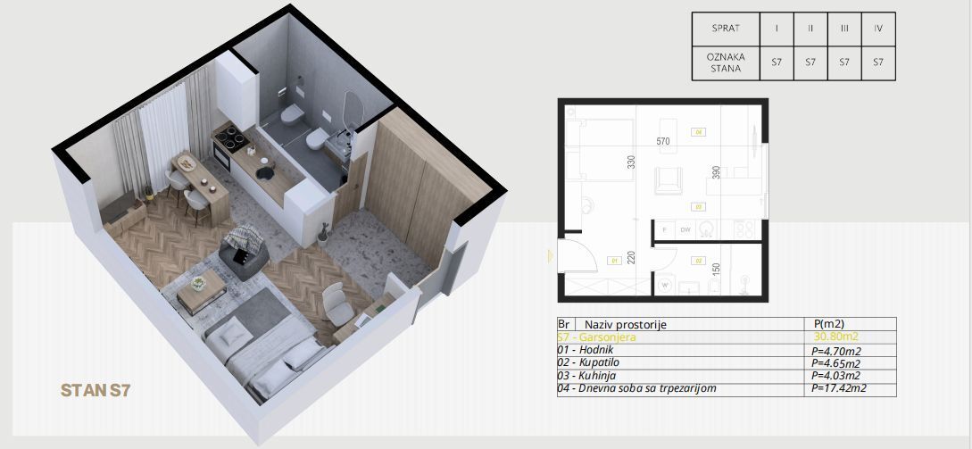 Представляем вам студию площадью 30.80м² в новом жилом комплексе, находящемся на стадии строительства. Комплекс расположен в привлекательной части Будвы, создан для тех, кто ищет сочетание элегантности, комфорта и высокого качества жизни. Находясь в районе Поткошлюн – одном из самых востребованных районов – комплекс предлагает непосредственную близость к пляжам, элитным ресторанам, набережной, магазинам, школам и всей необходимой инфраструктуре для комфортной жизни у моря. Здание состоит из 5 этажей и предлагает на продажу разные типы квартир – студии, однокомнатные и двухкомнатные, идеально подходящие как для проживания, так и для сдачи в аренду. Также имеется возможность приобрести гаражное место в здании. Проект разработан с особым вниманием к качеству и использованию премиальных материалов. Использование известных брендов подтверждает серьёзный подход к строительству: керамика Marazzi, душевые системы Grohe SmartBox и встроенные инсталляции, лакированные межкомнатные двери из МДФ с магнитными замками, оконные системы REHAU, паркет Tarkett из брашированного дуба и многое другое. Всё здание будет оснащено системой видеонаблюдения и охранной сигнализацией, а в коридорах будет установлено сенсорное освещение. В комплексе предусмотрены два лифта – автомобильный и пассажирский. Комплекс — идеальная возможность как для надёжных инвестиций, так и для приобретения роскошного жилья в одном из самых престижных городов черногорского побережья. Будва, как жилой и туристический центр, гарантирует рост стоимости недвижимости и высокий доход от аренды. Срок завершения строительства: май 2027 года