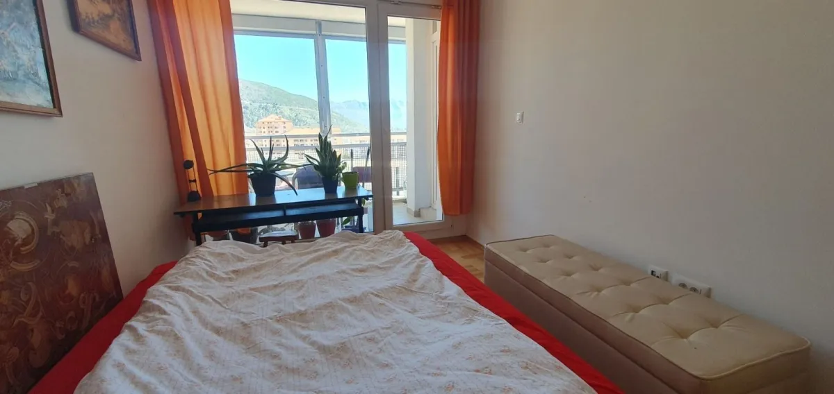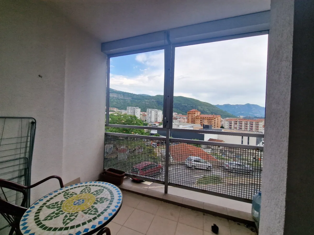 Продажа Будва № 7226. Квартира с 1 спальней, 47 м2, 1 этаж, новый дом с лифтом. Квартира на солнечной стороне, с террасы вид на город. Квартира продается с мебелью.