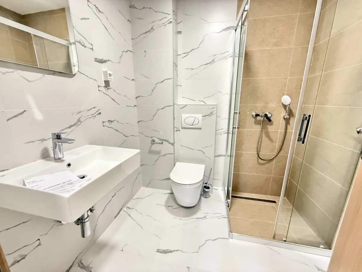 Продаётся уютная квартира площадью 43 м² в новом жилом доме в одном из лучших районов Будвы. Квартира расположена на 2 этаже, полностью новая, с качественной отделкой и паркетными полами. Характеристики: 1 спальня гостиная, совмещённая с кухней ванная комната терраса с видом на море и горы Дополнительно: есть возможность приобрести гаражное место рядом расположен супермаркет HDL, кафе и остановка транспорта Преимущества: новый дом с современными коммуникациями квартира полностью готова к заселению отличный вариант для комфортного проживания или сдачи в аренду!