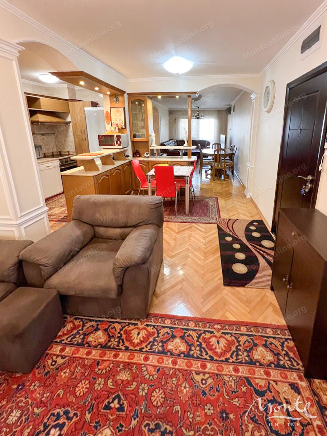 Представляем к продаже большую квартиру площадью 114 кв. м, расположенную на 2 этаже в одном из лучших районов Будвы. Эта квартира является идеальным выбором для тех, кто ищет просторное и комфортное жилье в центре событий, но при этом ценит тишину и уют. Квартира имеет удобную планировку с тремя спальнями и двумя санузлами. Она продается полностью меблированной и оснащенной техникой, что позволяет новым владельцам сразу же заселиться без дополнительных вложений. Окна выходят в тихий двор, обеспечивая спокойную атмосферу. Расположение квартиры исключительно удобно: вся необходимая инфраструктура находится рядом. До магазина можно дойти всего за 3 минуты, а до моря и пляжа — за 10 минут пешком. Дополнительным преимуществом является возможность приобрести полноценный гараж и два кладовых помещения, что обеспечит максимальное удобство для хранения вещей и автомобиля. Эта квартира — отличный выбор как для постоянного проживания большой семьи, так и для летнего отдыха или выгодной инвестиции в недвижимость в самом сердце Будвы.