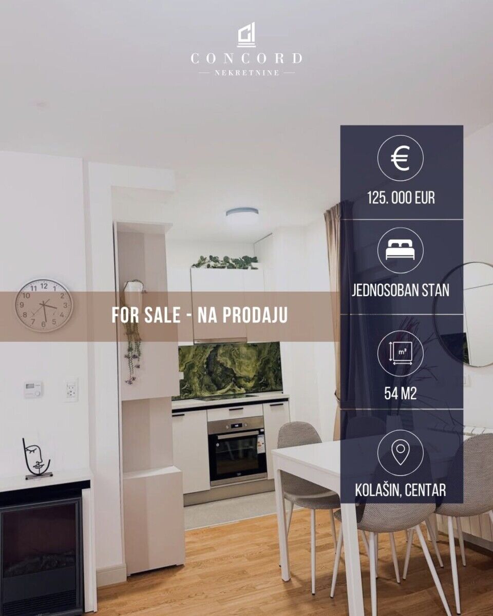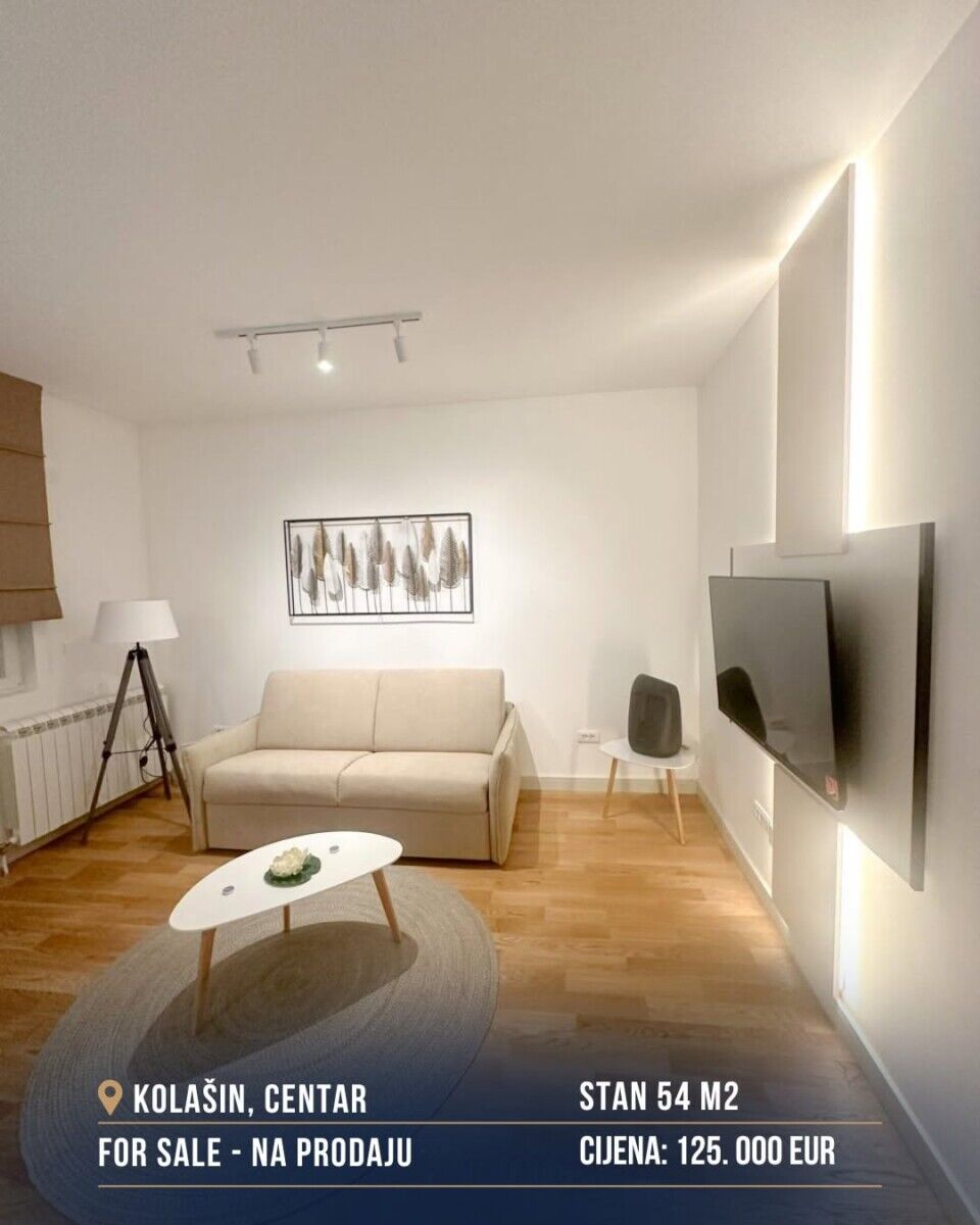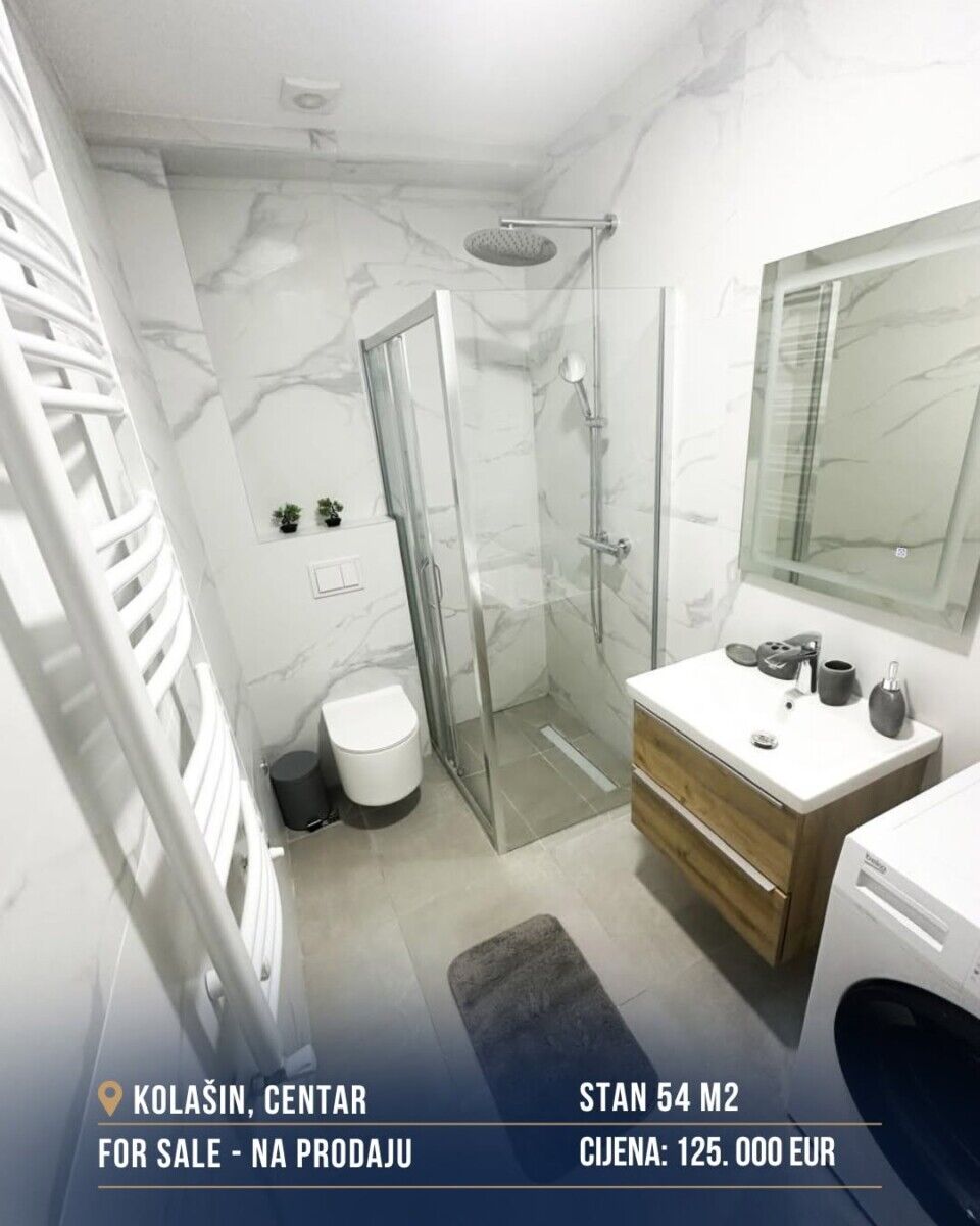 🏔️ СНИЖЕНА ЦЕНА – Колаšin, Центар Новая цена: 125.000 € (ранее: 135.000 €) Продается роскошная однокомнатная квартира в престижном комплексе Zafiro Norte Spa & Residence, расположенном в самом сердце Колаšina. Идеальная недвижимость для отдыха, аренды или инвестиций. 📐 Основная информация: Площадь: 54 м² 42 м² зарегистрировано (в списке недвижимости) 12 м² терраса (не зарегистрирована) Статус: Не заселен Меблировка: Полностью lux оборудован 🛋️ Структура квартиры: Коридор Гостиная + столовая + кухня (open space) Спальная комната Ванная комната 2 балкона 🅿️ В цену включено: Гаражное место Огражденная парковка для гостей 🏢 Услуги в комплексе: Ресепшн с службой аренды и обслуживания Гидромассажный бассейн Финская сауна Comby русская сауна Скиарница Прачечная Гараж Внешняя ограда