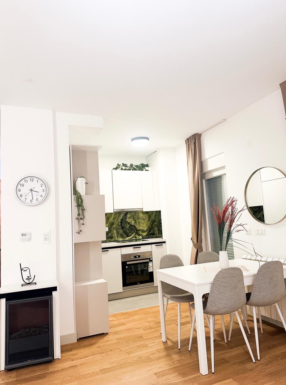 Однокомнатная, роскошно меблированная, незанятая квартира 42м2 с террасой 12м2 продается в здании Zafiro Norte Spa & Residence, расположенном в самом центре Колашина. Объект спроектирован для обеспечения комфорта роскошного отдыха. Структура квартиры: коридор, гостиная, столовая и кухня - концепция открытого пространства, спальня, ванная комната и 2 балкона. В собственности также есть гараж, который включен в цену. Огражденная парковка для гостей. Содержимое объекта Spa & Residence: гараж и наружный забор, прачечная, рецепция с услугами аренды и обслуживания, гидромассажный бассейн, русская сауна Comby, финская сауна и лыжная комната. Собственность 1/1, без обременений и ограничений.
