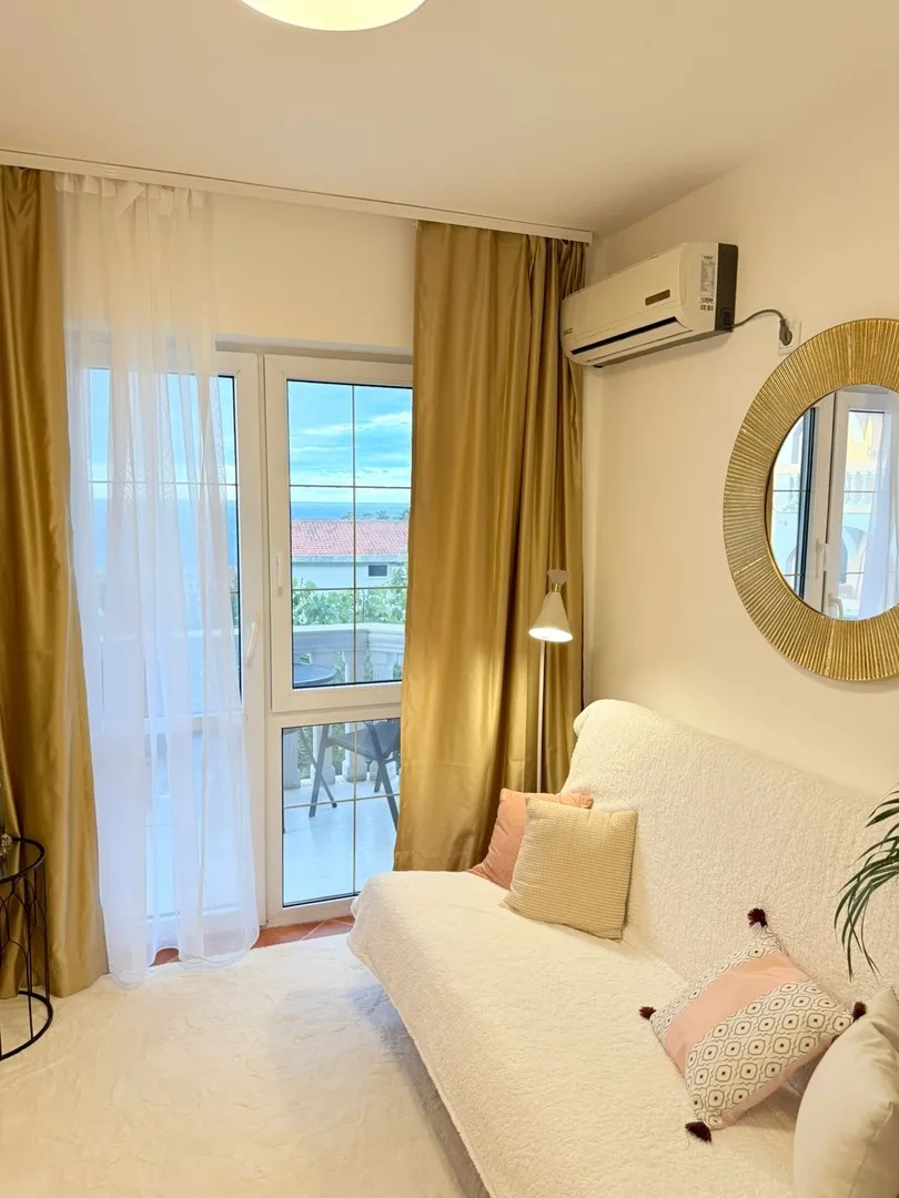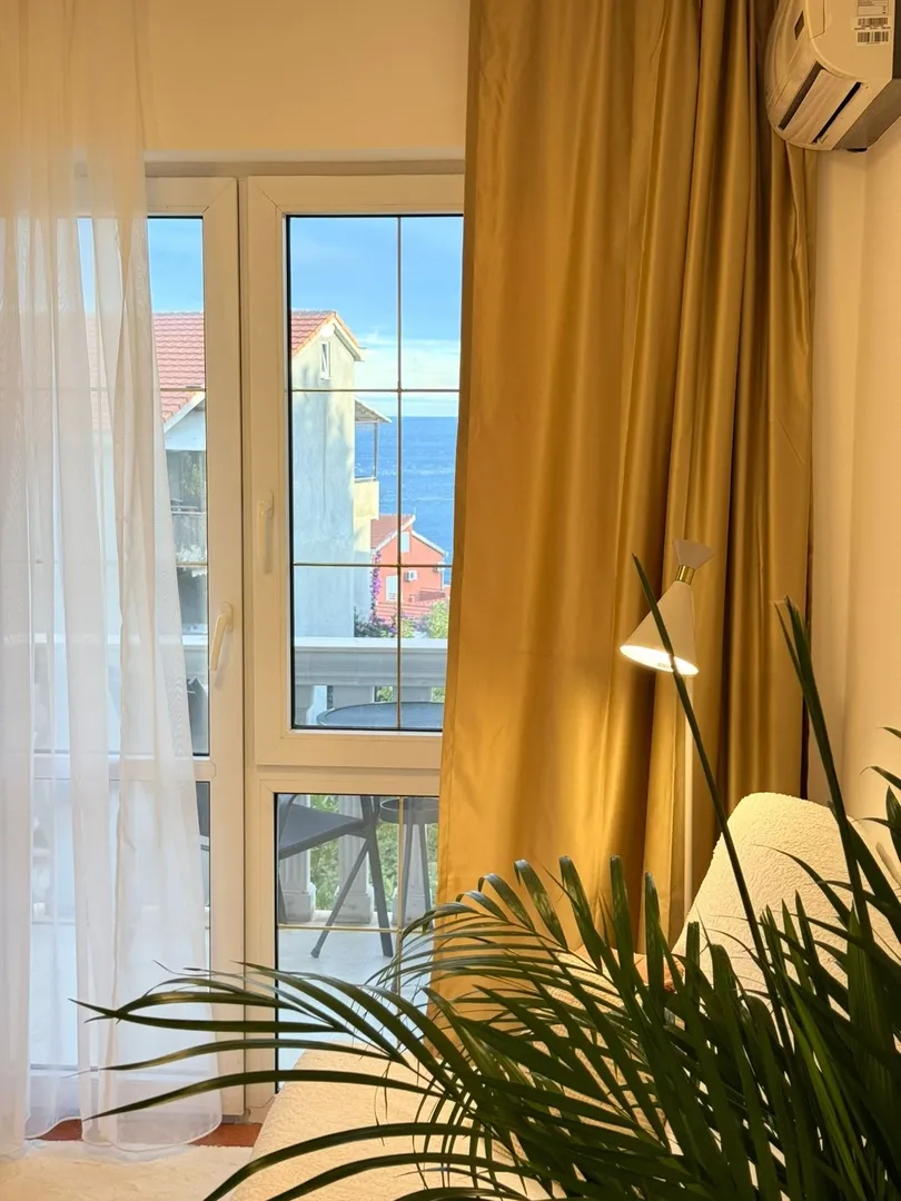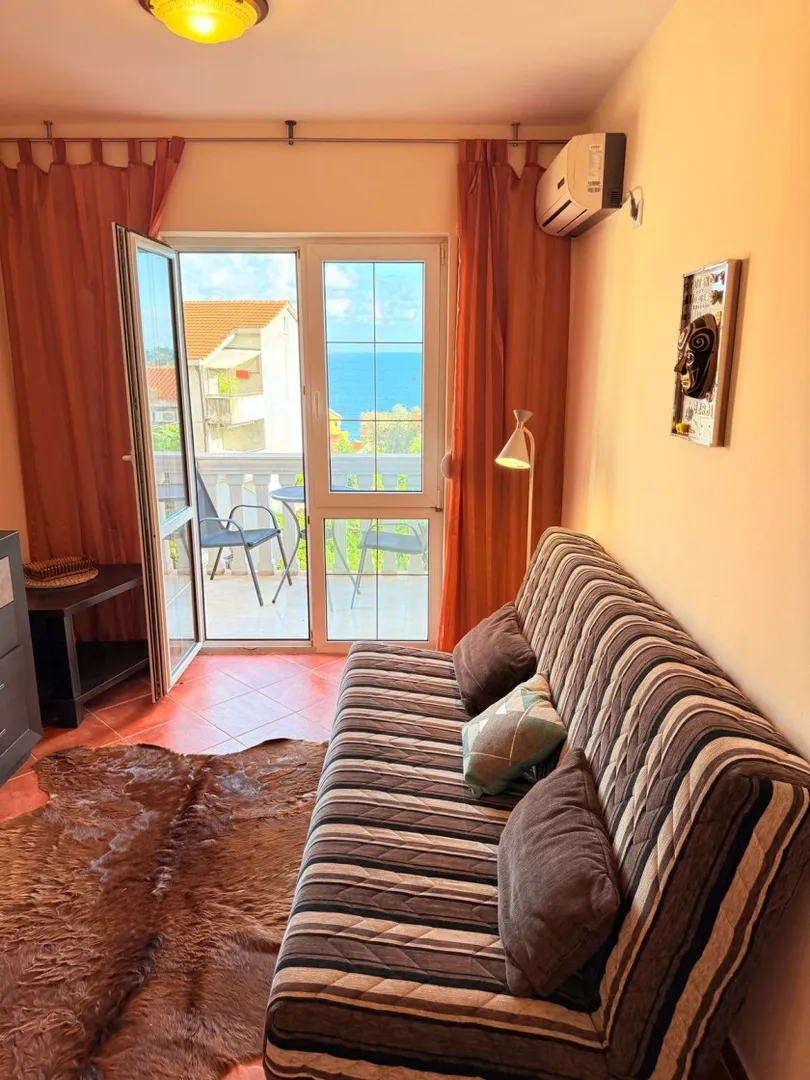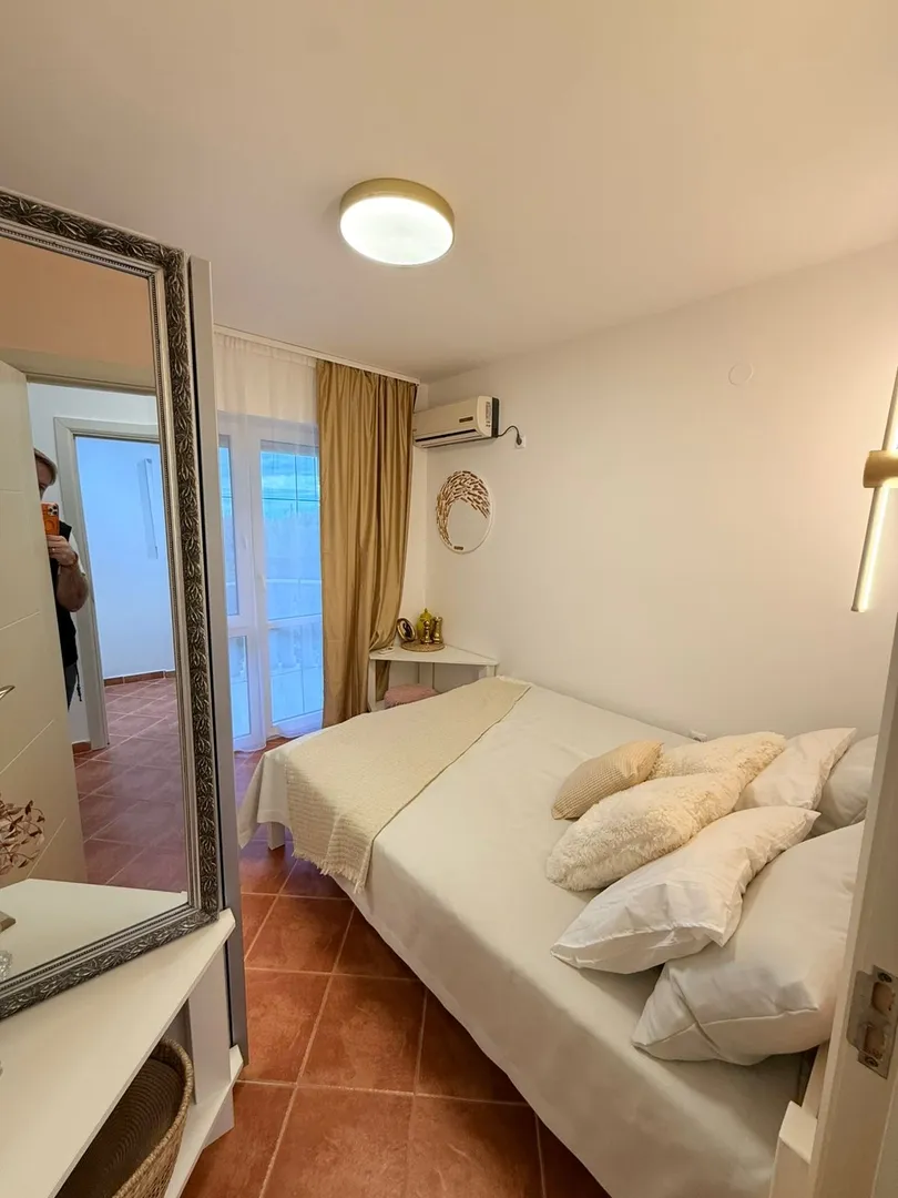 Продажа ID7107. Квартира в тихом жилом районе среди сосен и оливковых рощ с видом на море. Квартира с отдельной спальней, гостиной и кухней. Площадь 36 м2 плюс 2 террасы. Вид на море. Второй этаж. Возле дома есть парковка.