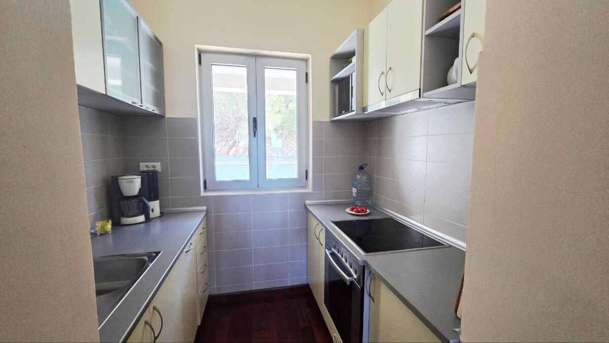 Продаётся просторная и ухоженная квартира в спокойном зелёном районе Приеворац, Петровац. Район отличается тишиной и удобным расположением. Пляж Лучица находится всего в пяти минутах ходьбы. Квартира расположена на четвёртом, последнем этаже жилого дома. Общая площадь — 93 м², а с террасами — около 120 м². Из каждой комнаты есть выход на террасу с панорамным видом на море. Планировка: • прихожая; • гостиная, совмещённая с кухней; • две спальни; • ванная комната; • гостевой туалет. Квартира находится в отличном состоянии. Она никогда не сдавалась в аренду и продаётся с мебелью. Полностью готова к проживанию. Перед домом есть удобная бесплатная парковка. Квартира легализована, все документы оформлены правильно. Спокойное окружение, продуманная планировка и красивый вид на море делают эту квартиру удобной для постоянного проживания или отдыха.
