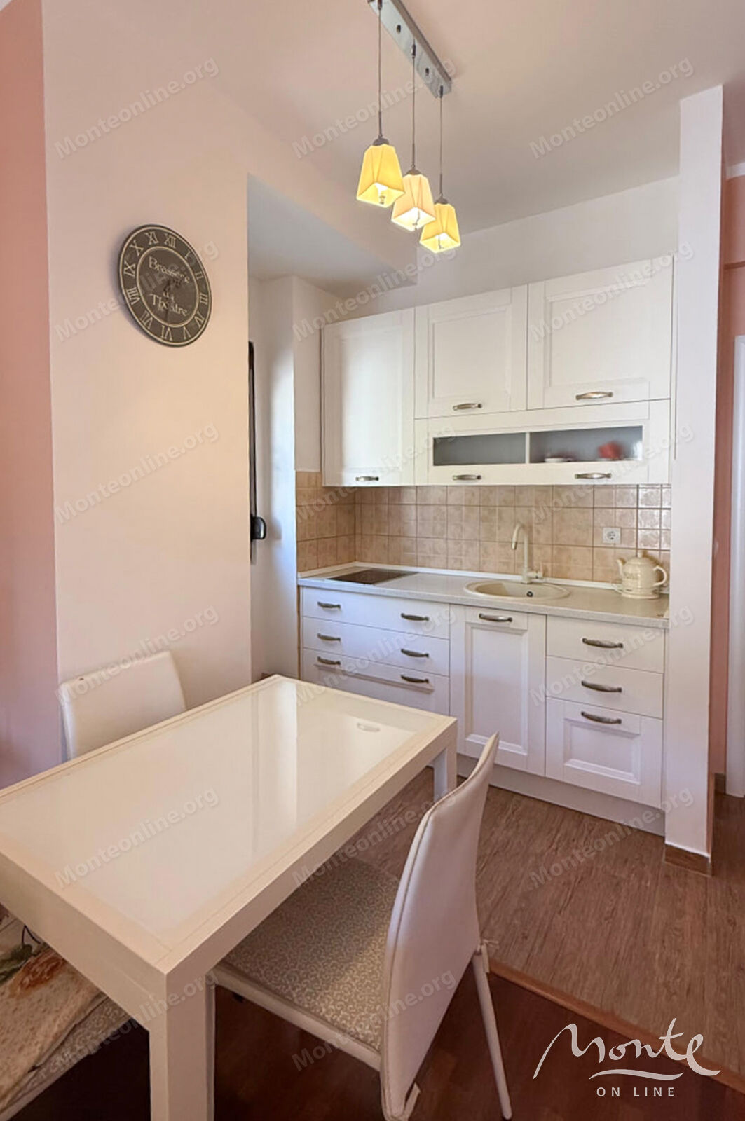 Представляем к продаже уютную квартиру площадью 61 кв. м, расположенную на 4 этаже дома с лифтом в живописном Петроваце. Квартира продается с гаражом площадью 18 кв. м, который входит в стоимость и идеально подходит как для автомобиля, так и для хранения вещей. Планировка: • прихожая; • главная спальня с просторной ванной комнатой; • вторая спальня; • вторая ванная комната с душевой кабиной; • гостиная, совмещённая с кухней и обеденной зоной; • терраса с боковым видом на море. Описание: Квартира полностью меблирована и оборудована в классическом европейском стиле с элементами Прованса. В каждой комнате установлены кондиционеры, на полу — паркет, а на всех окнах — жалюзи. Продаётся со всей мебелью и техникой. Использовалась только для летнего отдыха, находится в отличном состоянии. Дом построен около 10 лет назад. Дополнительно: • Лифт в здании. • Гараж 18 м² — подходит для автомобиля и хранения. • Тихий, ухоженный район, рядом море и вся инфраструктура. • До пляжа: 10 минут пешком. • До супермаркета: 5 минут пешком. Эта квартира — отличный выбор как для собственного проживания, так и для летнего отдыха или выгодной инвестиции в одном из самых популярных прибрежных районов Черногории.