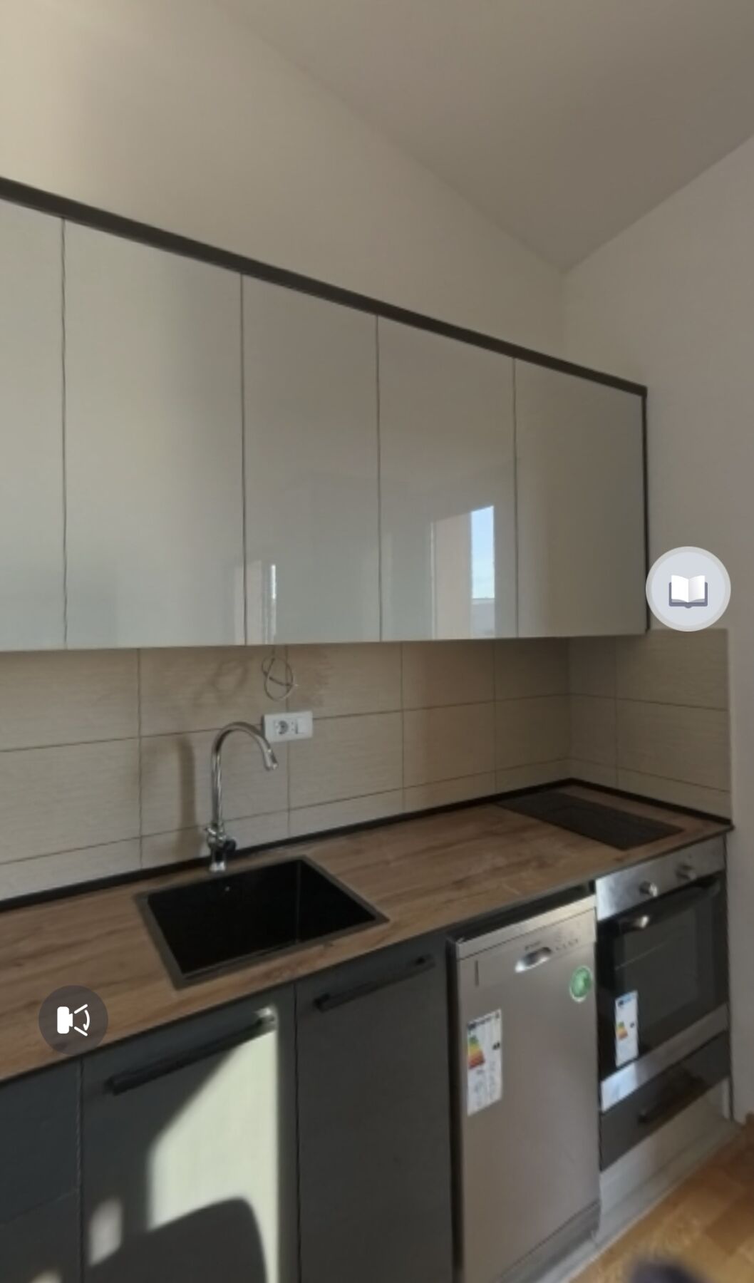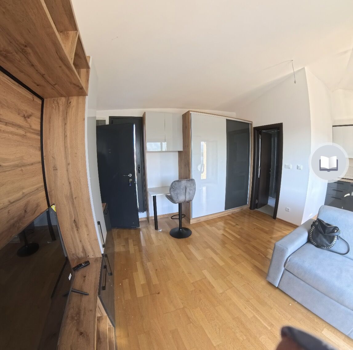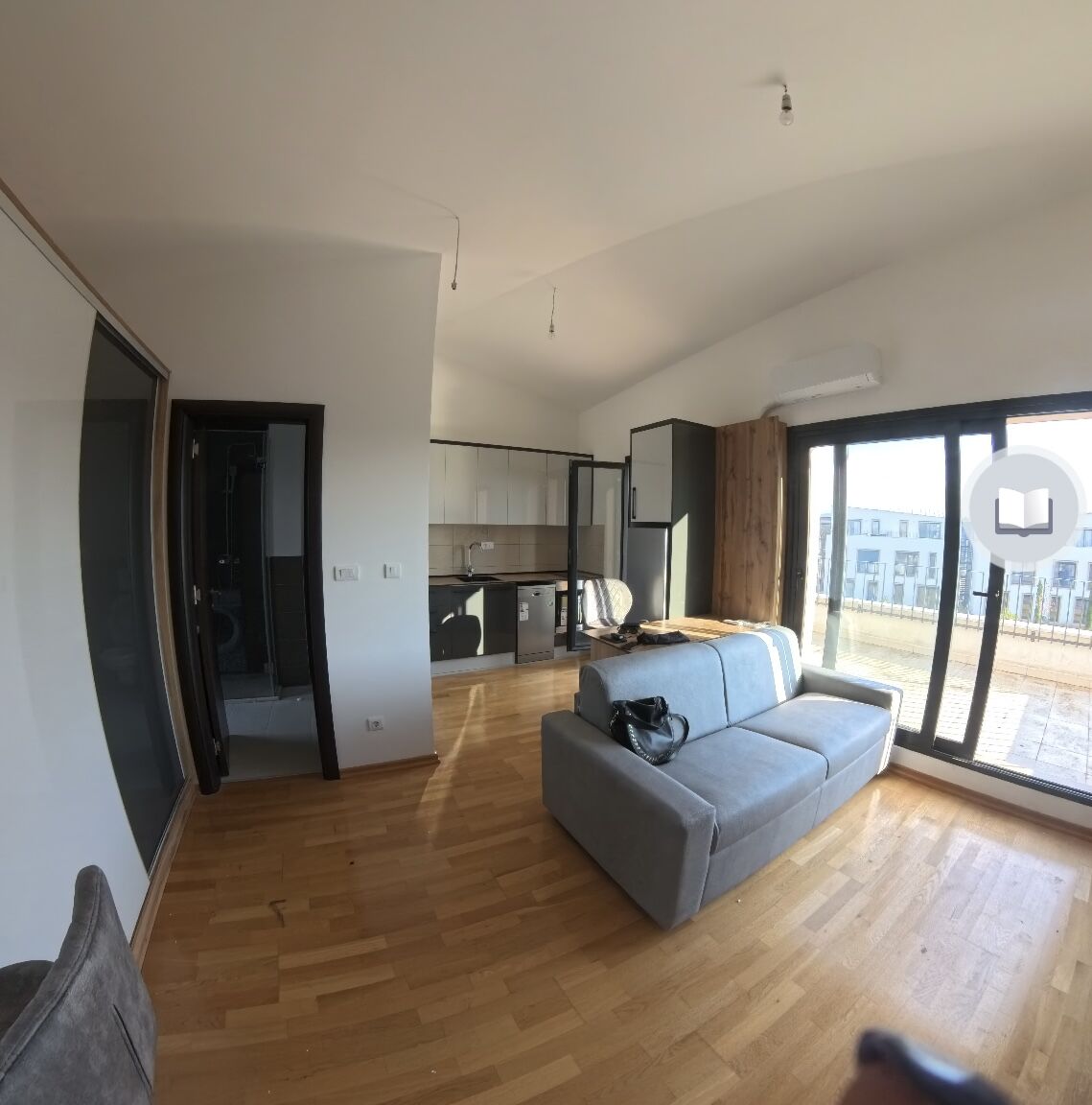 Квартира-студия на продажу в Зайн Парке в Загориче. Она полностью меблирована. Площадь составляет 25м2 + 25м2 террасы. У квартиры отдельный вход.