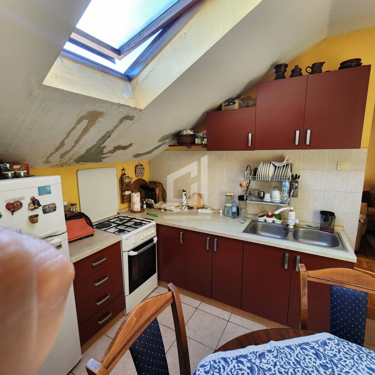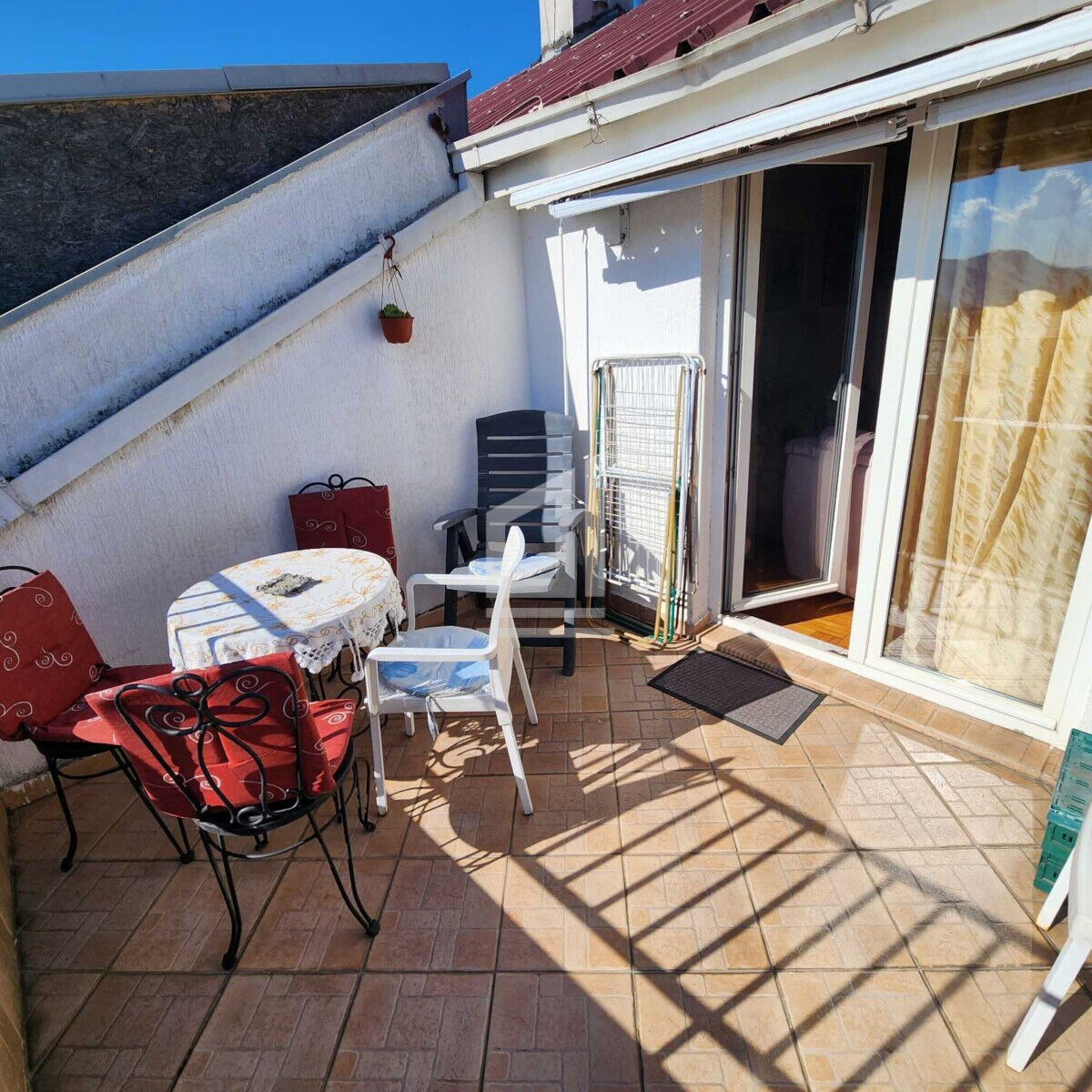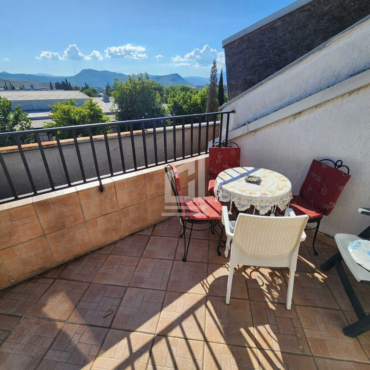 Продается меблированная трехкомнатная квартира с маленькой галереей на четвертом этаже здания (без лифта). Квартира имеет большую террасу с открытым видом и двухуровневую структуру. Есть отдельная кухня, большая гостиная и одна ванная комната. Перед зданием есть несколько парковочных мест.