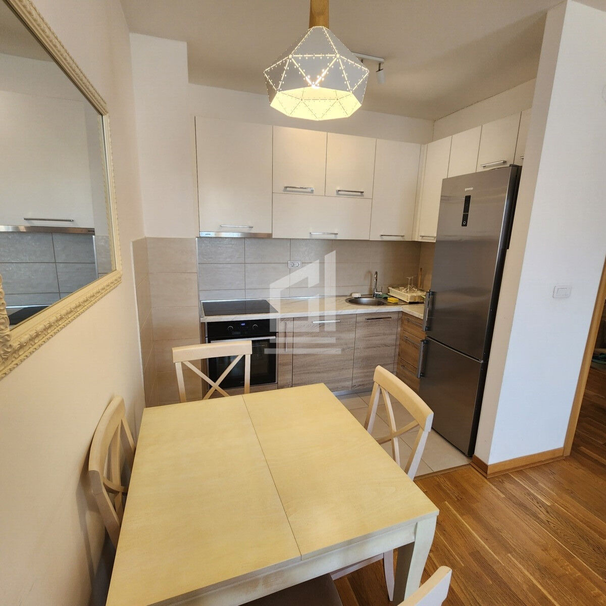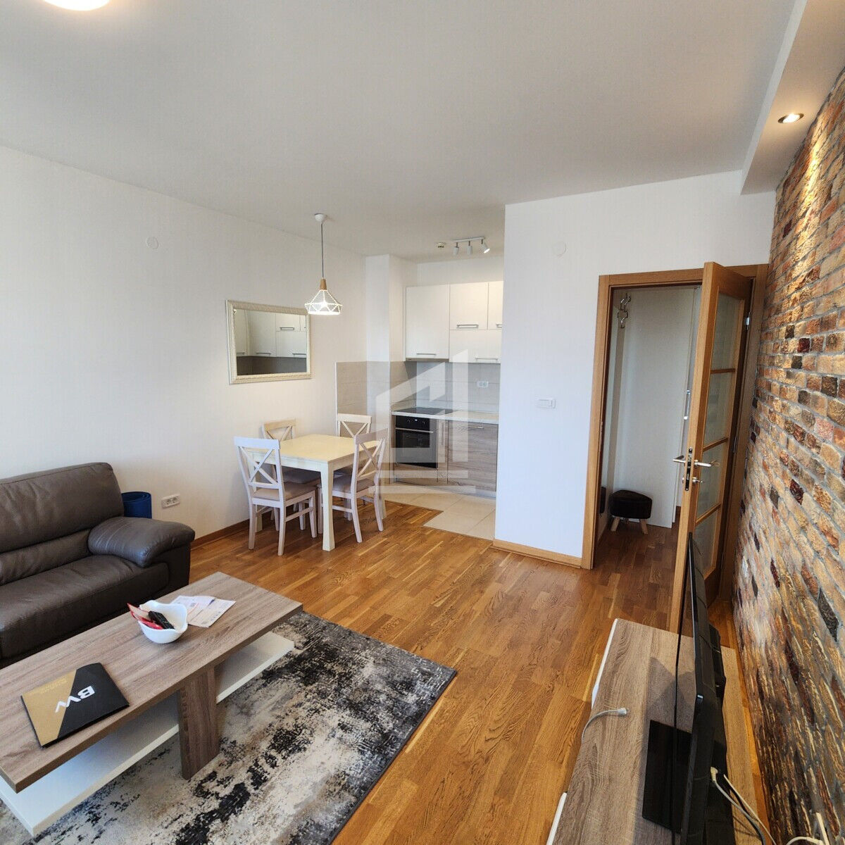 На седьмом этаже здания продается полностью оборудованная квартира площадью 43 м2. Ориентирована на юго-восток, квартира в стоимость включает и гаражное место.