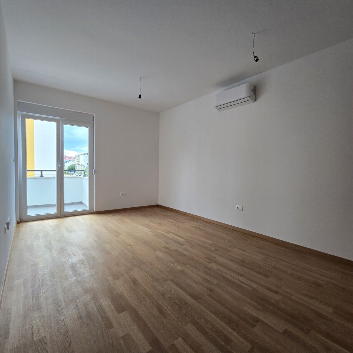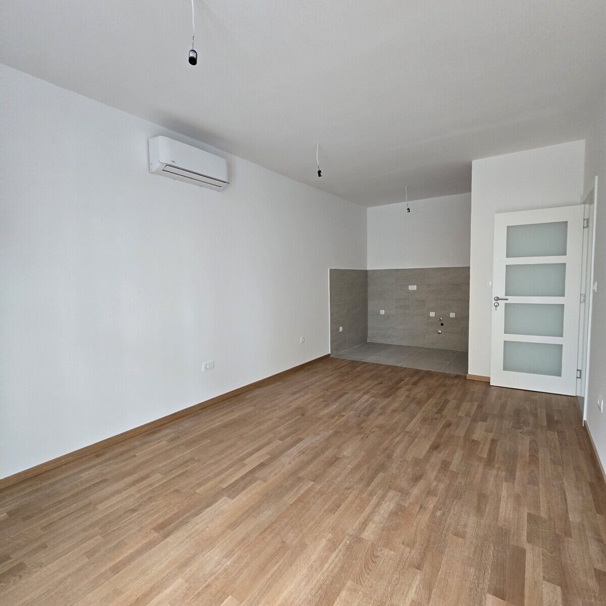 Продается однокомнатная квартира в новостройке на улице 4. Июля в Подгорице. Квартира общей площадью 45м2 находится на первом этаже здания, которое имеет два лифта. Находится вблизи нового шопинг-центра, срок завершения которого 2026 год.