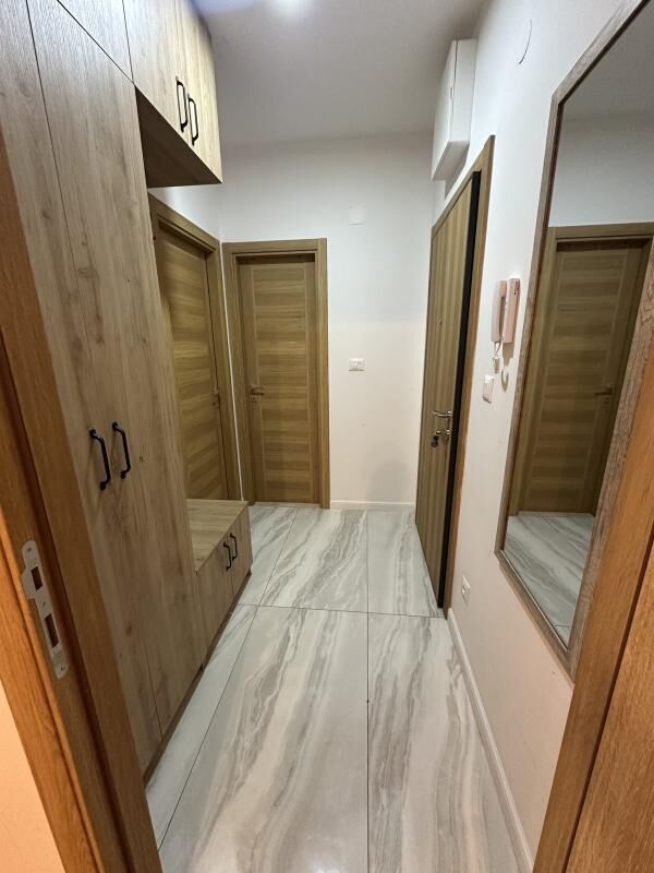 Квартира площадью 41м2 на 4 этаже в новом здании, район Zabjelo. Полностью оборудованная качественной мебелью и бытовой техникой: 1 спальня, гостиная, отдельная кухня, прихожая, терраса с выходом в обе комнаты. Имеется свое парковочное место во дворе. Современный дом с лифтом, пандусом, детский площадкой, с огороженной территорией и зелеными насаждениями. Удобный выезд и близость инфрастуктуры. Квартира легализованная.