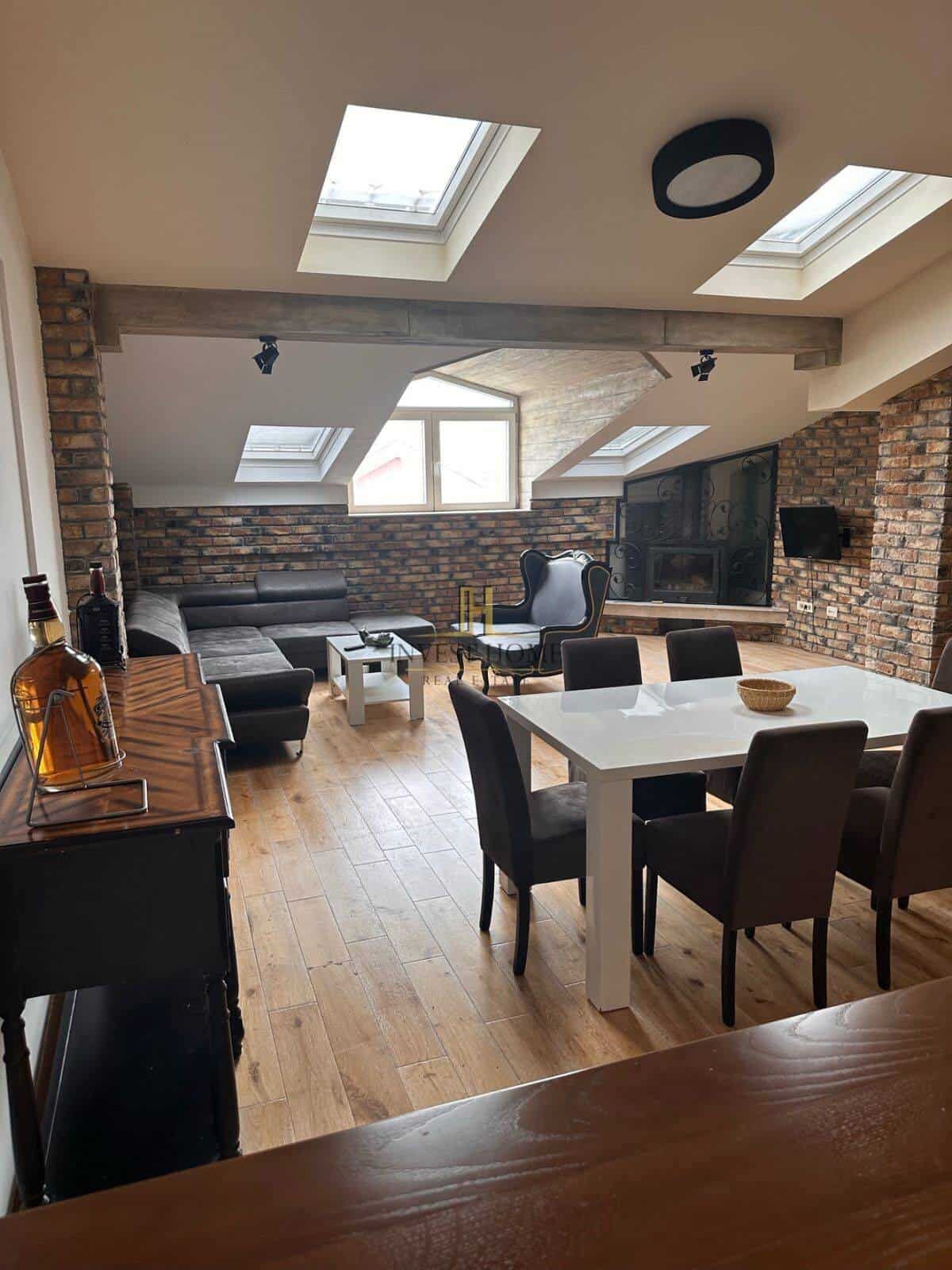 На продажу трехкомнатная квартира на Забьеле, площадью 126м2. Находится на шестом этаже жилого здания, которое имеет лифт. Это высокое мансардное помещение. В непосредственной близости находятся супермаркет, детский сад, школа и другие важные городские объекты. Квартира также имеет гаражное место, которое включено в цену.