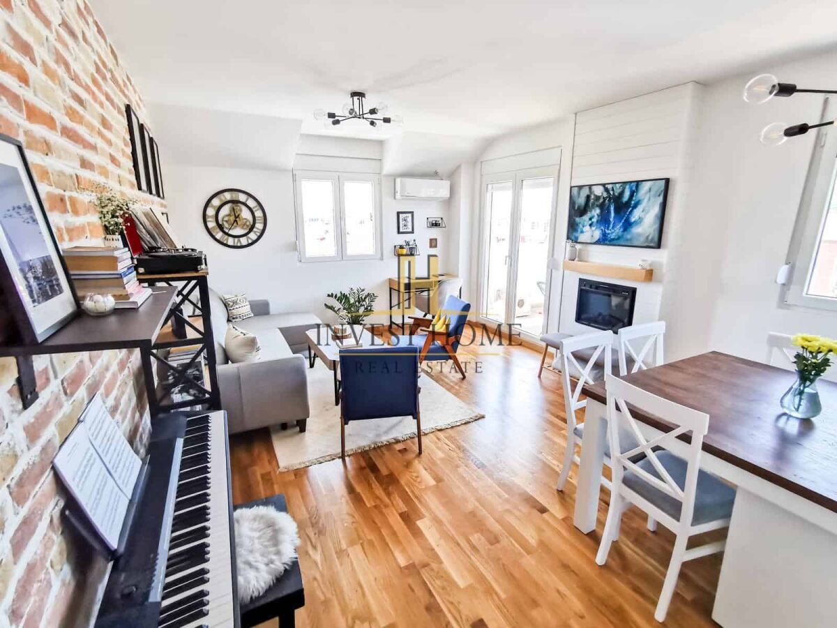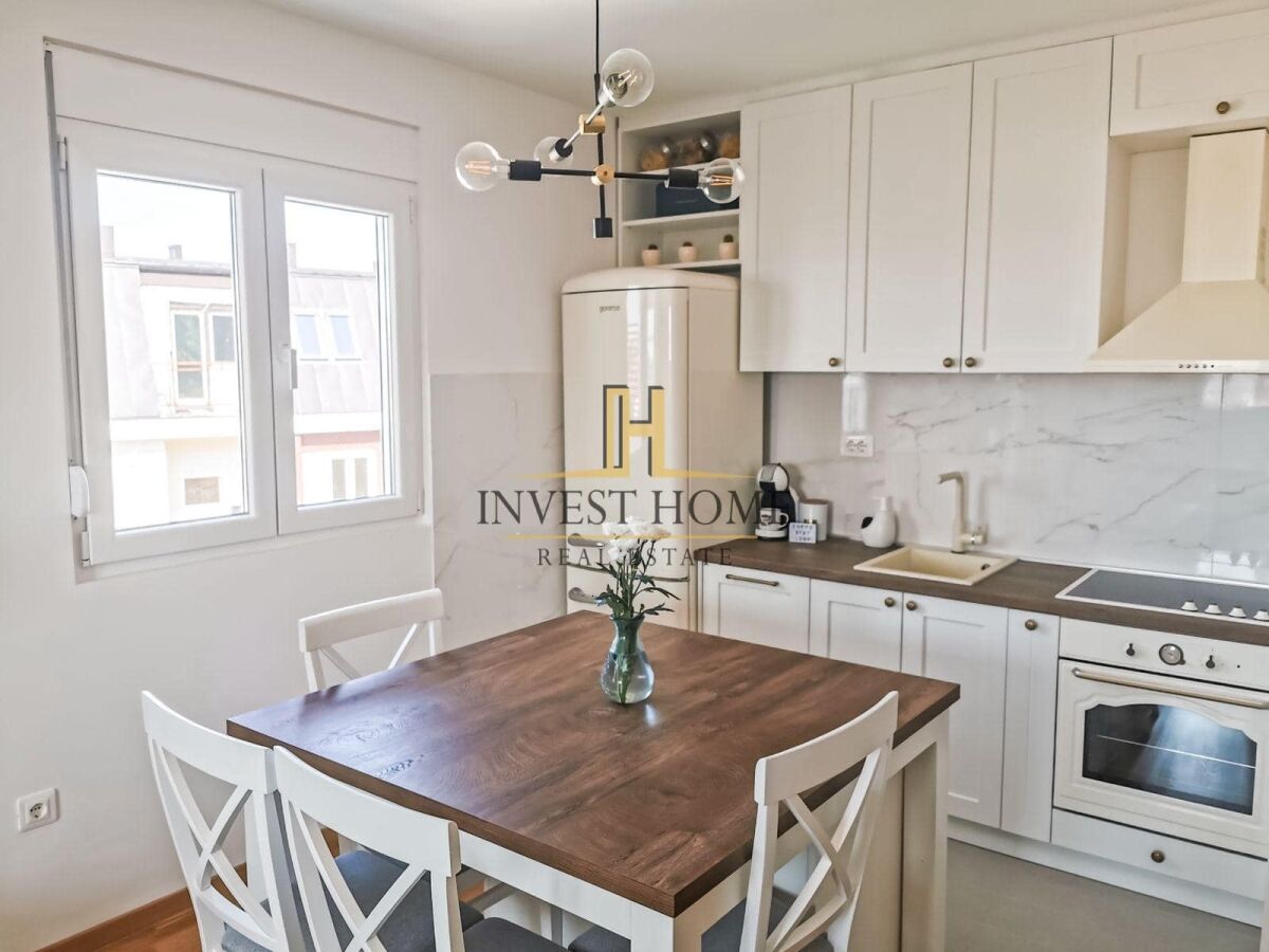 Продаётся прекрасная, светлая и просторная двухкомнатная квартира площадью 61 м², в одном из самых востребованных районов Подгорицы – Любович. Квартира находится на пятом этаже новостройки (выше техническое помещение, так что это не последний этаж), и её украшает большая терраса с прекрасным видом. Характеристики квартиры: • Две комфортные комнаты • Роскошно меблирована с тщательно подобранной мебелью, а также встроенными шкафами и кухней на заказ. • Вся техническая техника на гарантии • Очень светлая и функциональная планировка Преимущества расположения: • Перед зданием находится новая детская площадка • Государственный детский сад в 5 минутах ходьбы • Спокойная и семейная атмосфера Эта квартира предлагает идеальное сочетание современного дизайна, комфорта и удобного расположения – идеально для семей или тех, кто ищет качественное жилое пространство в Подгорице.
