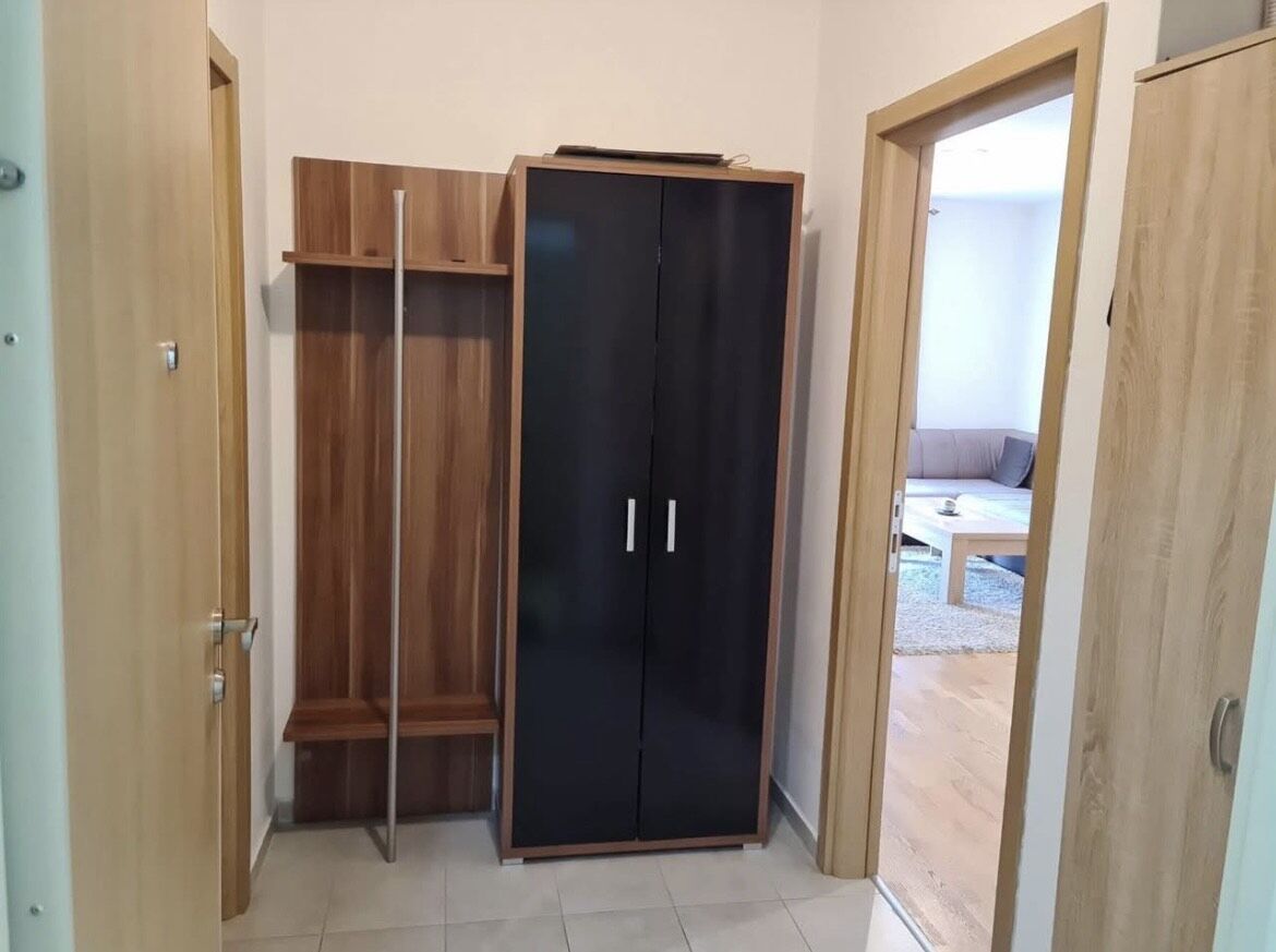 Продается меблированная двухкомнатная квартира площадью 69 м2 на бульваре Змай Йовина, Старый аэродром, Подгорица. Квартира расположена на 3 этаже здания с двумя лифтами. Имеется большая парковочная зона, окруженная рампой, которой пользуются арендаторы. Планировка квартиры: прихожая, гостиная с обеденной зоной, туалет, холл, две спальни, ванная комната и балкон. В квартире установлена мультисплит-система с кондиционерами во всех комнатах. Ориентация на юг. Квартира сдана в аренду, новый покупатель имеет возможность продолжить аренду. Без обременений и ограничений. Собственность 1/1.