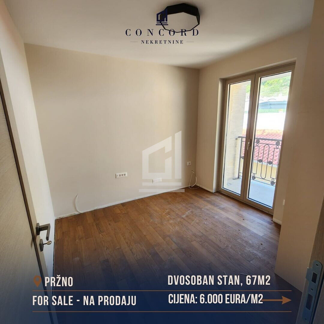 На продажу двухкомнатная квартира в Пржне. 🌊 Квартира по структуре двухкомнатная и имеет 67m2 и 60m2. Находится на третьем этаже, а в цену включено и принадлежащее парковочное место. Удаленность от пляжа менее 2 минут пешком.