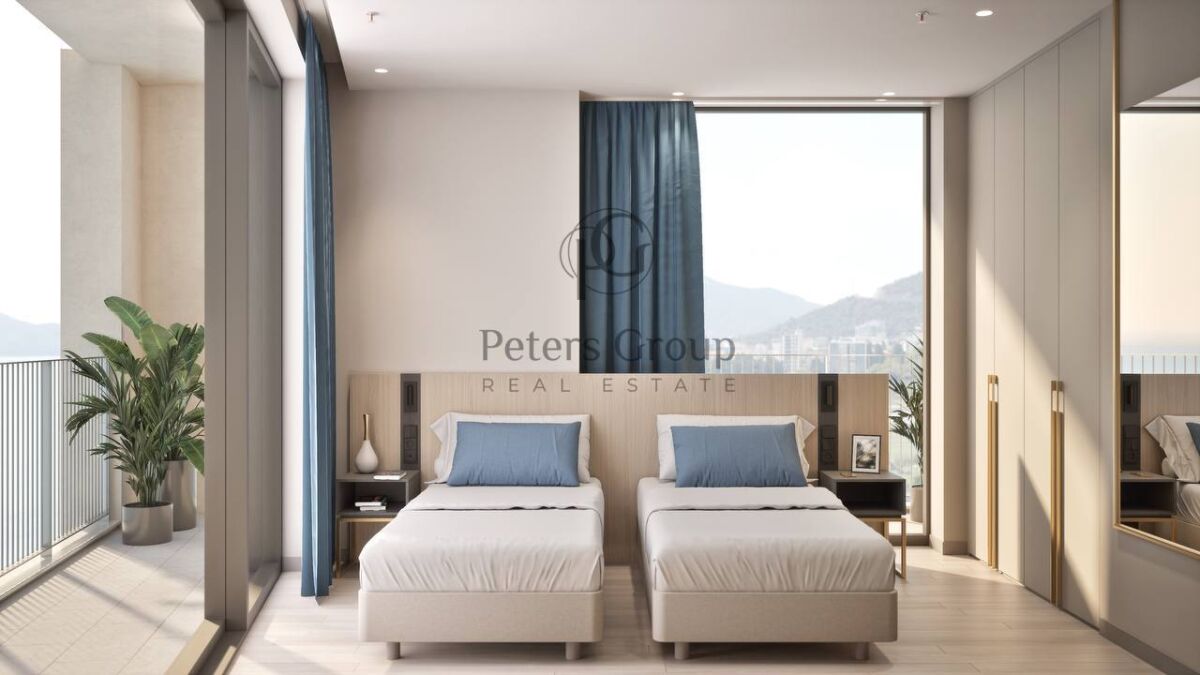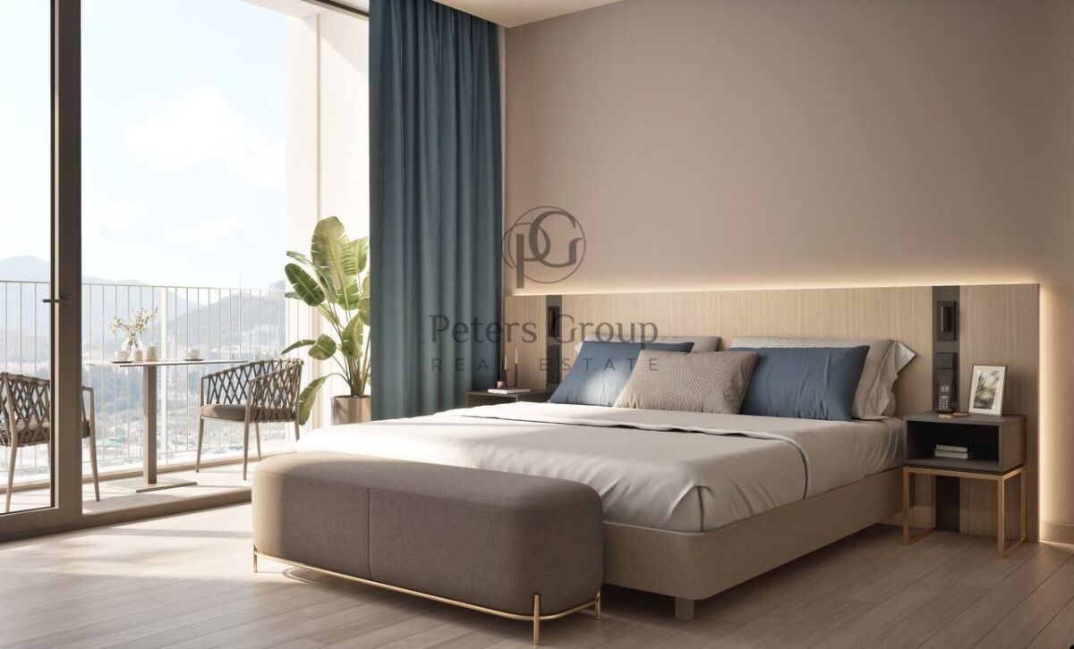 ID-2474 Элитные апартаменты с двумя спальнями в 5⭐ комплексе Город: Будва, Рафаиловичи Площадь: от 84 м² Этаж: 1–8 Вид: море, горы Резиденции «под ключ» в пятизвёздочном комплексе на пляже Бечичи. Светлые меблированные апартаменты с панорамными окнами и видами на море. К услугам жильцов: частный пляж 3000 м², консьерж 24/7, рестораны, бары, wellness-центр с бассейнами, SPA и фитнесом, казино, детский клуб, галерея. Рассрочка на всё время строительства, первоначальный взнос от 50%. Сдача — II квартал 2027. Цены: от €436 800 (84–113 м², вид на море или горы).