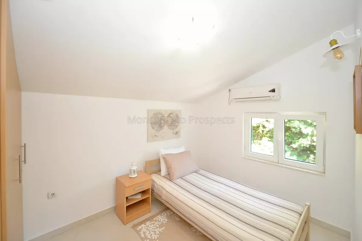 Продажа ID7483. Уютная квартира с двумя спальнями и двумя ванными комнатами расположена в небольшом жилом доме на первой линии моря в Столиве. Недвижимость находится в отличном состоянии и обладает высоким потенциалом для сдачи в аренду. В её состав входит гостиная открытой планировки с полностью оборудованной кухней, две спальни и две ванные комнаты. Из главной спальни и гостиной есть прямой выход на просторную террасу с непрерывным панорамным видом на море. Квартира продаётся полностью меблированной! Это предложение сочетает комфорт, исключительное расположение и прекрасные виды — идеальный выбор как для постоянного проживания, так и для инвестиции.