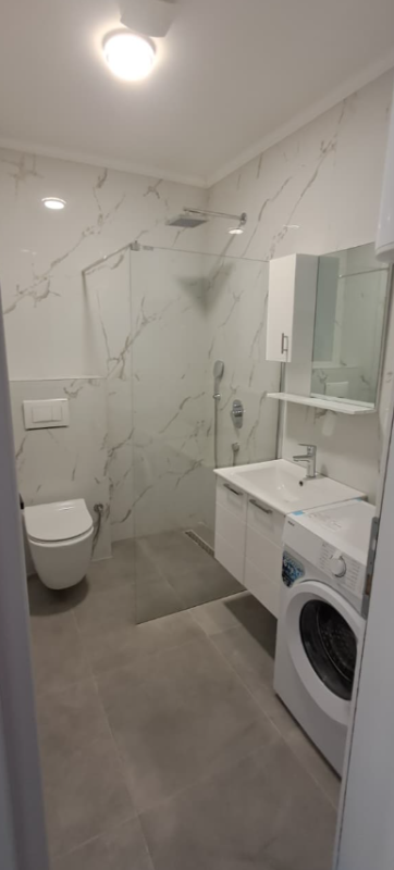 Квартира - студия площадью 30м2 на 1 этаже нового здания с лифтом. Свое парковочное место. Квартира с террасой, ориентация на восток. Терраса с видом на строящейся бассейн около здания. Новая мебель, бытовая техника на гарантии. Современный дизайн и высокое качество строительства, идеально подходит для проживания и сдачи в аренду. До пляжа 800м, новый жилой район.
