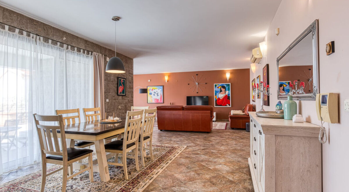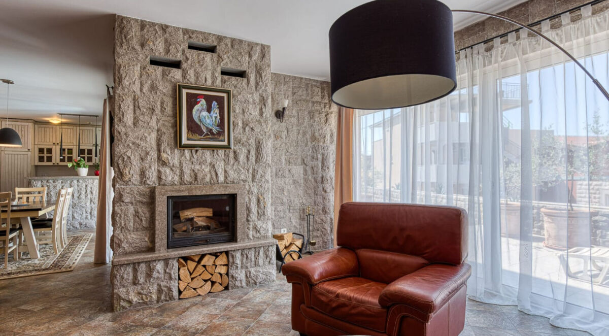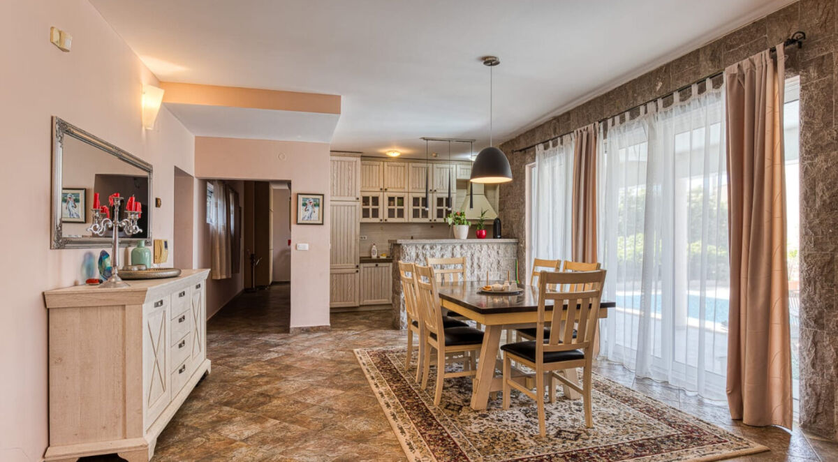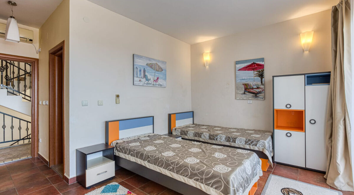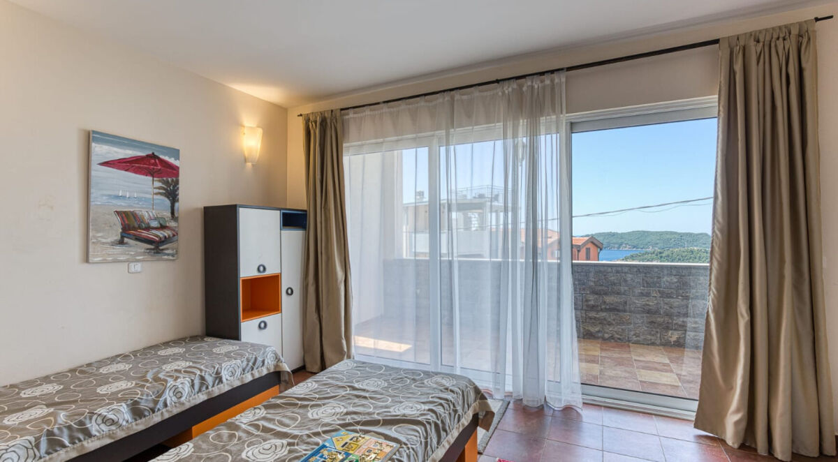 Вилла расположена в Бечичи, Ивановичи. Вилла имеет четыре этажа плюс подвал, с общей площадью 495 м². Вилла находится на участке площадью 415 м². Участок включает в себя бассейн размером 3,3 x 7 м и фруктовые деревья (лимон, апельсин, мандарин, гранат, яблоня, киви, кумкват, оливковые деревья), а также хвойные деревья. В подвале находится гараж на два автомобиля, гардеробная, прачечная, мастерская, кладовая и склад. На первом этаже находится просторная гостиная с кухней, столовой и камином, а также гостевой санузел и сауна с отдельным выходом к бассейну. На втором этаже расположены три спальни и большая терраса с видом на море. В каждой спальне есть собственная ванная комната с душем. На третьем этаже находится главная спальня с ванной комнатой. На четвертом этаже находится кабинет с большой террасой, откуда открывается великолепный вид на Святого Стефана, остров Святого Николая и весь регион Будва. Ривьера.