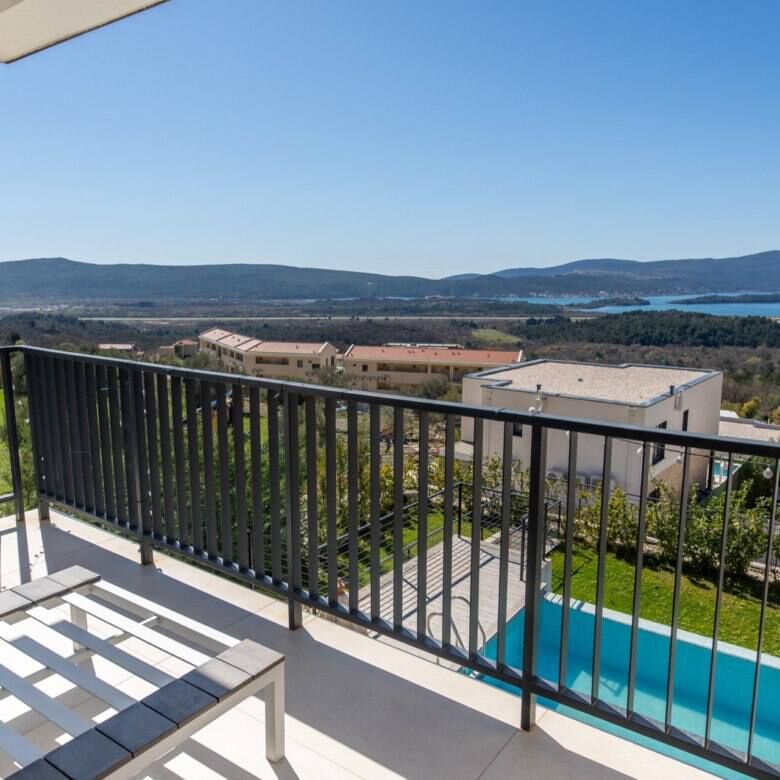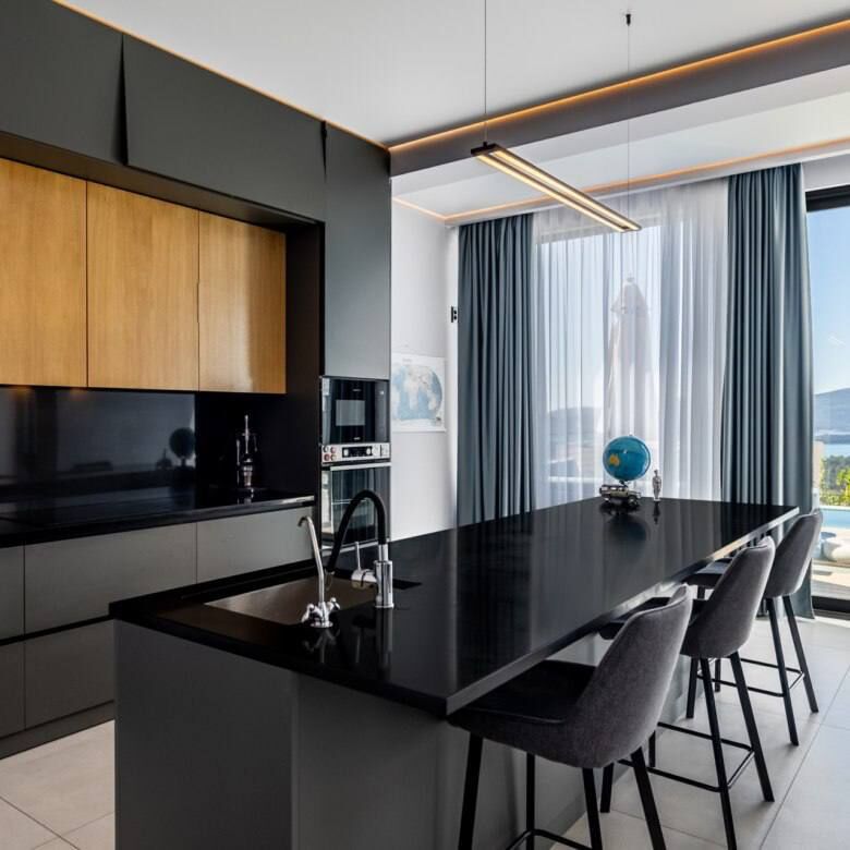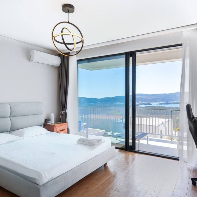 Продается вилла с панорамным видом на Бококоторский залив 📌 Локация: Кавач Площадь виллы: 180 м² Площадь участка: 450 м² Количество спален: 4 Ванные комнаты: 4 Просторная гостиная в комбинации с кухней Гараж на 2,5 автомобиля + крытая парковка Подогреваемый инфинити бассейн (8,5 x 3,5 м) Теплый пол по всему объекту Вилла полностью оборудована и меблирована по последнему слову дизайна и технологии