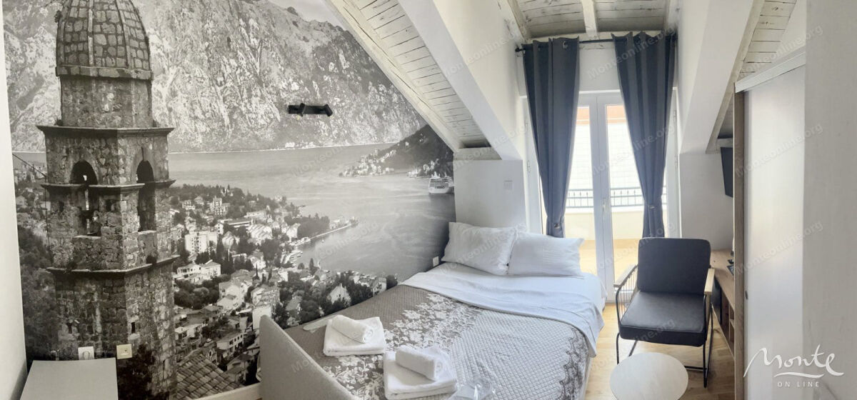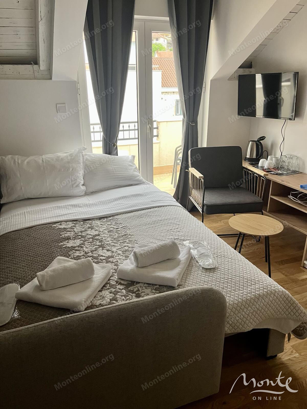 Отель расположен рядом с торговым центром «Камелия», портом Котора, в шаговой доступности от всей основной инфраструктуры и туристических центров Котора. Отель имеет 4 этажа общей площадью 320 м². На первом этаже находится: • Большая терраса, где организовываются завтраки для гостей. • Один апартамент с одной спальней, кухней и ванной комнатой. На втором этаже: • 4 апартамента с ванными комнатами, без кухни. На третьем этаже: • 3 апартамента с ванными комнатами, без кухни и один апартамент с кухней на мансардном этаже. Всего в отеле: 9 апартаментов с одной спальней и ванной комнатой, 4 из них оборудованы кухней.