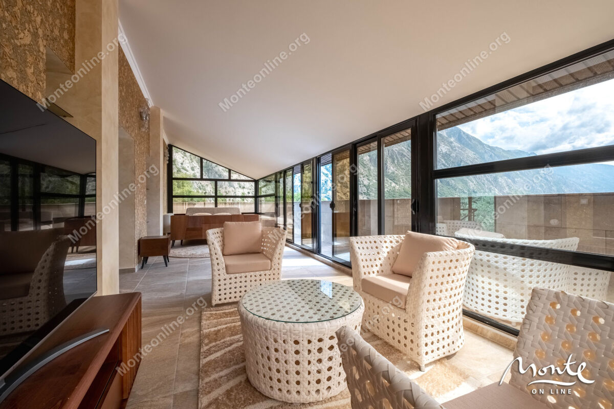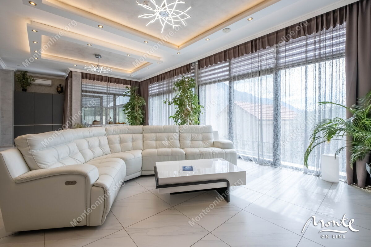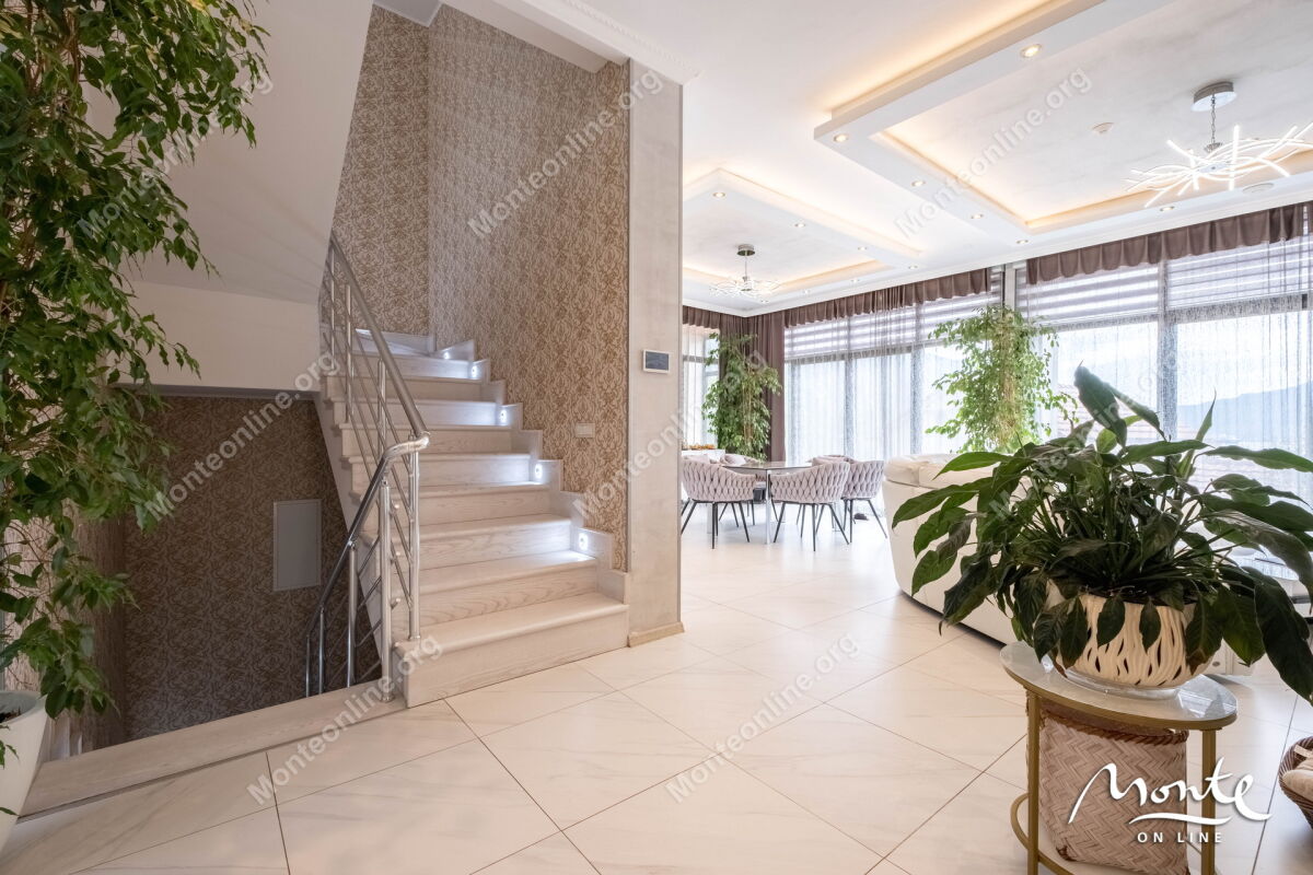 Представляем эксклюзивную резиденцию в современном архитектурном стиле, расположенную в посёлке Ораховац — одном из самых зелёных, спокойных и престижных районов Боки-Которской бухты. Участок площадью 3 159 м² окружён дубами, лаврами и декоративными растениями, создавая атмосферу полной приватности и гармонии с природой. Здание площадью 428 м² построено и введено в эксплуатацию в 2019 году, имеет все разрешения и чистые документы, без обременений. Один собственник. Для покупателя важный бонус — освобождение от налога на переход права собственности на здание. Жилая часть резиденции Первый этаж — комфортная жилая зона • Просторный вестибюль с панорамным остеклением и встроенными шкафами. • Гостевой санузел с душевой. • Большой кабинет с отдельным санузлом и отдельным выходом на улицу (может быть использован как гостевая спальня или помещение для персонала). • Гостиная с дровяным камином, совмещённая с обеденной зоной. • Полноценная кухня с бытовой техникой. • Большая остеклённая веранда с раскрывающейся крышей и выходом в сад. Особенности этажа: - напольное отопление (керамика); - кондиционирование всех помещений; - панорамные окна в пол с видом на море; - высота потолков — 3,15 м. Второй этаж — лакшери-пространство для хозяев • Просторный холл-гардеробная со встроенными шкафами. • Две мастер-спальни, каждая со своим санузлом. • В одной спальне — балкон-галерея с несколькими точками выхода. • Во второй — балкон с панорамным видом на Которскую бухту. Особенности этажа: - напольное отопление в санузлах; - дубовые полы; - панорамное остекление; - высота потолков — 3,10 м. Третий этаж — гостевой пентхаус с невероятными видами • Просторное многофункциональное помещение (возможно разделение на 3 спальни). • Зона отдыха, спальня и домашний тренажёрный зал. • Большой санузел. • Два выхода на балкон-галерею с умопомрачительным видом на Боку-Которскую. Особенности этажа: - напольное отопление; - кондиционирование всех помещений. Цокольный этаж и инфраструктура • Гараж на 8 парковочных мест. • Техническое помещение. • Большие складские зоны. • Отдельный вход из гаража напрямую в жилую часть. Инженерные системы и безопасность Резиденция оборудована по стандартам премиальной недвижимости: • Автономный дизель-генератор. • Система вентиляции с рекуперацией воздуха (редкость для Черногории). • Тепловой насос, кондиционеры и фанкойлы Daikin. • Солярная система на крыше — энергосбережение. • Видеонаблюдение и охранная сигнализация. • Резервуар для бесперебойного водоснабжения. Участок 3 159 м² — пространство для жизни и развития • Ландшафтный дизайн, взрослая зелень, декоративные сады. • Цитрусовые деревья, голубые ели, японский клён. • 2 зоны барбекю и летняя беседка. • Детская площадка и мини-спортплощадка. • Дополнительный паркинг на 5–6 автомобилей. • Возможность расширения — можно построить дополнительно ~2 400 м² жилых площадей. Расположение • Всего 150 м до пляжа — прогулка 2 минуты. • 6 км до Котора. • 4 км до Пераста. Эта резиденция — редкая возможность приобрести современный, полностью оснащённый дом в Боке, с огромным приватным участком и развитием под инвестицию.