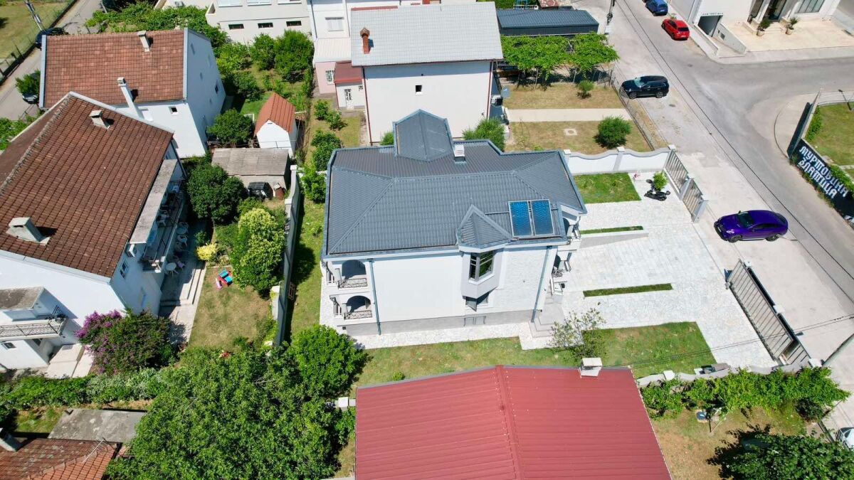 Продается: Новый роскошный дом в Подгорице, район Zlaticа, общей площадью 320 квадратных метров, расположенный на благоустроенном участке площадью 750 квадратных метров. Этот современно построенный дом представляет собой сочетание комфорта, функциональности и энергоэффективности. Объект совершенно новый и не заселён. Дом частично меблирован – имеется встроенная кухня, полностью оборудованные ванные комнаты, а также будет обставлен встроенными шкафами. Дом состоит из просторной гостиной, столовой с кухней, четырех спален и дополнительного помещения, которое может использоваться как офис, трех ванных комнат и террасы на каждом этаже с приятным видом на окрестности. Имеется гараж и большой двор с частной парковкой на десять автомобилей. Он оборудован современными системами – солнечными панелями, тепловыми насосами, системами отопления и охлаждения с помощью вентиляционных установок, видеонаблюдением, сигнализацией и датчиками движения, что обеспечивает высокий уровень безопасности, экономии и комфорта. Находится в тихой и зелёной части города с быстрым доступом к центру Подгорицы и всем важным удобствам.