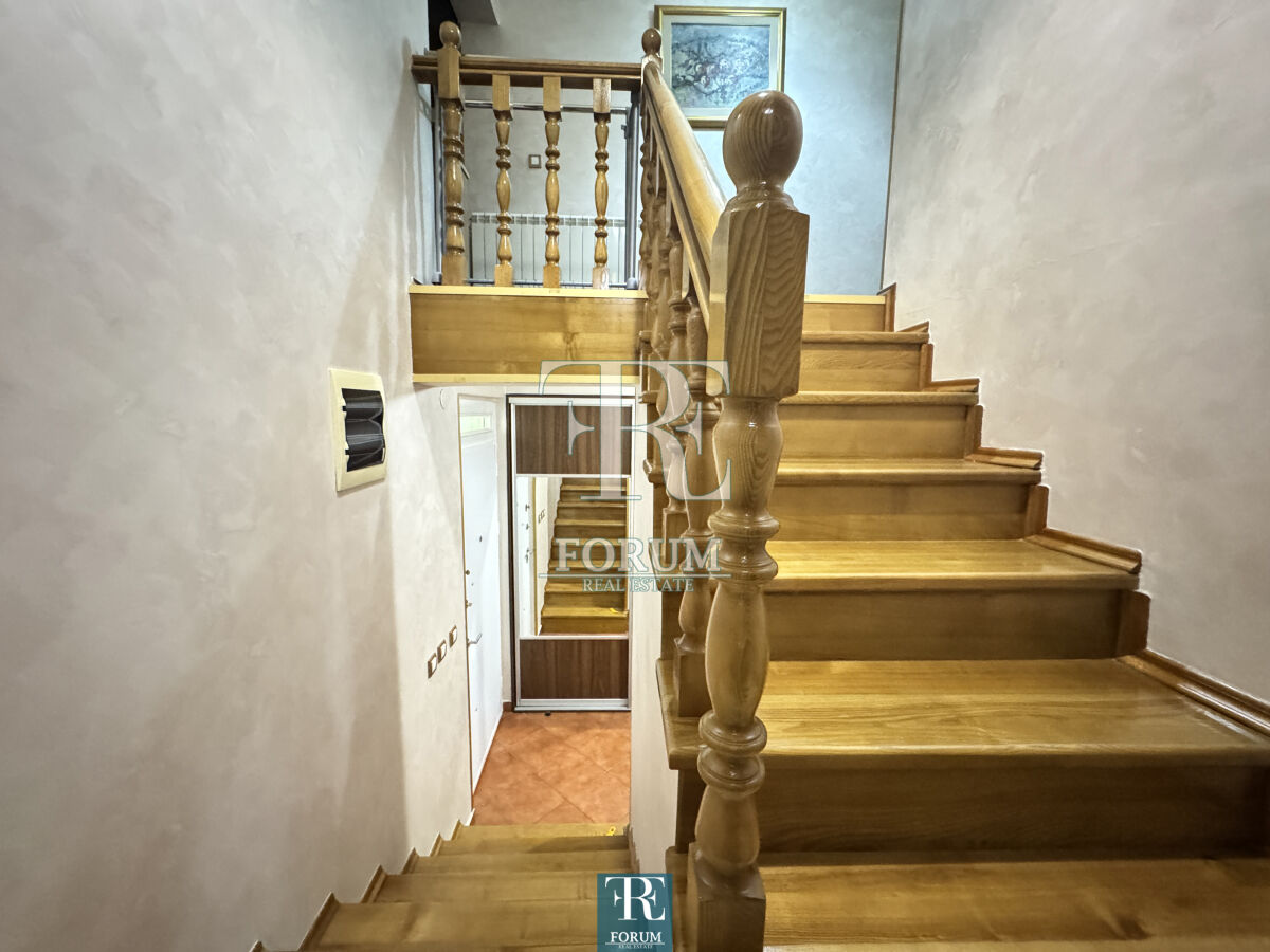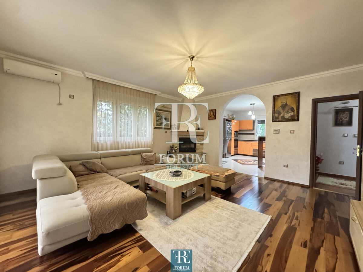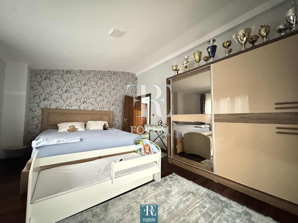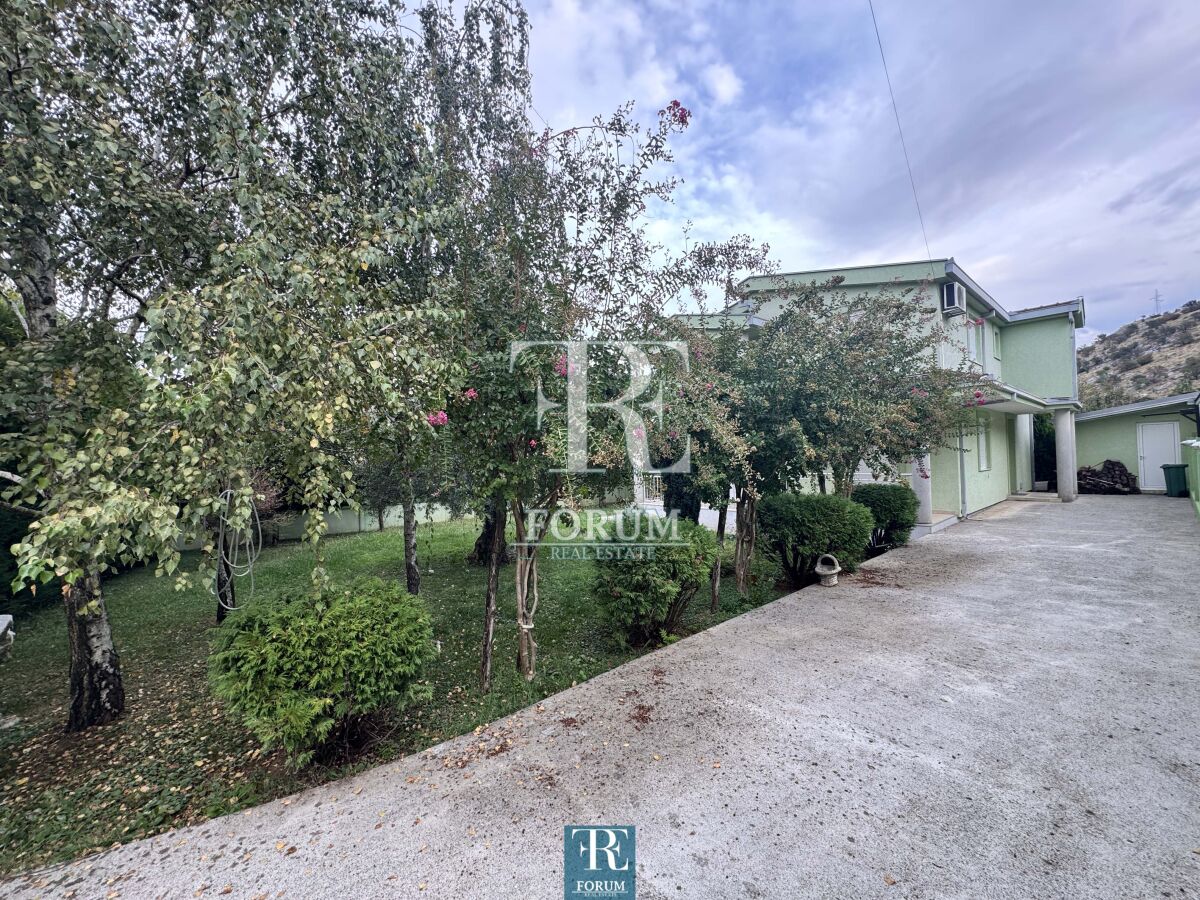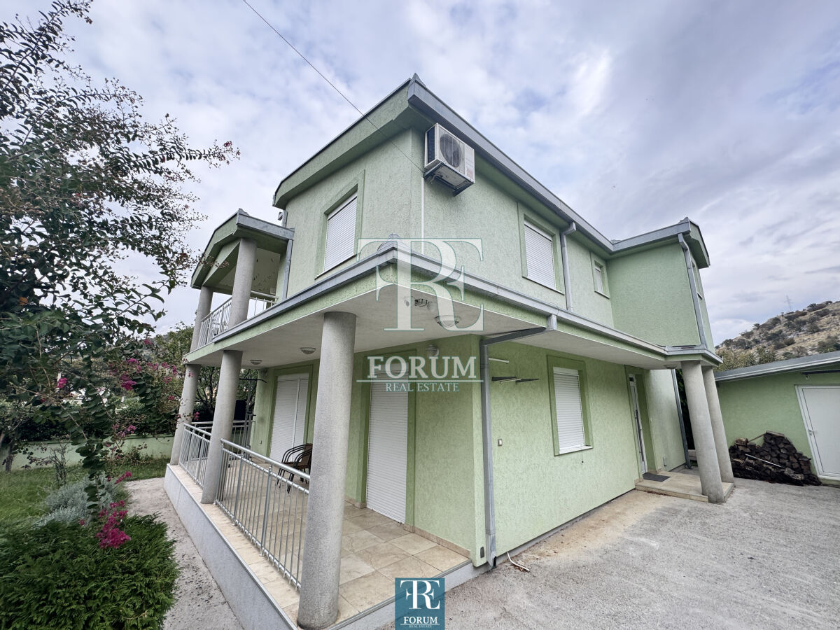 Modern house in Vranjski Njiva, Podgorica - peace, privacy and comfort only 3 km from the city center. A two-story house of 175 m² is for sale, located on a landscaped plot of 501 m. There is also an auxiliary building of 9 m². The house is modern and well built and equipped, with attention to detail and functionality. The ground floor consists of a spacious living room with a kitchen and dining room, a bedroom, a storage room and a bathroom. The floor consists of three bedrooms, a wardrobe, a work area and a luxurious bathroom with a jacuzzi. The house has three terraces. It is equipped with steam heating, air conditioning, video surveillance, alarm system, lighting on the property, remote opening gate and automatic irrigation system. The facade is demit, the windows are PVC with mosquito nets, and the roof is concrete with tiles. The yard is decorated with an old olive tree over 100 years old, which gives the property a special charm and authenticity.