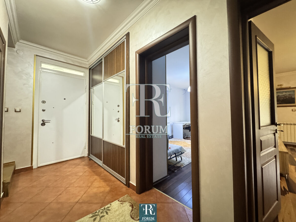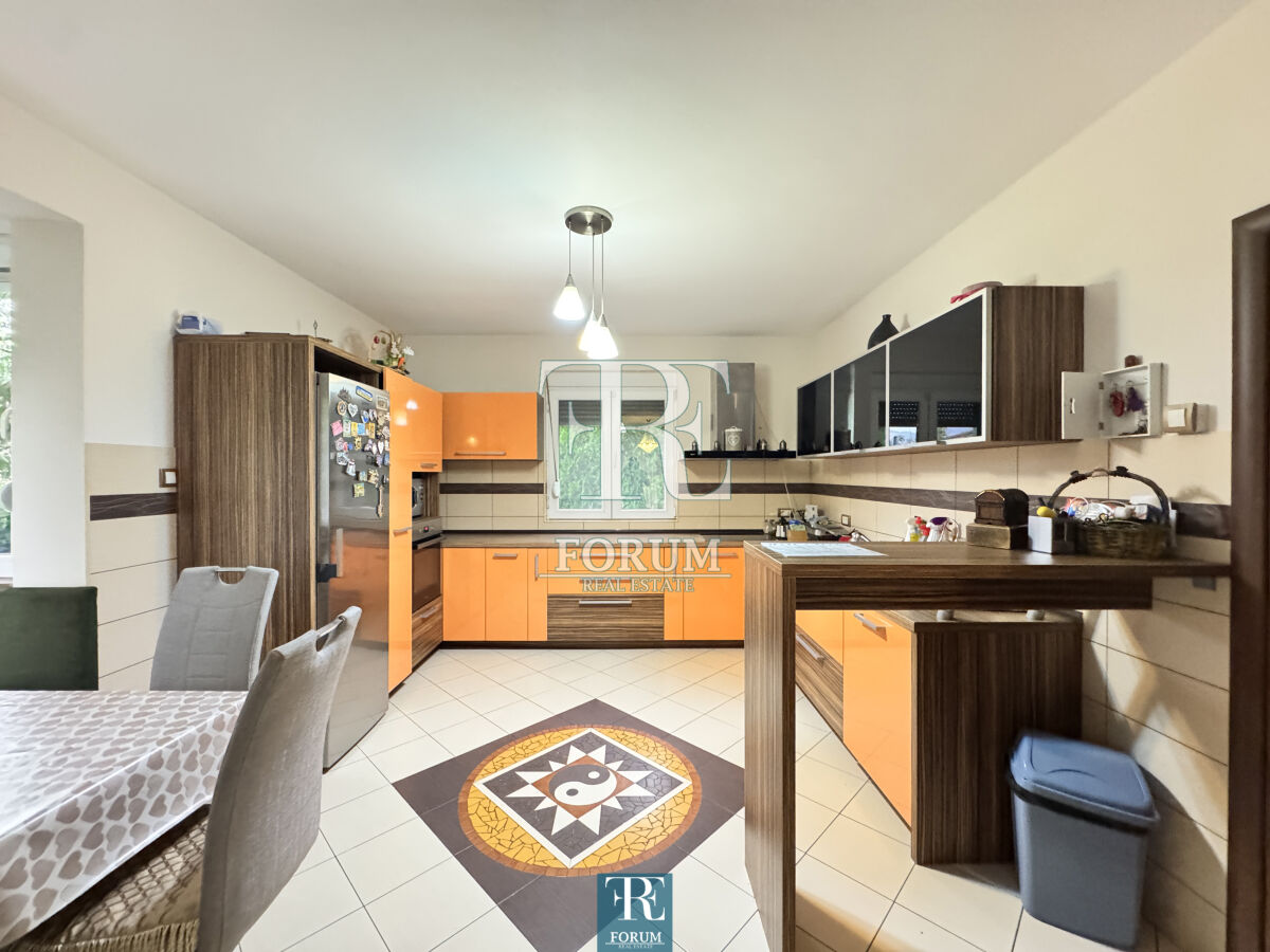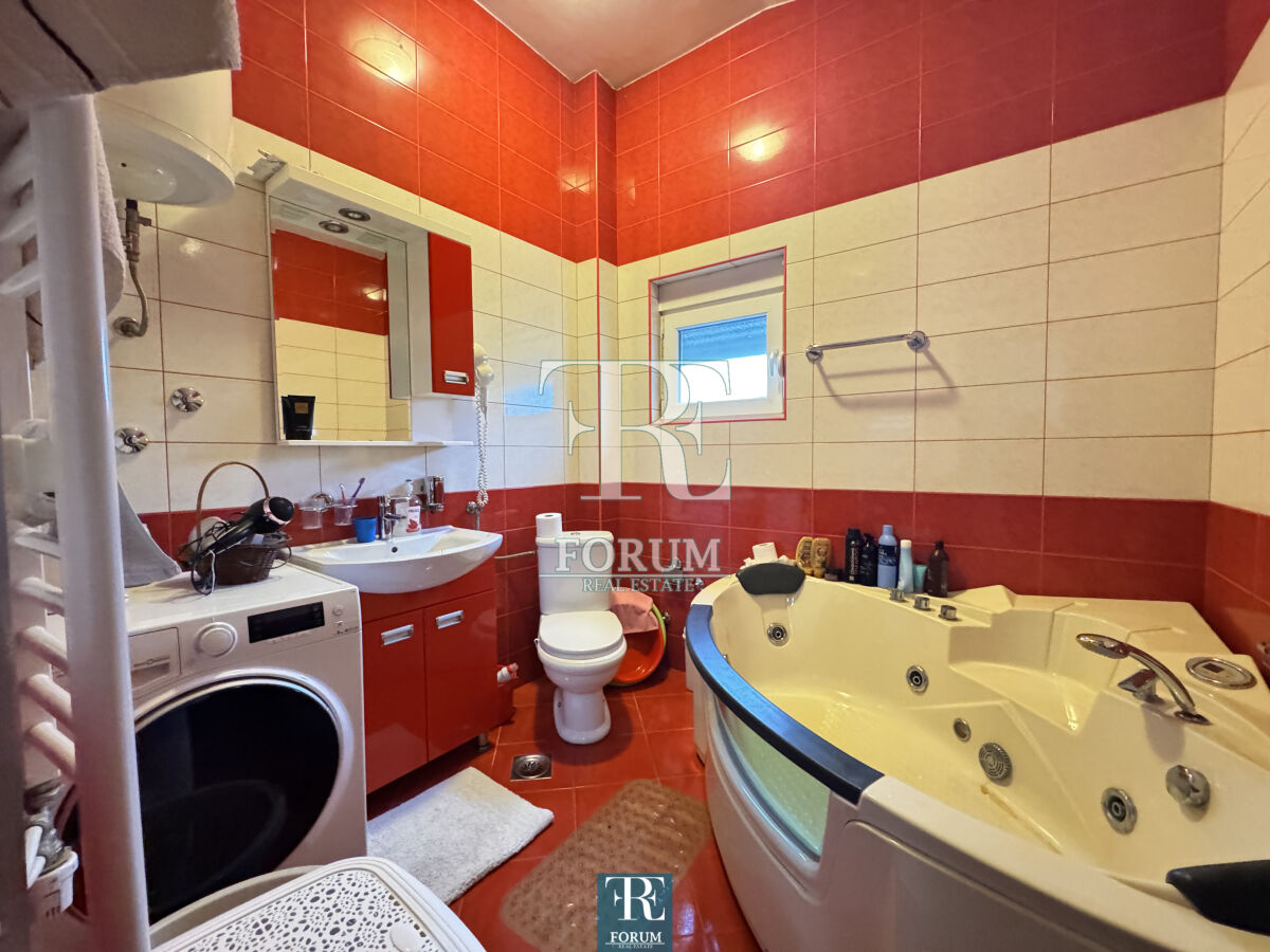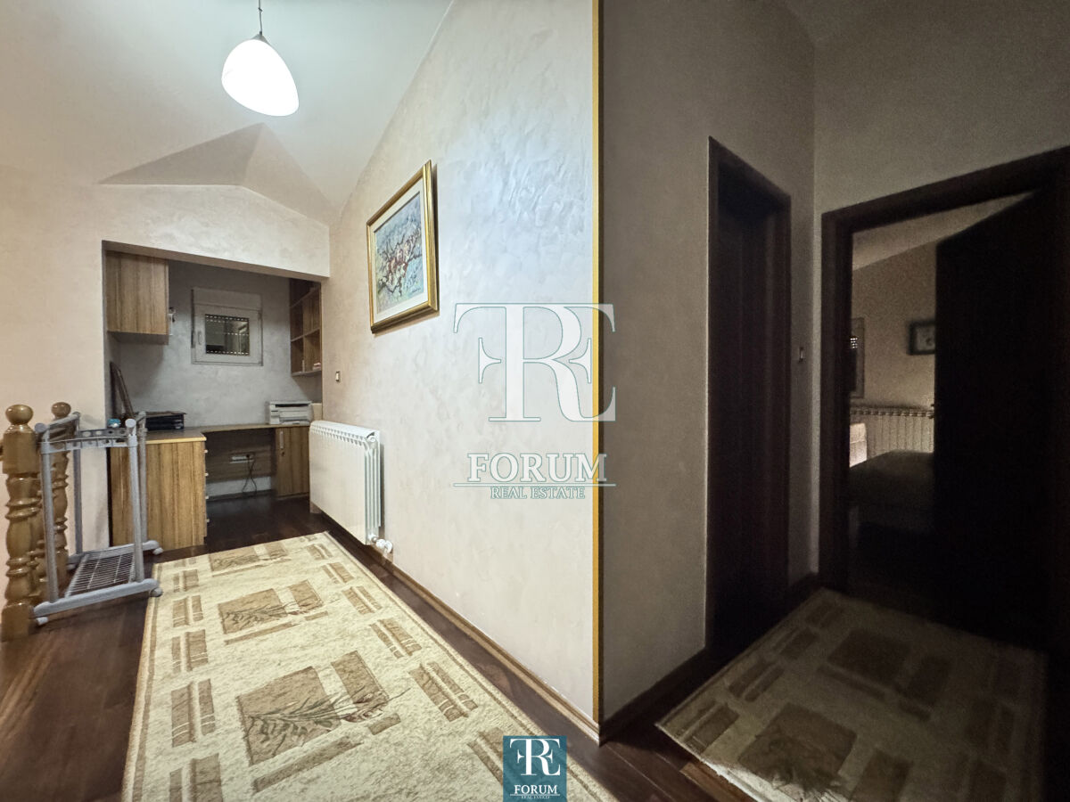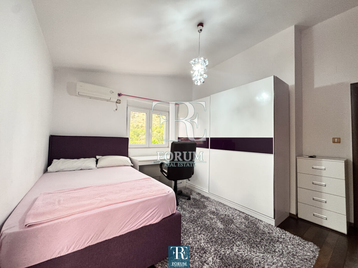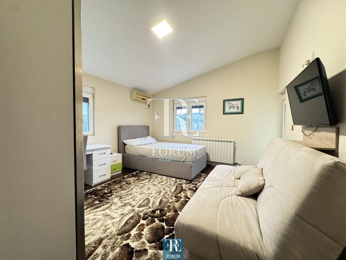 Modern house in Vranjski Njiva, Podgorica - peace, privacy and comfort only 3 km from the city center. A two-story house of 175 m² is for sale, located on a landscaped plot of 501 m. There is also an auxiliary building of 9 m². The house is modern and well built and equipped, with attention to detail and functionality. The ground floor consists of a spacious living room with a kitchen and dining room, a bedroom, a storage room and a bathroom. The floor consists of three bedrooms, a wardrobe, a work area and a luxurious bathroom with a jacuzzi. The house has three terraces. It is equipped with steam heating, air conditioning, video surveillance, alarm system, lighting on the property, remote opening gate and automatic irrigation system. The facade is demit, the windows are PVC with mosquito nets, and the roof is concrete with tiles. The yard is decorated with an old olive tree over 100 years old, which gives the property a special charm and authenticity.
