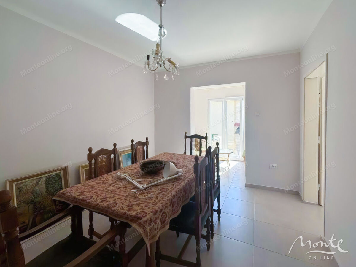 Дом расположен в историческом городе Прчань, в Боко-Которском заливе, который находится под охраной ЮНЕСКО, как всемирное культурное наследие. Дом площадью 150 м² расположен на зеленом участке площадью 380 м². Структура жилья: Дом состоит из двух отдельных апартаментов. Отдельный вход на второй этаж, нет внутренней лестницы. 1 этаж: большая прихожая, 1 спальня, гостиная с обеденной зоной, кухня, ванная комната. 2 этаж: прихожая, 2 спальни, гостиная с обеденной зоной, кухня, ванная комната, терраса с боковым видом на море. Второй этаж полностью реновирован, на первом этаже только ванная комната. Продается с мебелью. На участке есть два парковочных места.