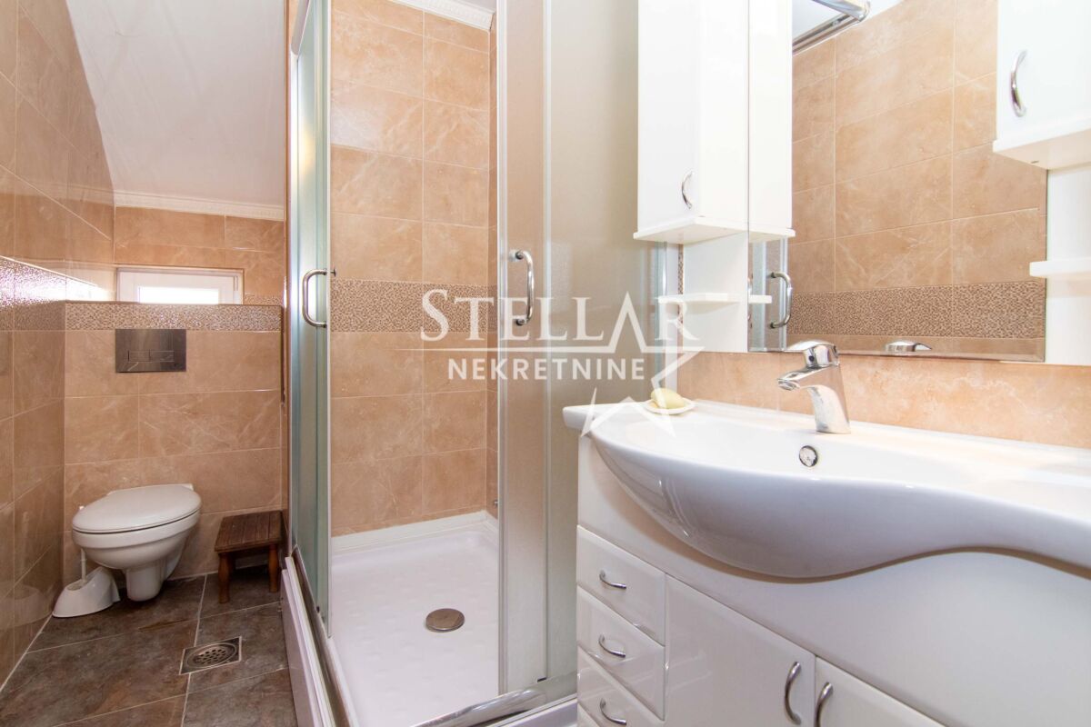 Продается ухоженный двухэтажный дом, расположенный в центральной локации в Спужу. Дом был построен в 1995 году, легально, без обременений или задолженностей. Общая площадь объекта составляет 280 м2. Первый этаж включает в себя гостиную, кухню, столовую, ванную комнату, небольшую комнату, а также летнюю кухню, которая в настоящее время используется как закрытая терраса. На втором этаже находятся три спальни с встроенными шкафами, а также вторая ванная комната. Первый этаж ведет прямо к гаражу, который может вместить один автомобиль. Рядом с гаражом расположено и хранилище. Рядом с хранилищем находятся лестницы, ведущие к отдельной единице – студии. Перед студией находится просторная терраса. Терраса расположена над коммерческим помещением (которое не показано на фотографиях) площадью примерно 55 м2, которое содержит собственный санитарный узел. Дом в хорошем состоянии, внешние окна сделаны из алюминия, в то время как внутренние старые и деревянные. Отопление осуществляется с помощью кондиционеров, всего их 5. Объект имеет 4 электрических счетчика. Пространство перед домом огорожено, двор площадью 116 м2. ID недвижимости B06 +382 67 166 448